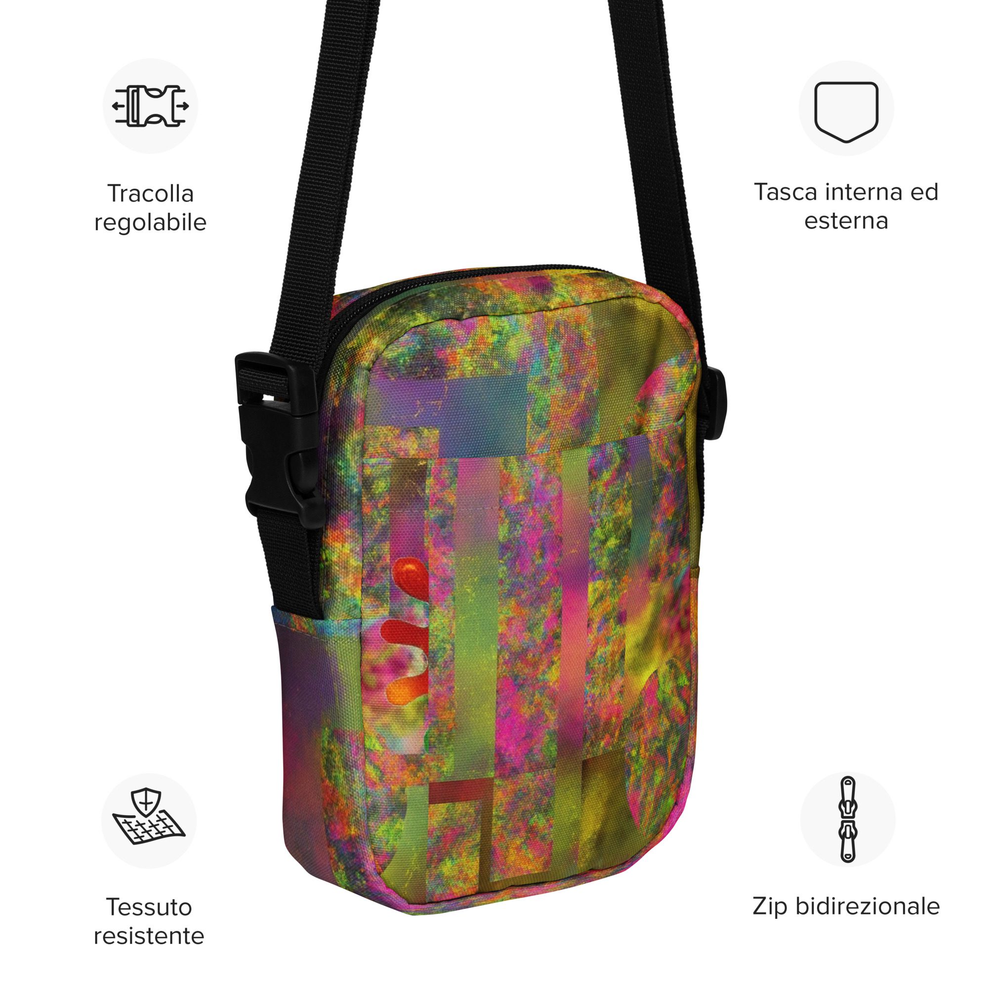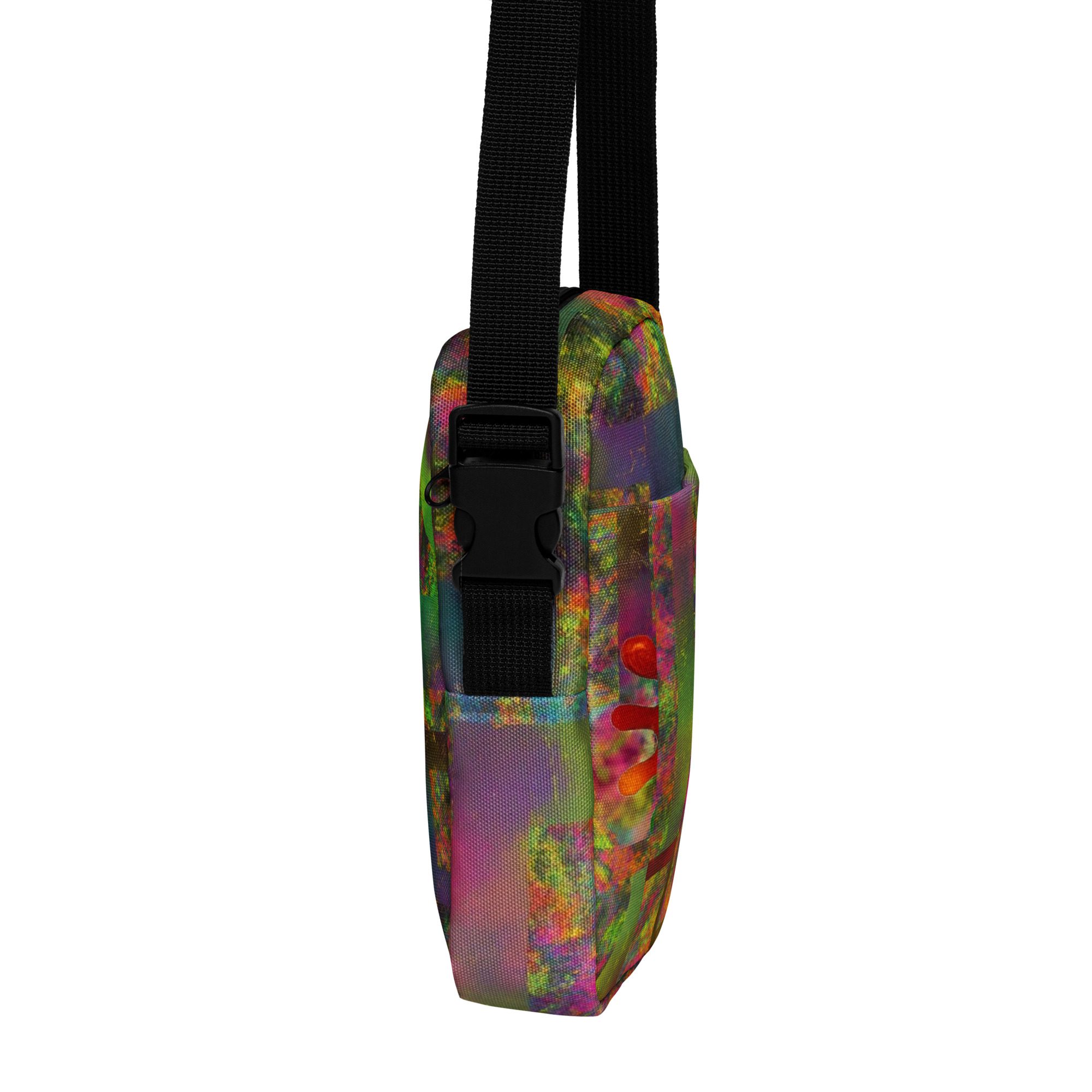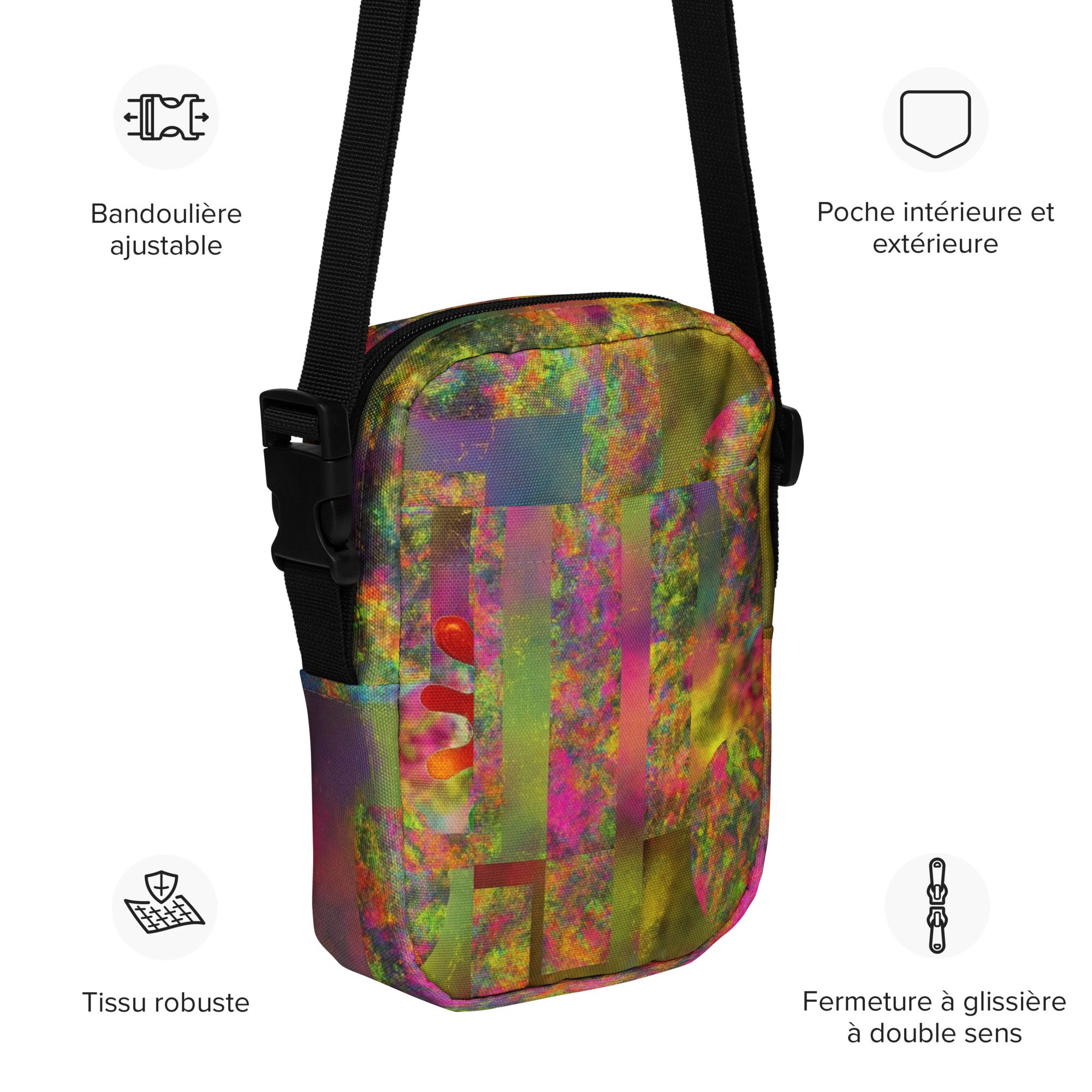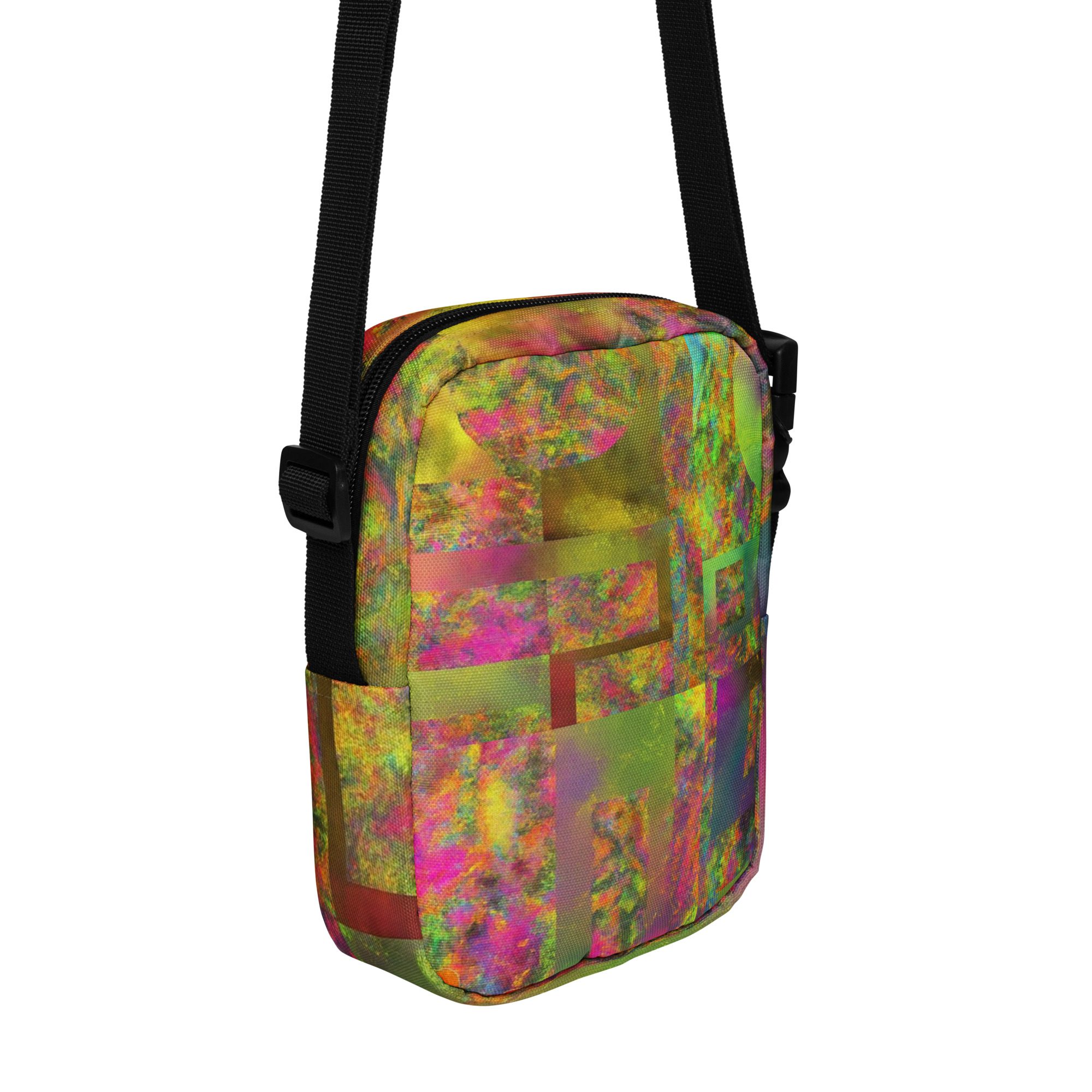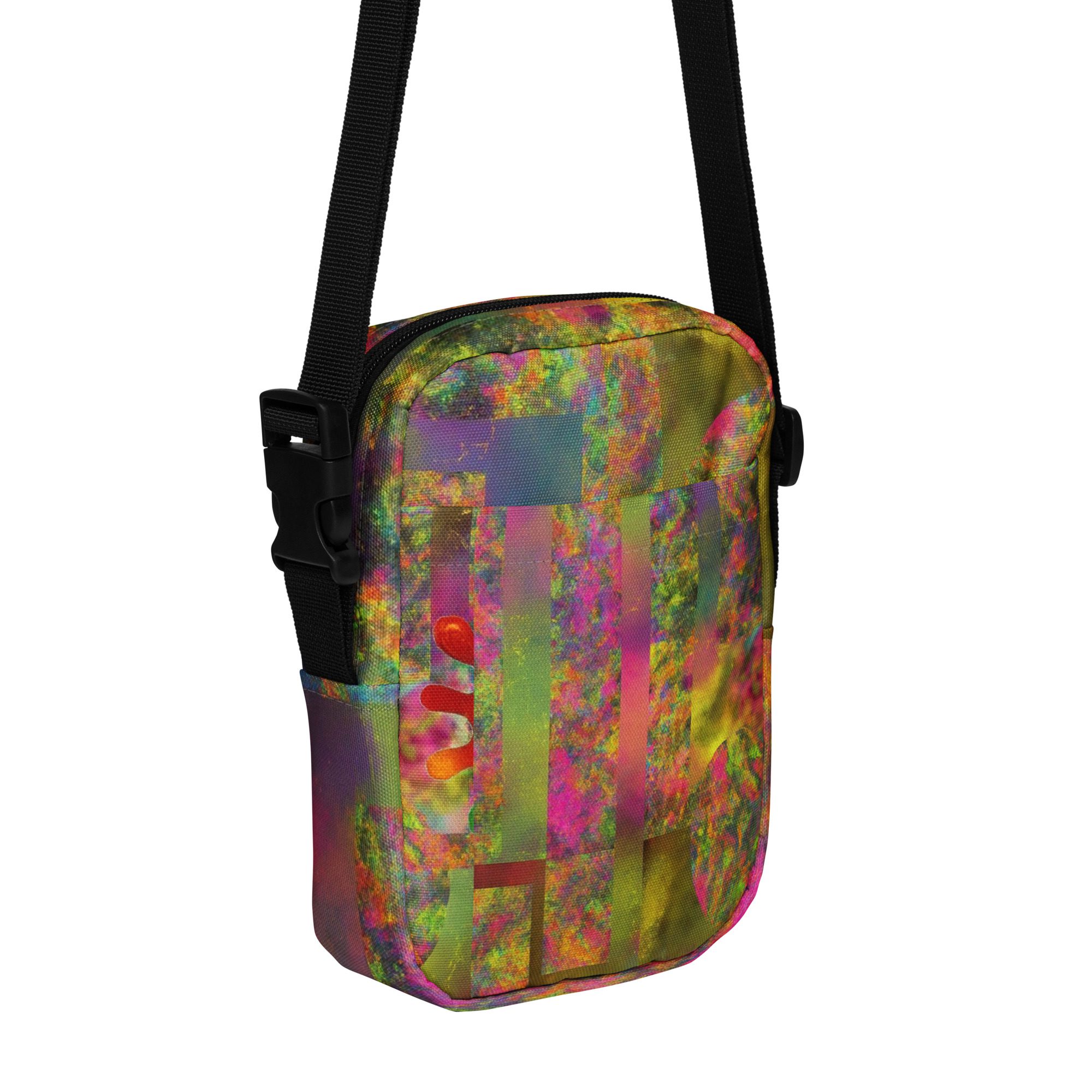 Designed for daily convenience, it includes a spacious main compartment, adjustable strap, and durable, lightweight construction—perfect for travel, festivals, errands, or everyday wear. This is functional streetwear elevated by modern abstract art.