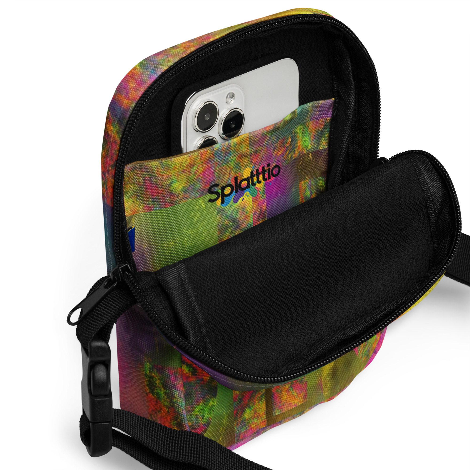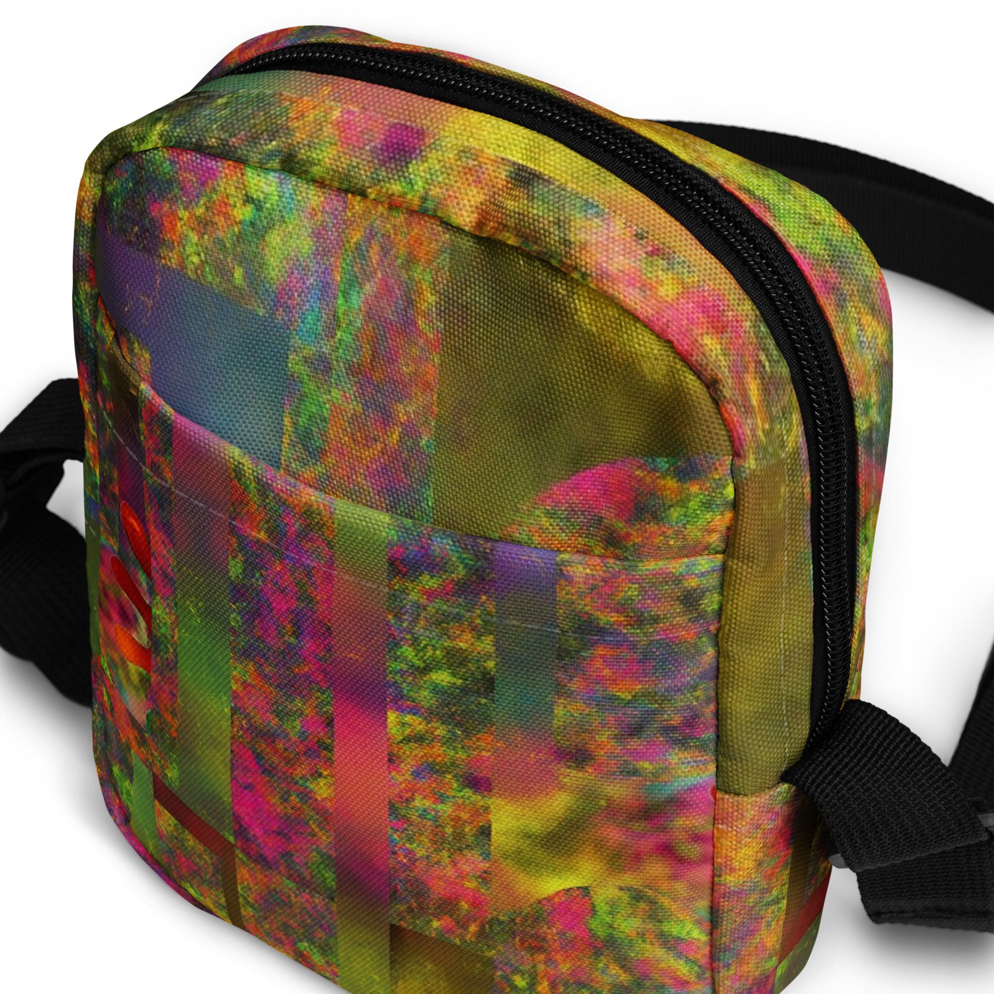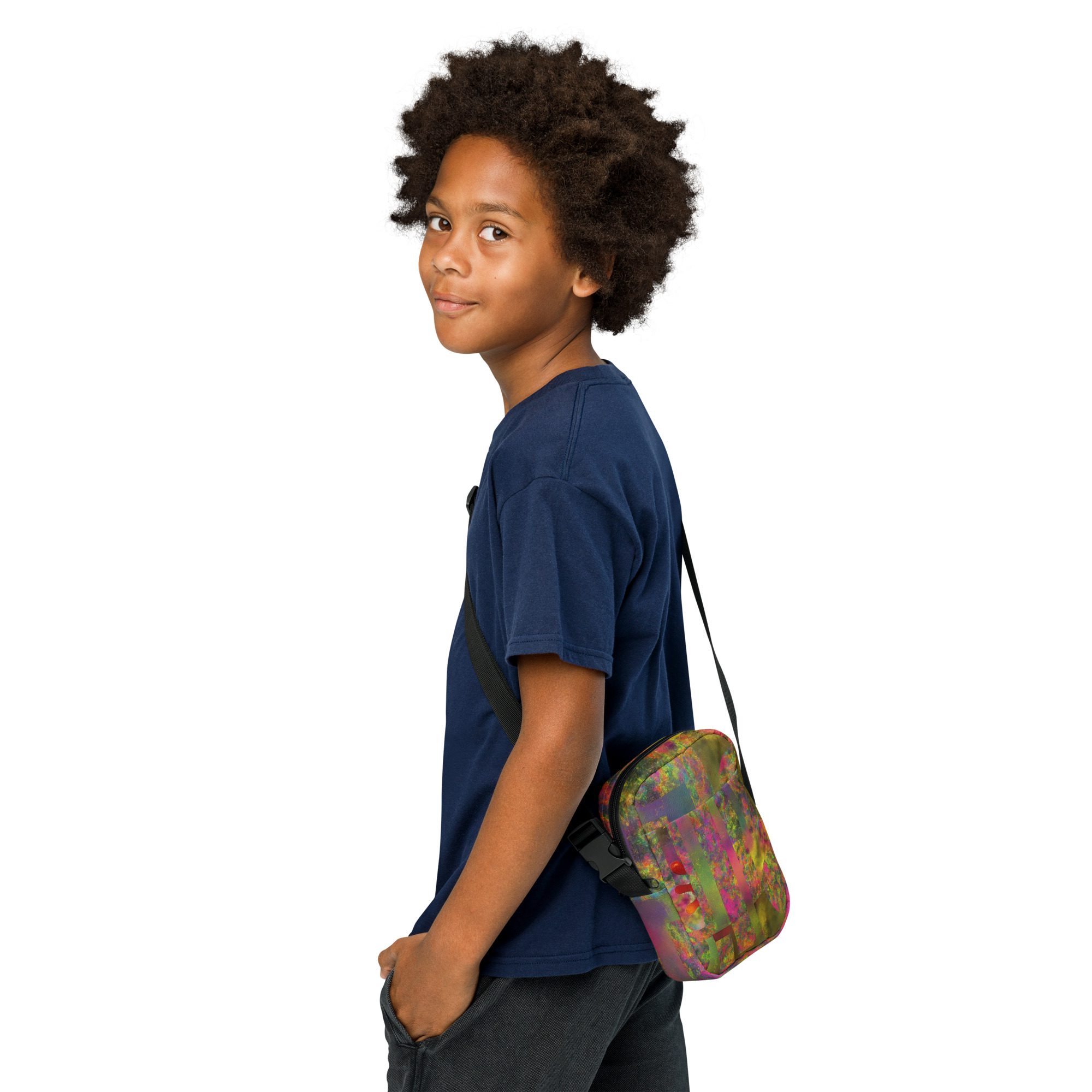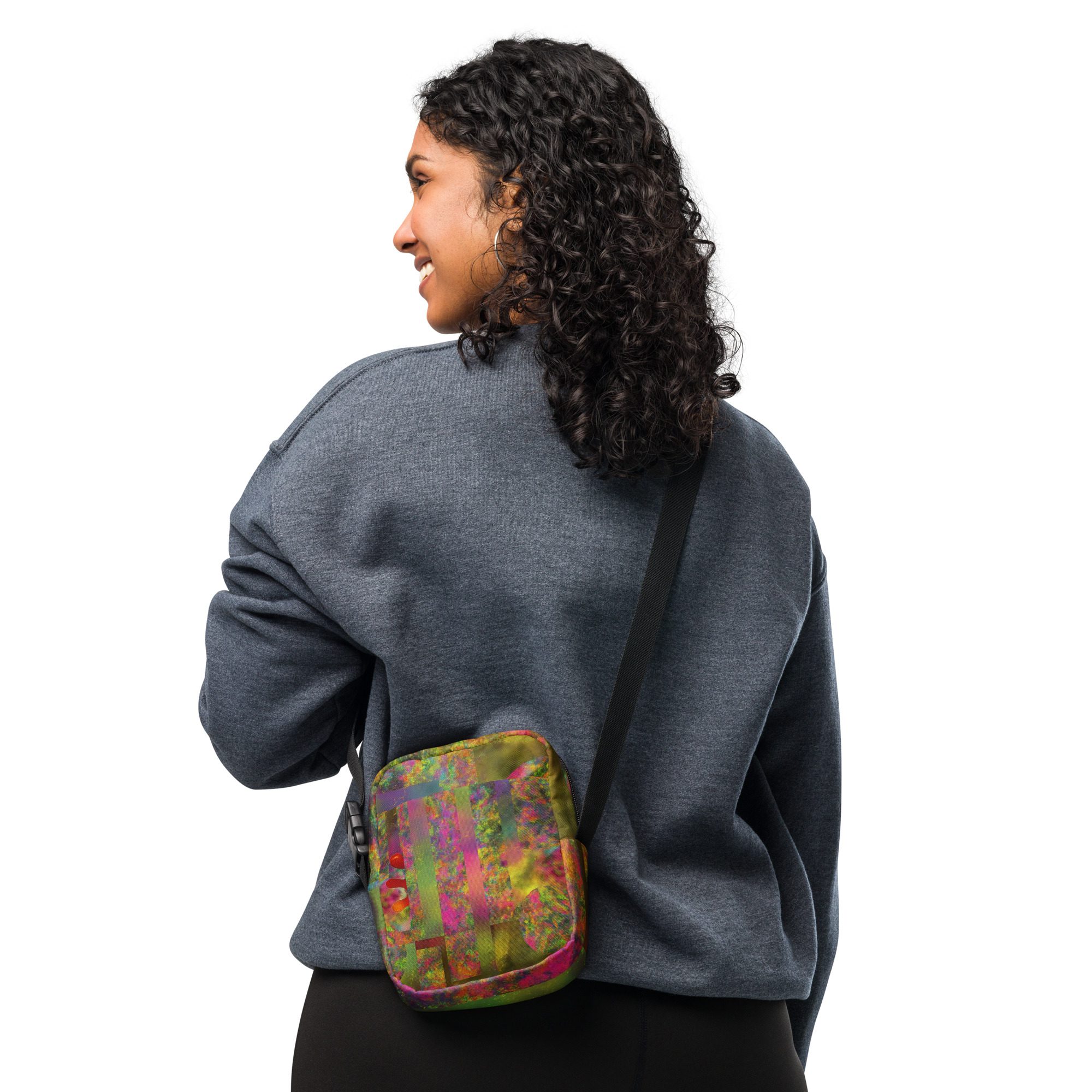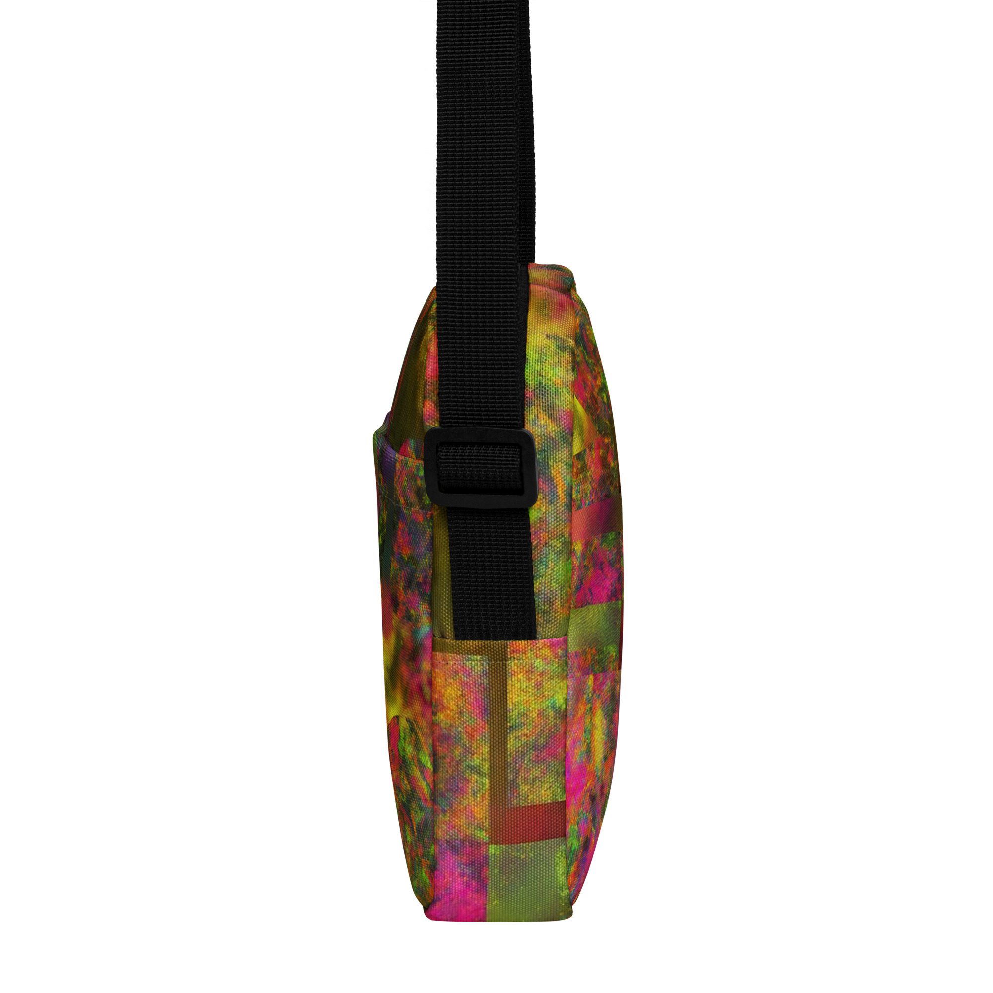 Designed for daily convenience, it includes a spacious main compartment, adjustable strap, and durable, lightweight construction—perfect for travel, festivals, errands, or everyday wear. This is functional streetwear elevated by modern abstract art.