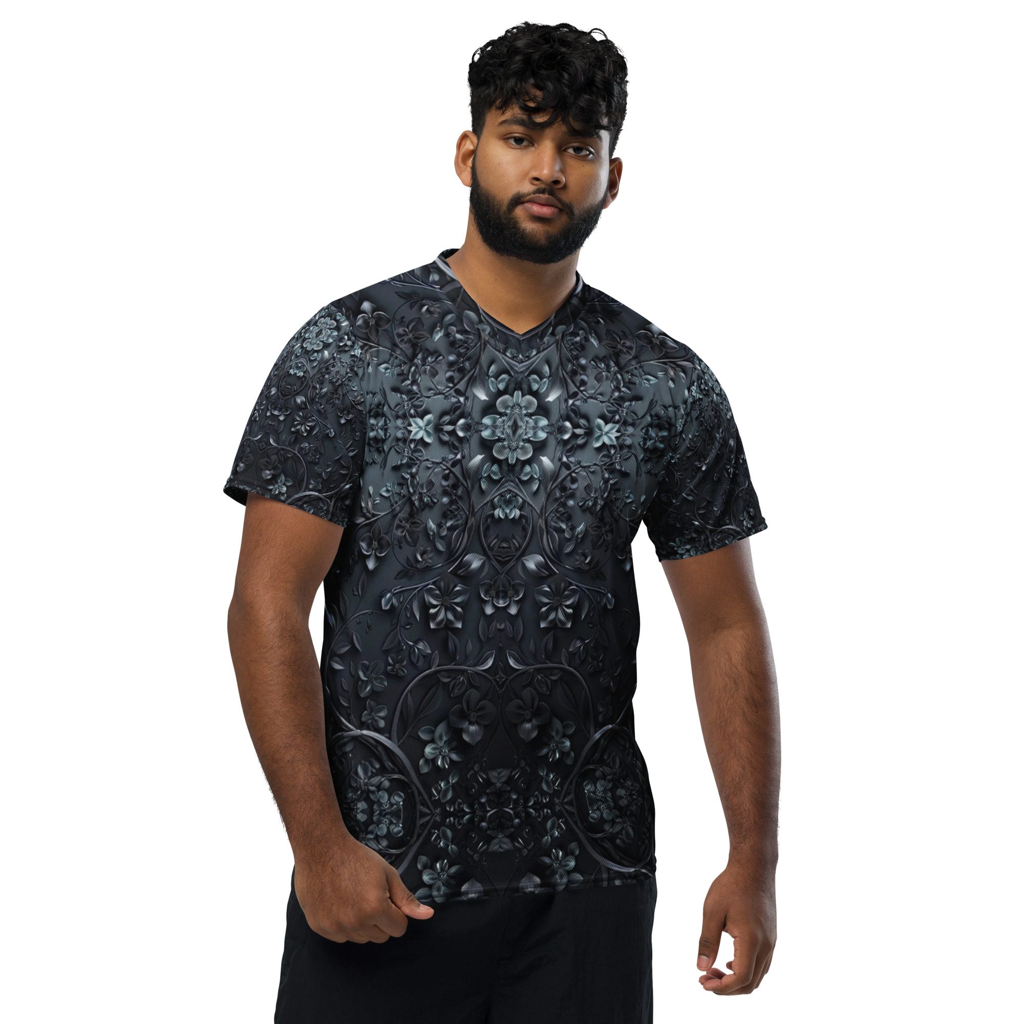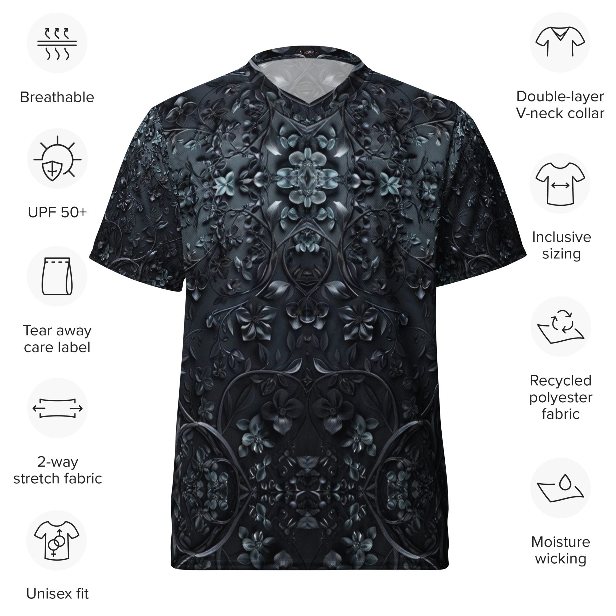 Black Iron Blossoms of the Old World — Recycled Unisex Sports Jersey