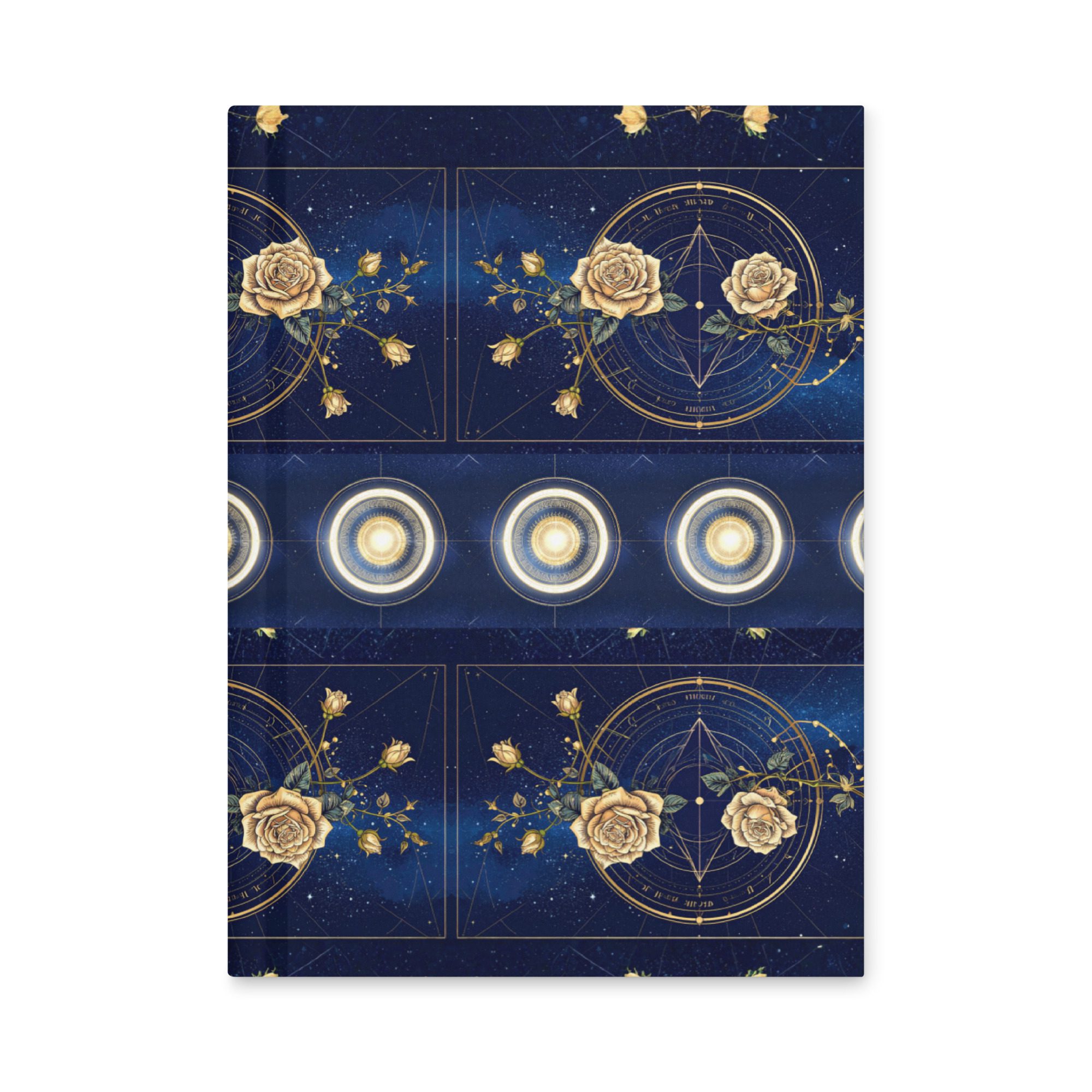 This piece is for the dreamer, the stargazer, and the writer who feels a deep connection to the quiet mystery of the universe. Inspired by celestial charts, moon phases, and golden cosmic geometry, this design reflects the beauty of astrology and spiritual reflection through luminous constellations, radiant lunar cycles, and elegant celestial roses set against a deep cosmic sky.