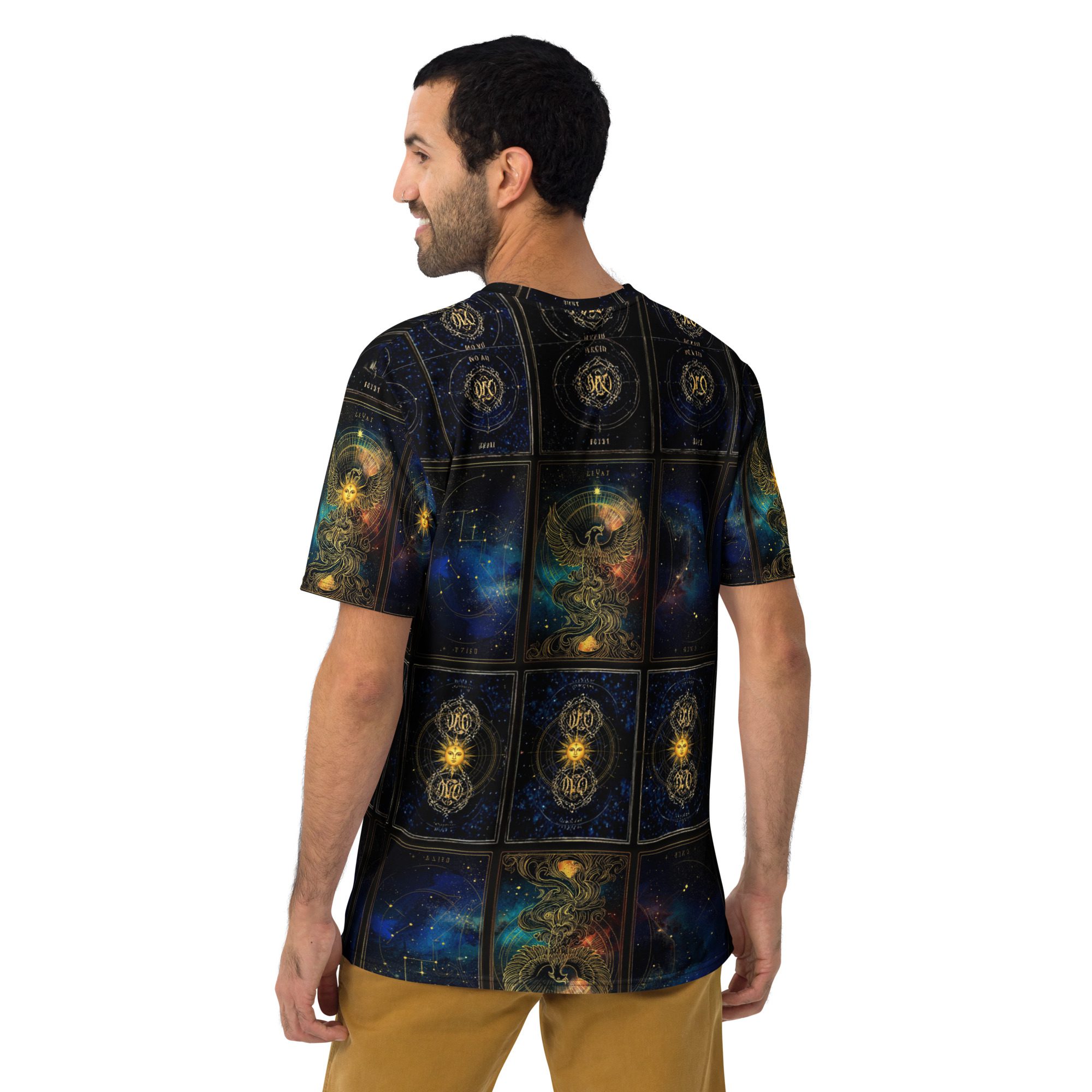 Celestial Tarot Constellation Shirt – Cosmic Astrology Galaxy Graphic Tee | Sacred Geometry Universe Design | Festival Streetwear | All-Over Print Men’s Crew Neck T-Shirt