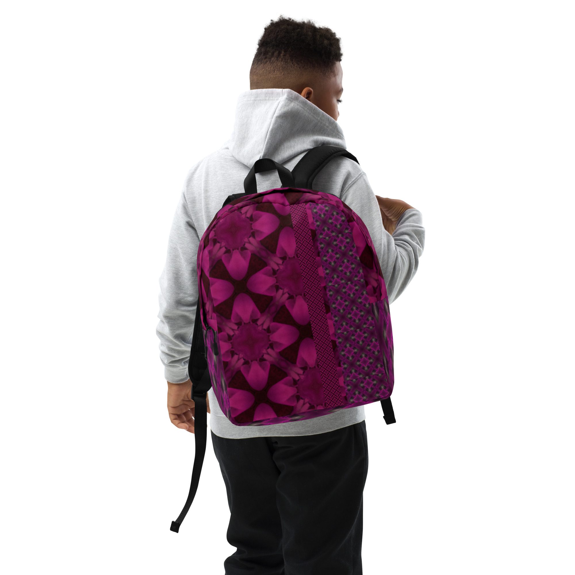 Bold. Vivid. Unmistakably unique. The Cosmic Orchid Grid Minimalist Backpack transforms everyday carry into wearable art, featuring an electrifying fusion of deep magentas, orchid-purple geometry, and a soft abstract kaleidoscope pattern created by artist Jaysen Mansfield.