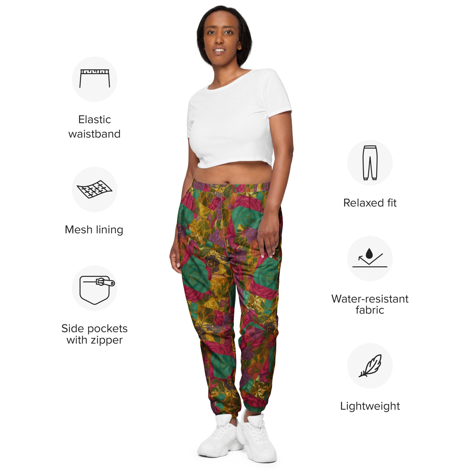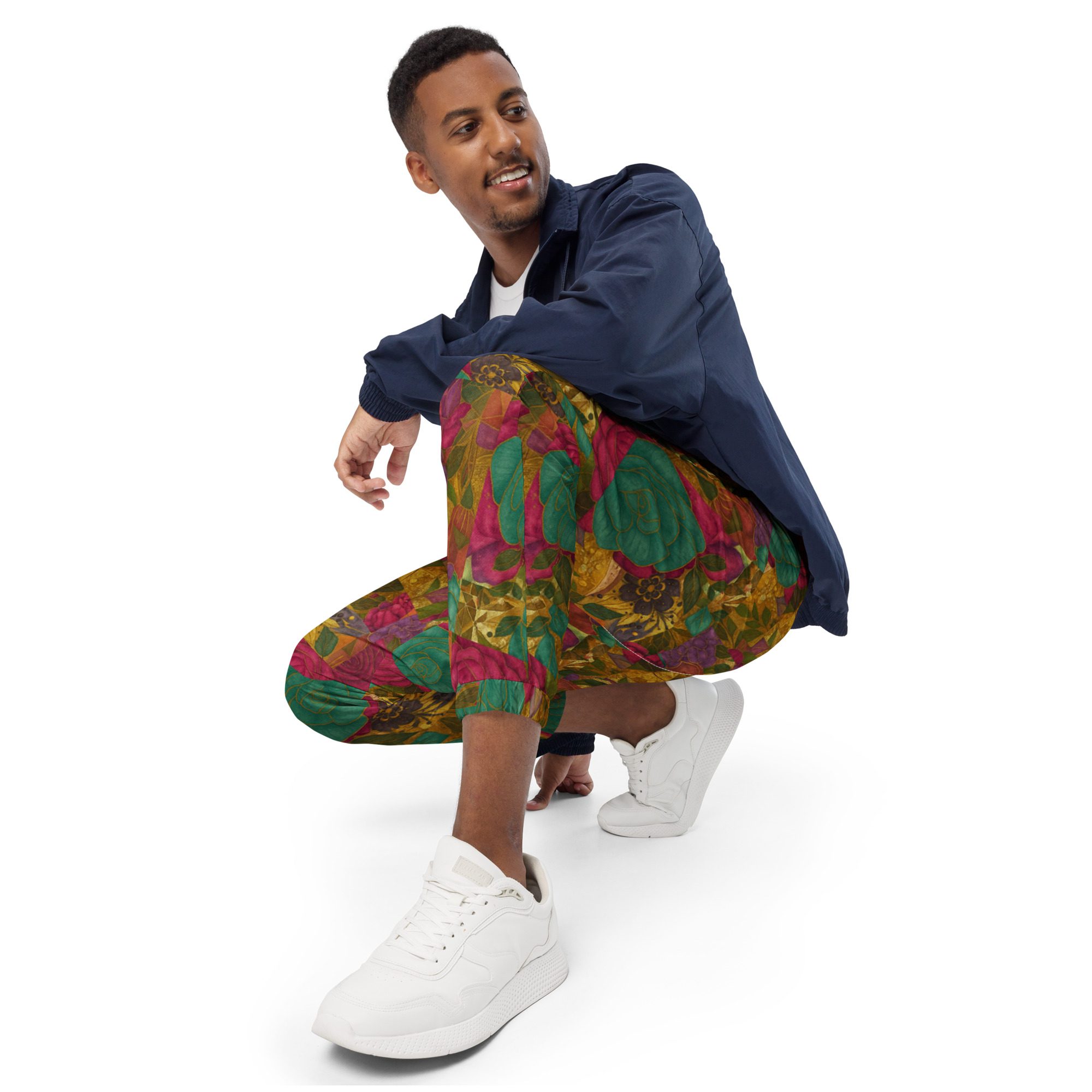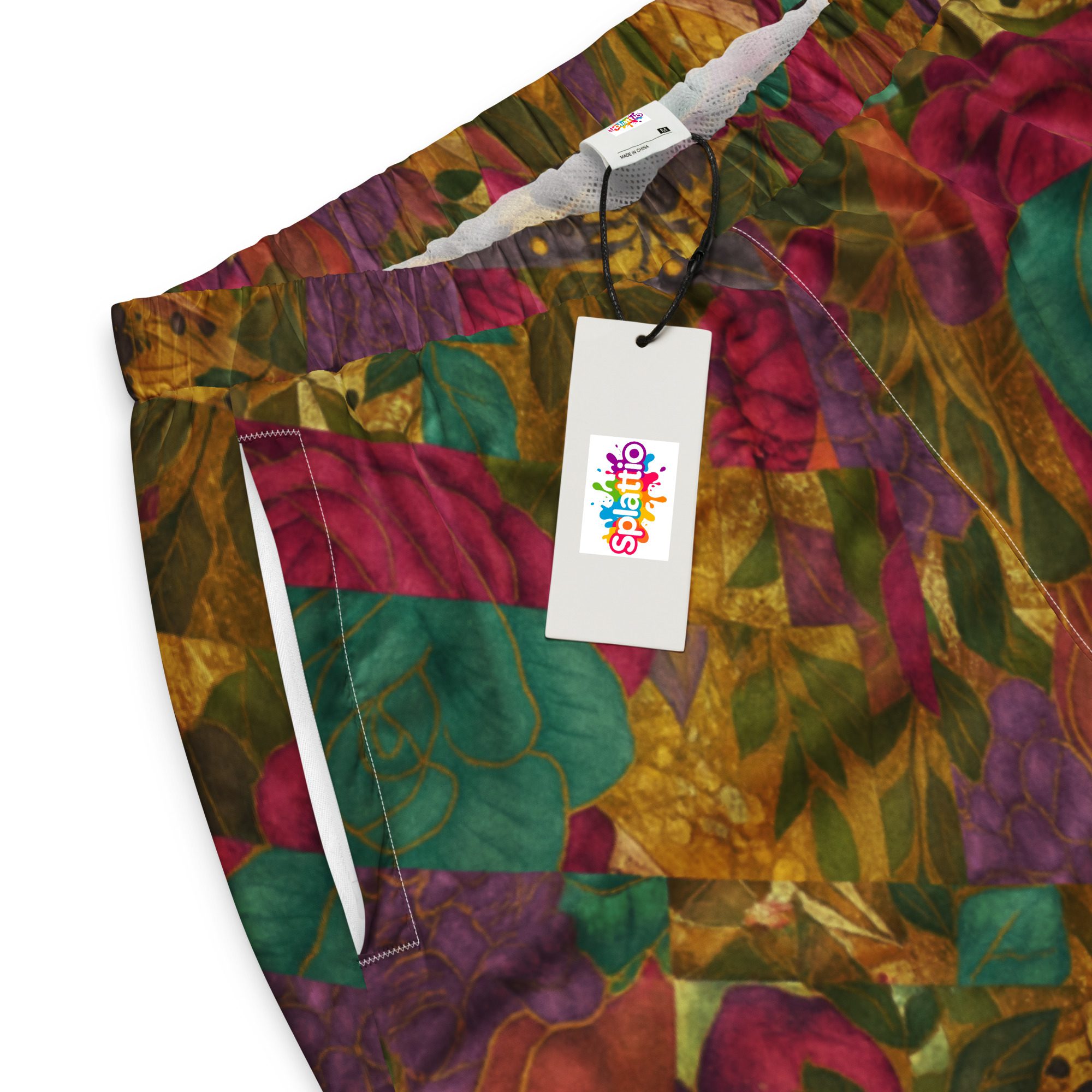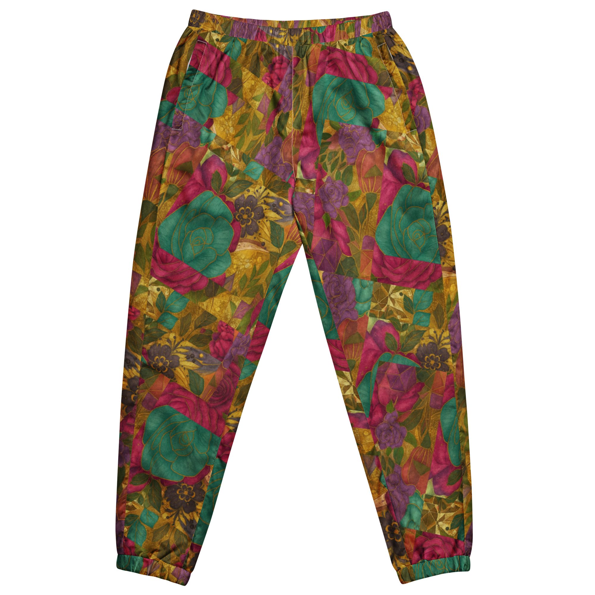 This all-over print unisex track pant design captures the living heartbeat of nature through vibrant crimson, mossy green, and golden undertones that intertwine like roots in motion. The pattern flows with an organic rhythm — raw, radiant, and full of quiet strength — embodying both earth’s grounding energy and the passion of a rose in bloom.