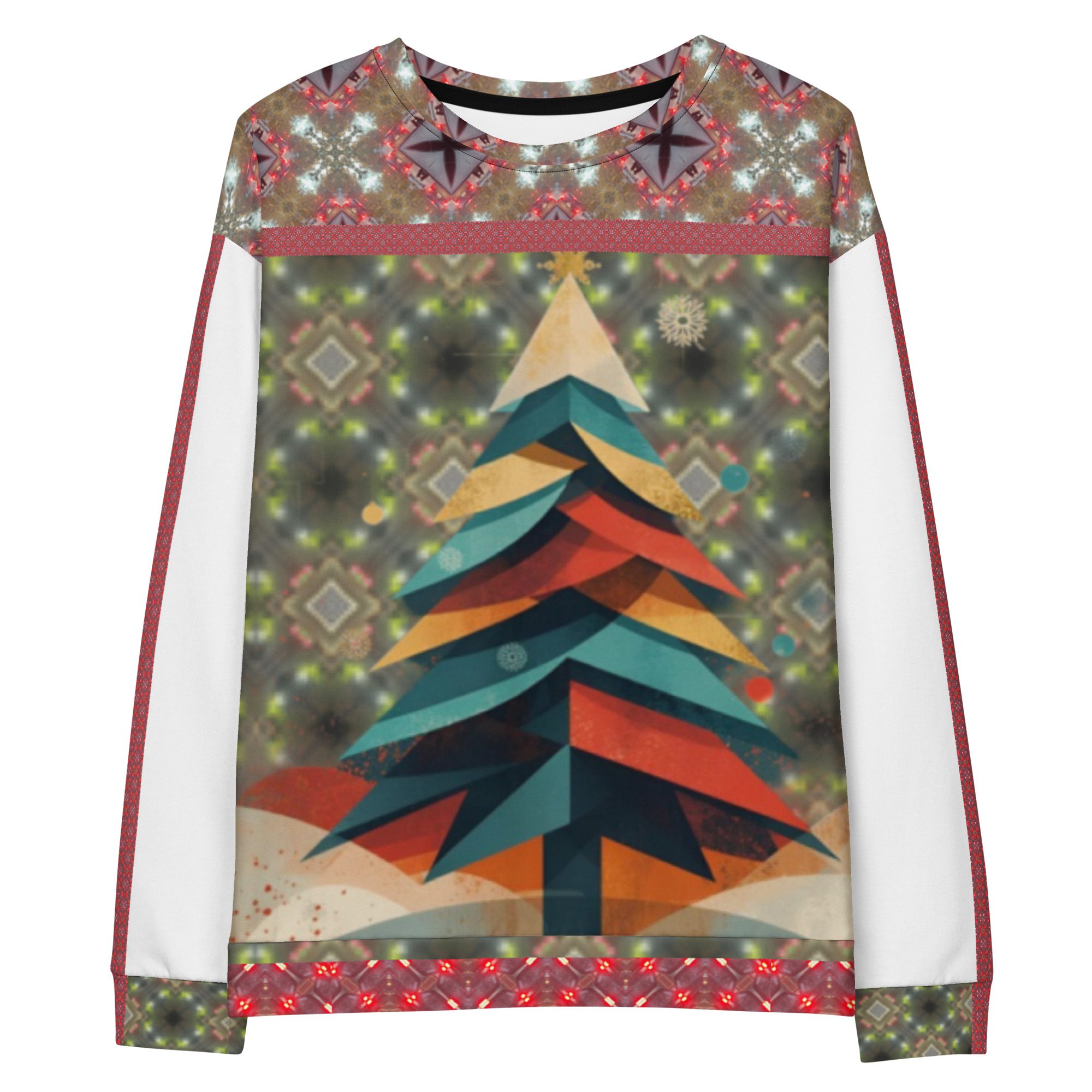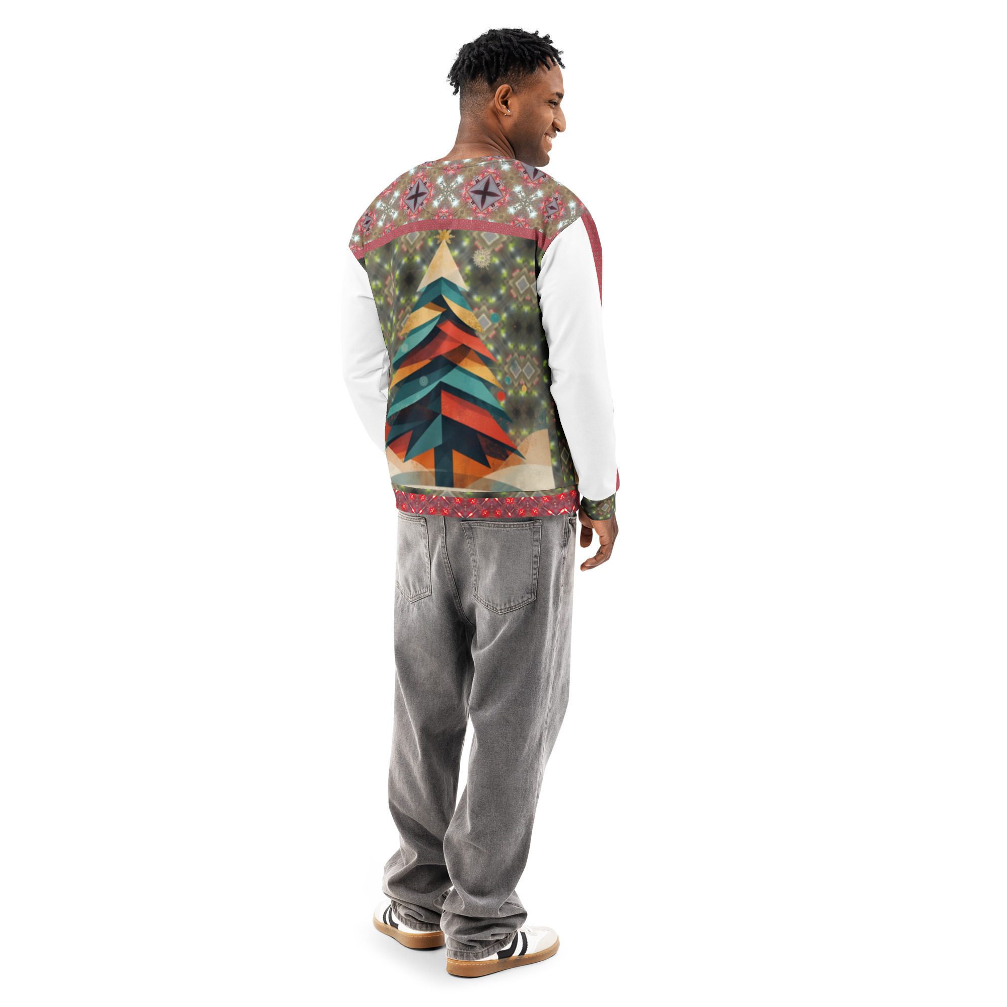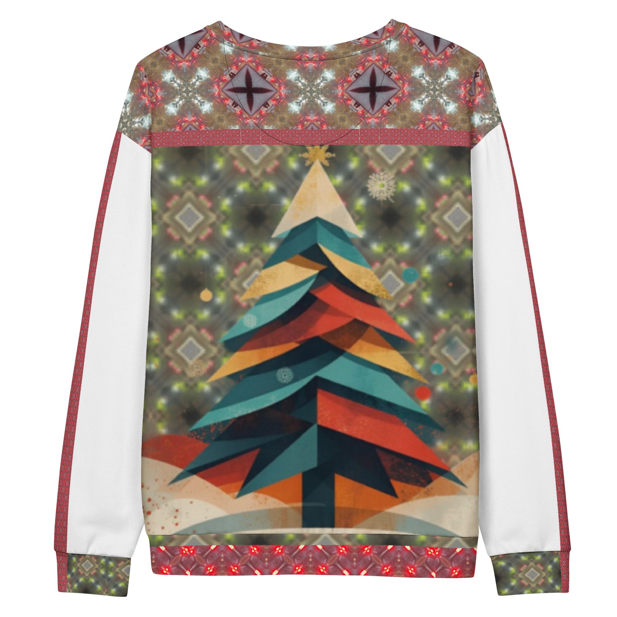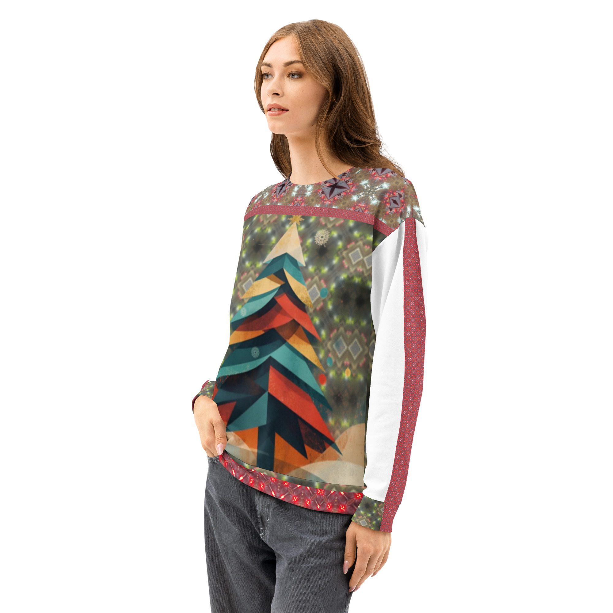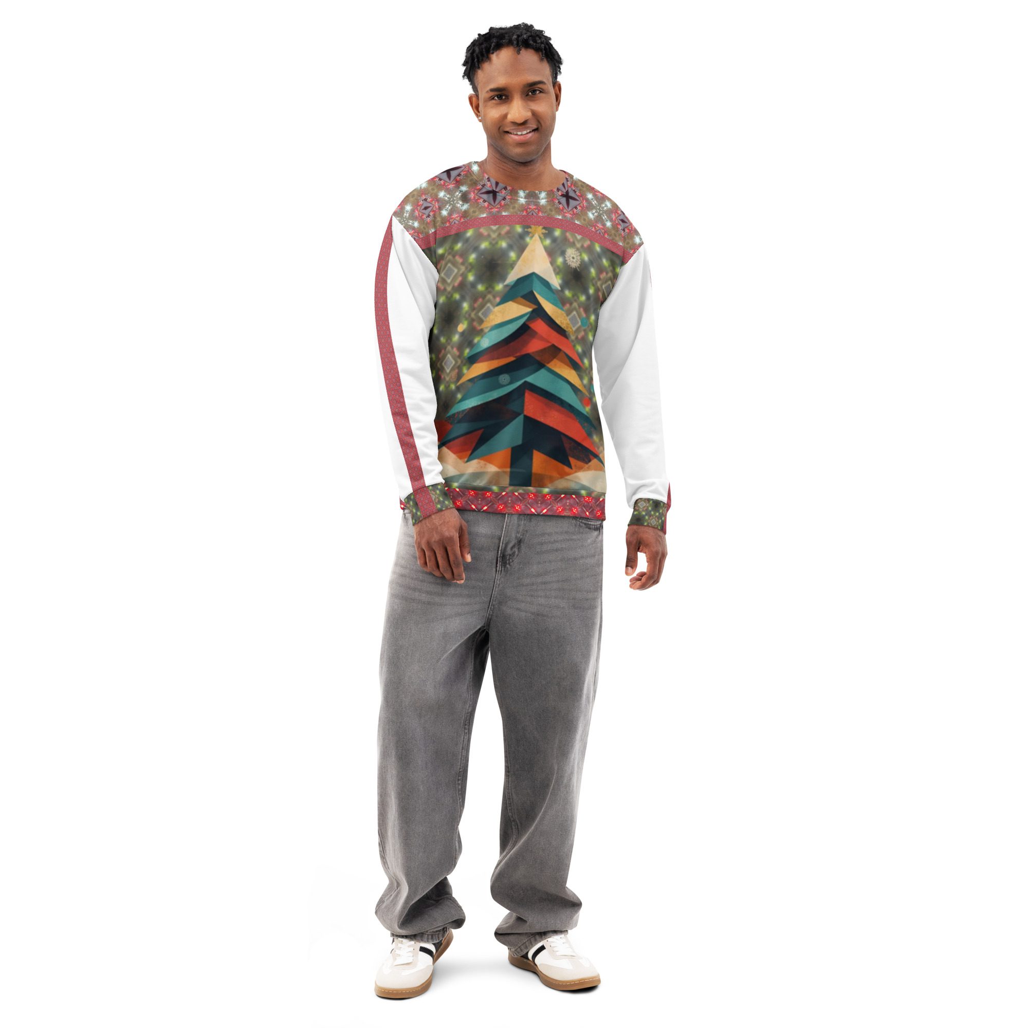This premium unisex sweatshirt features an all-over print showcasing a vibrant abstract Christmas tree layered with rich seasonal textures, winter patterns, and festive color contrasts. Designed for comfort and durability, it’s crafted from soft cotton fabric with high-quality printing that delivers detailed artwork, crisp definition, and long-lasting color.