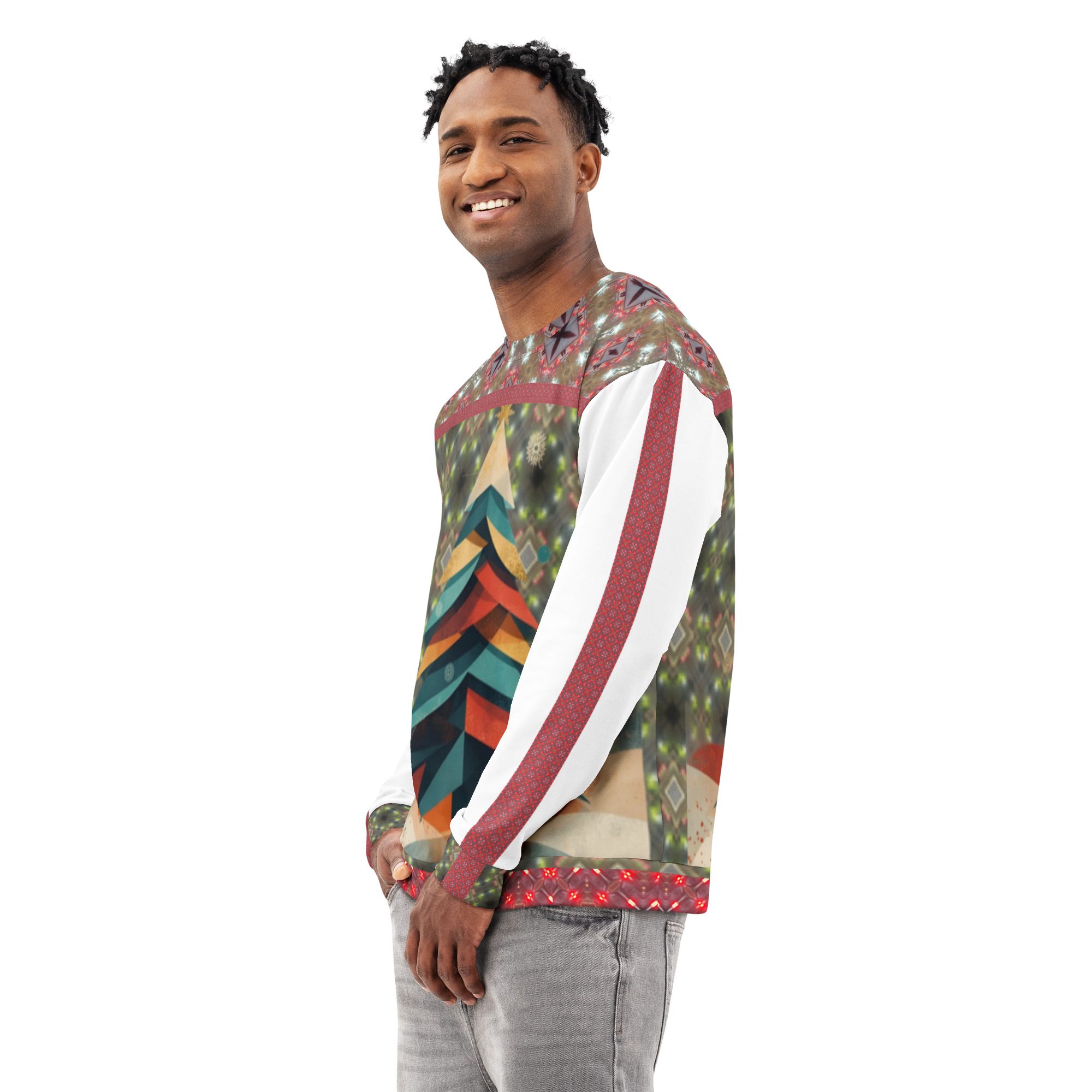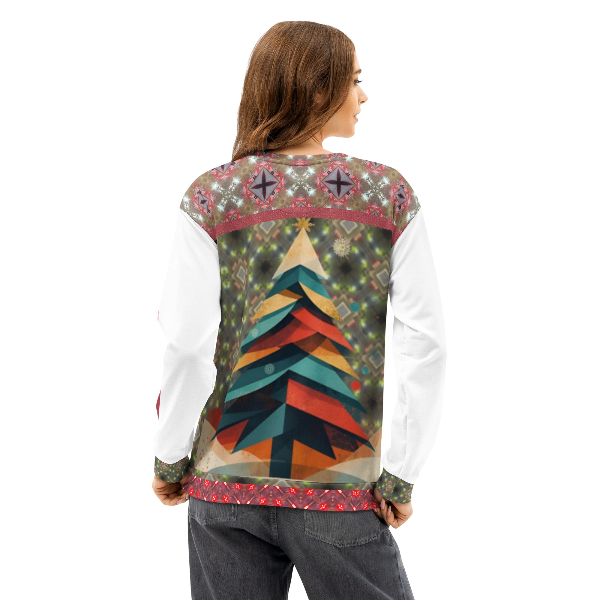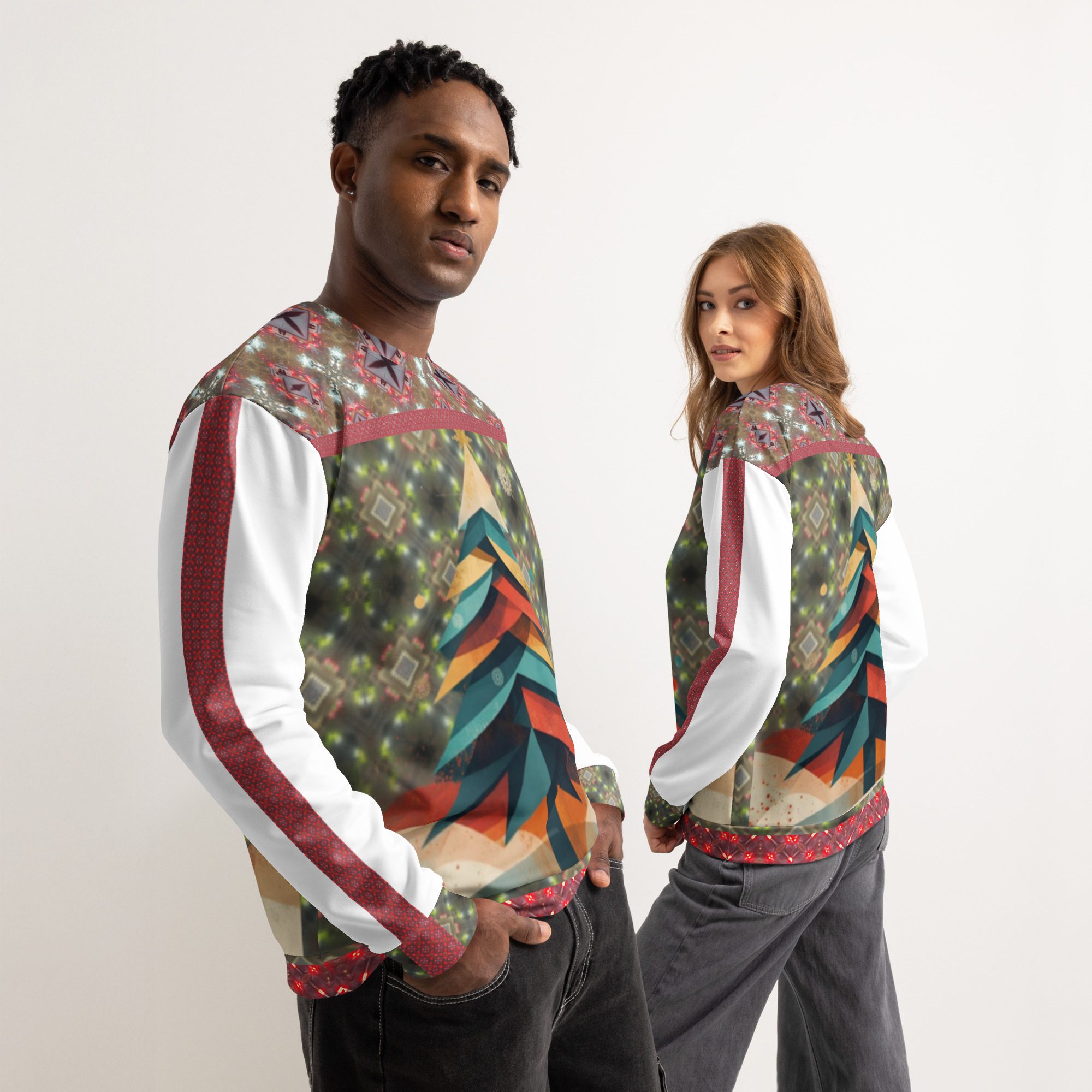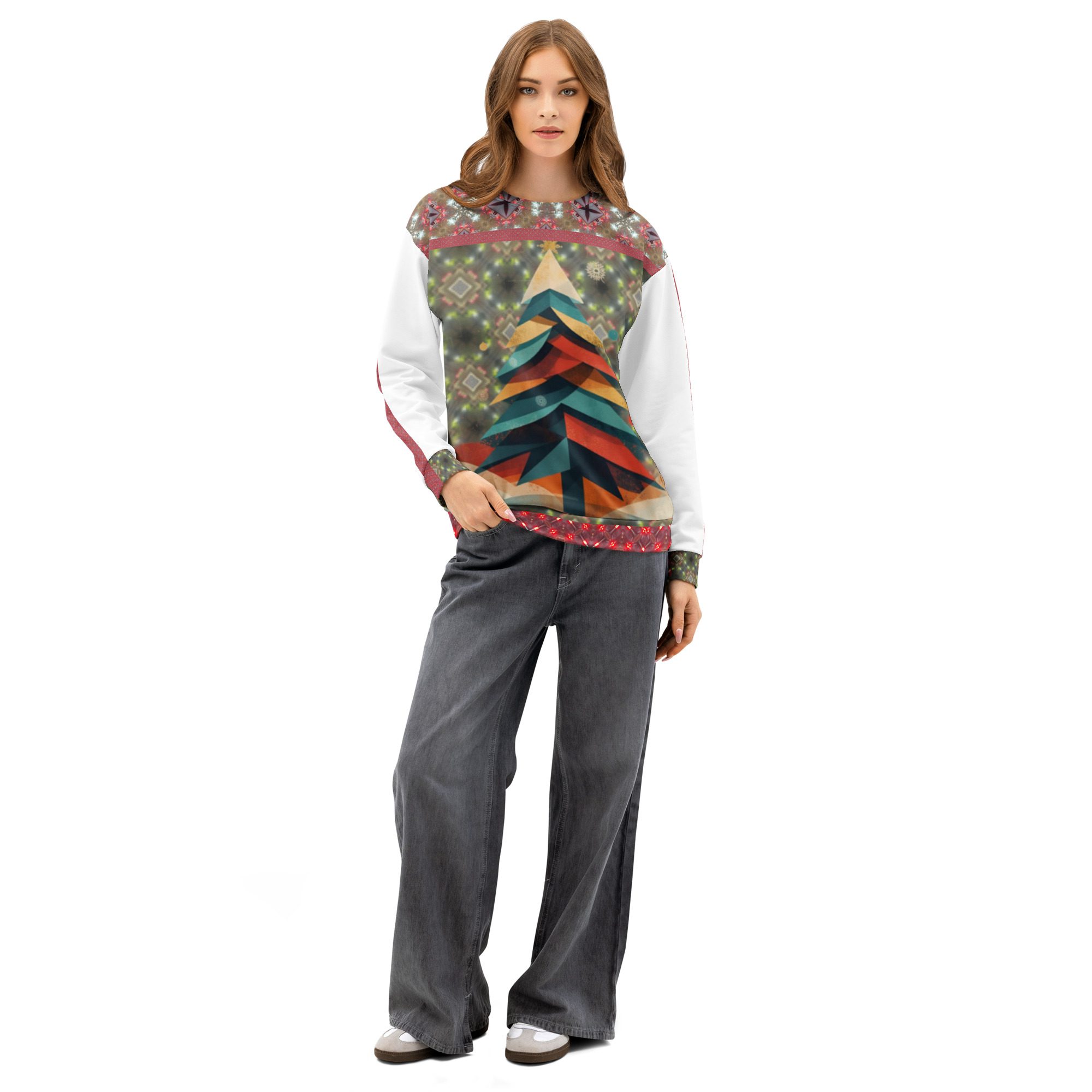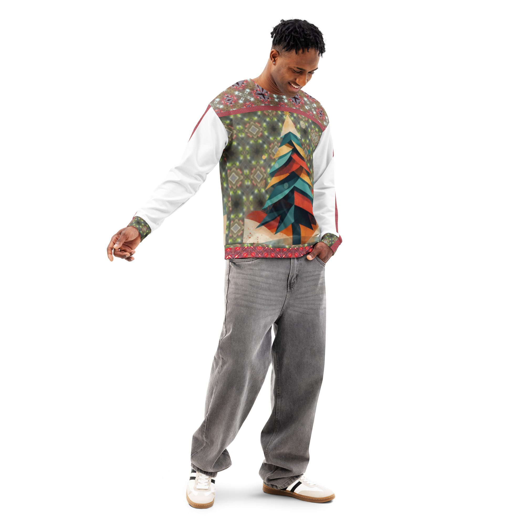 This premium unisex sweatshirt features an all-over print showcasing a vibrant abstract Christmas tree layered with rich seasonal textures, winter patterns, and festive color contrasts. Designed for comfort and durability, it’s crafted from soft cotton fabric with high-quality printing that delivers detailed artwork, crisp definition, and long-lasting color.