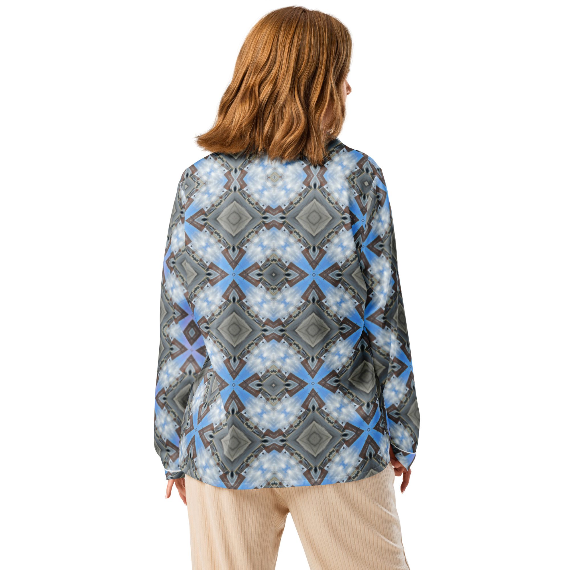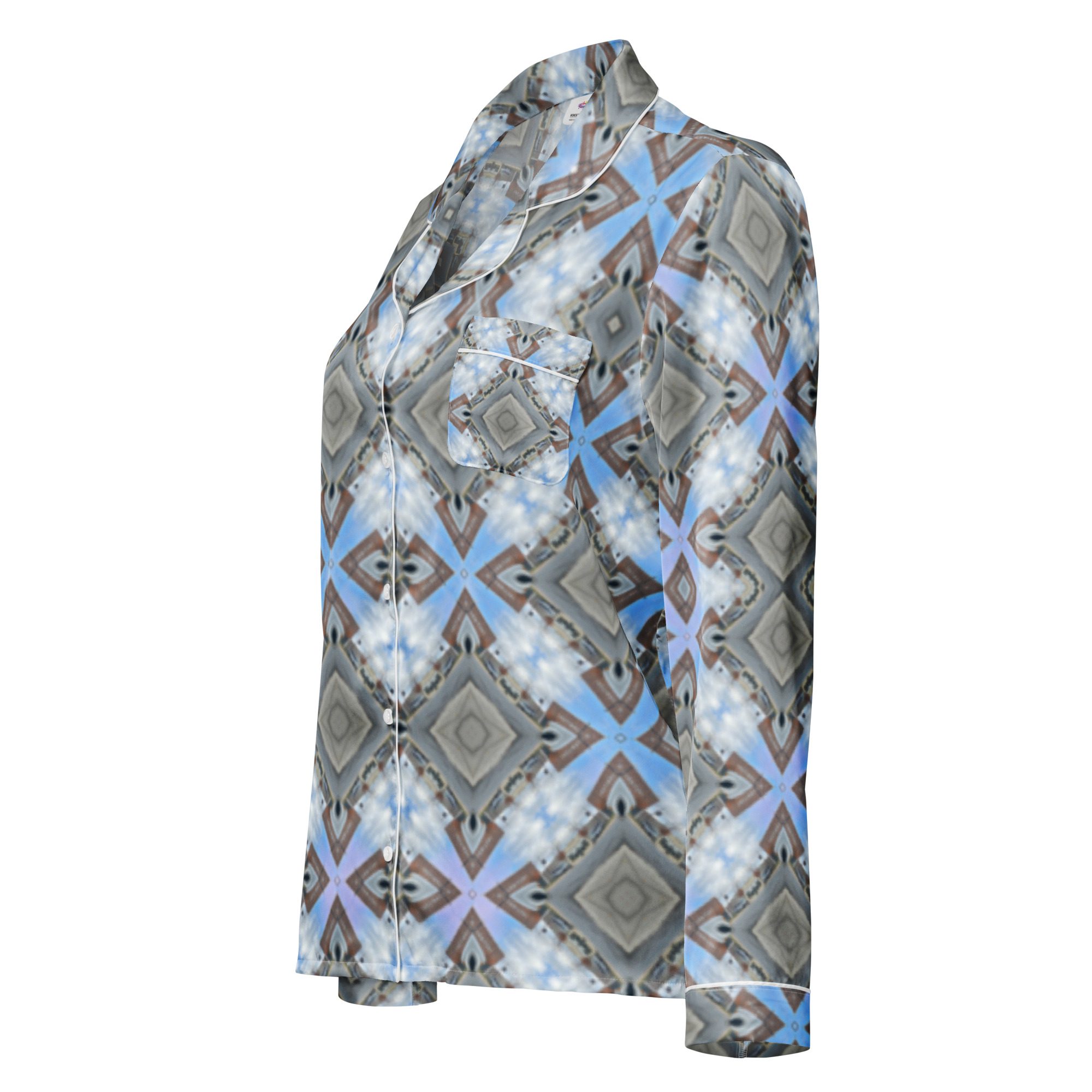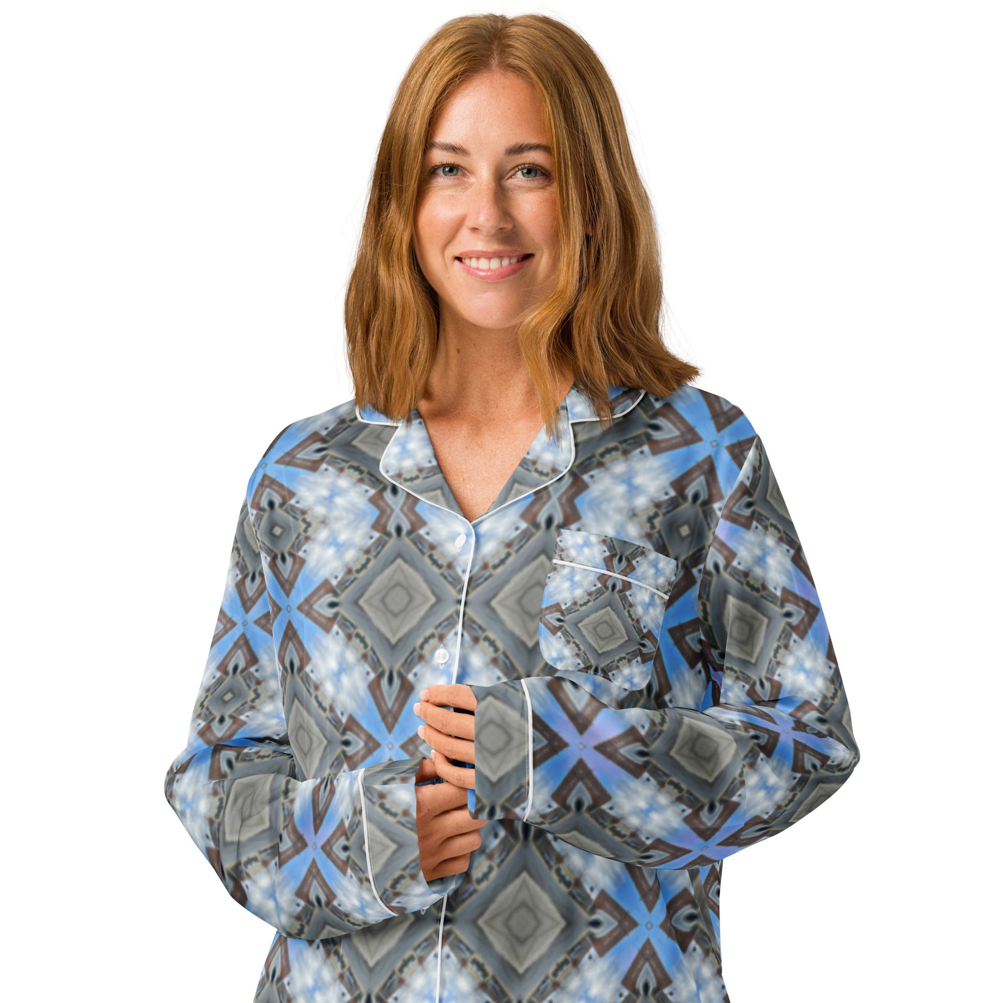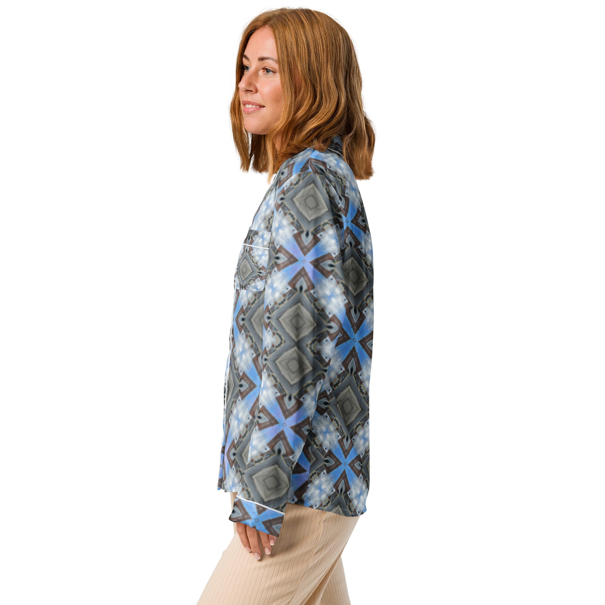 This silky pajama top is ideal for a cozy day when you want to feel both comfortable and elegant. It features a relaxed fit, chest pocket, and elegant piping detail. Frostline Mirage — where cool tones meet warm comfort.