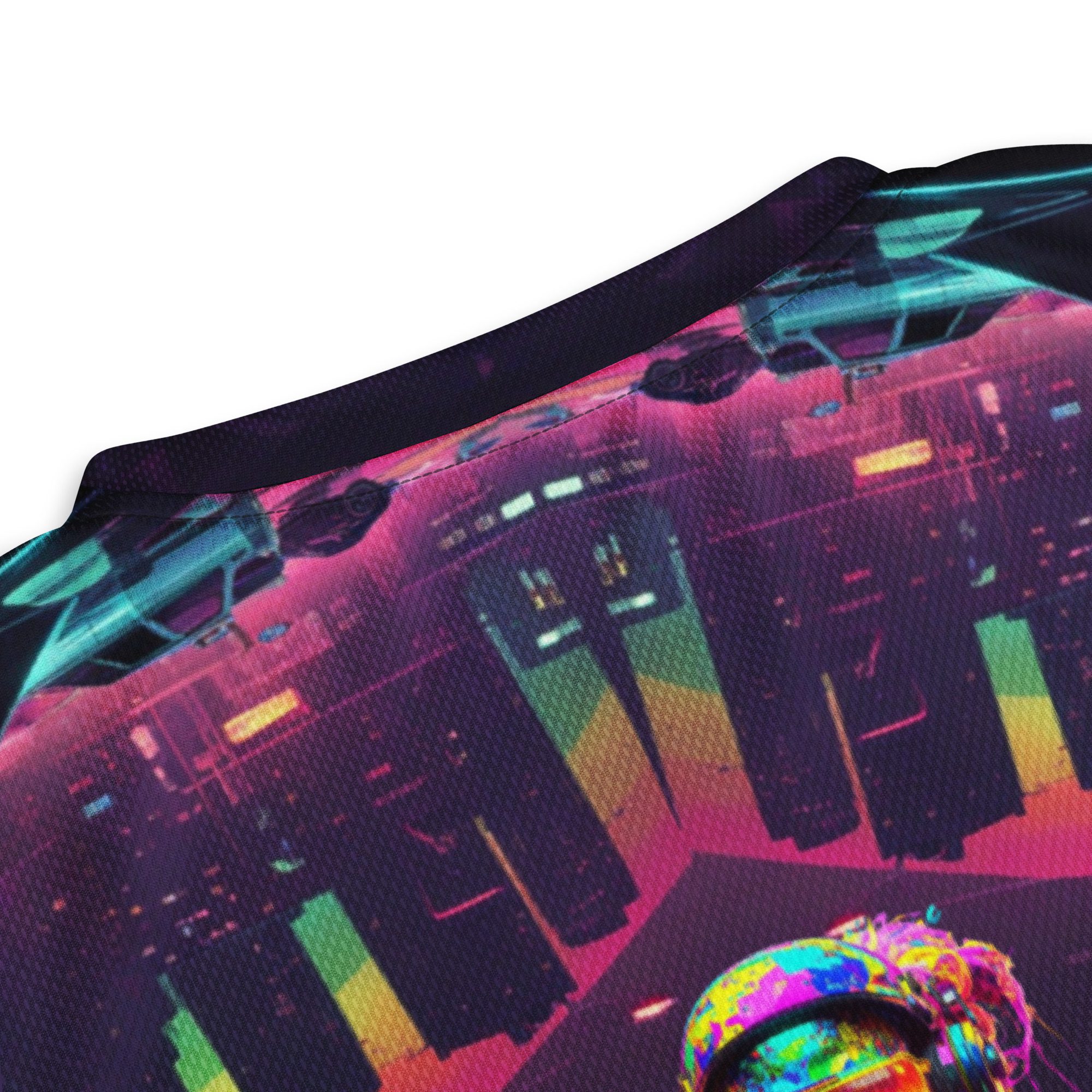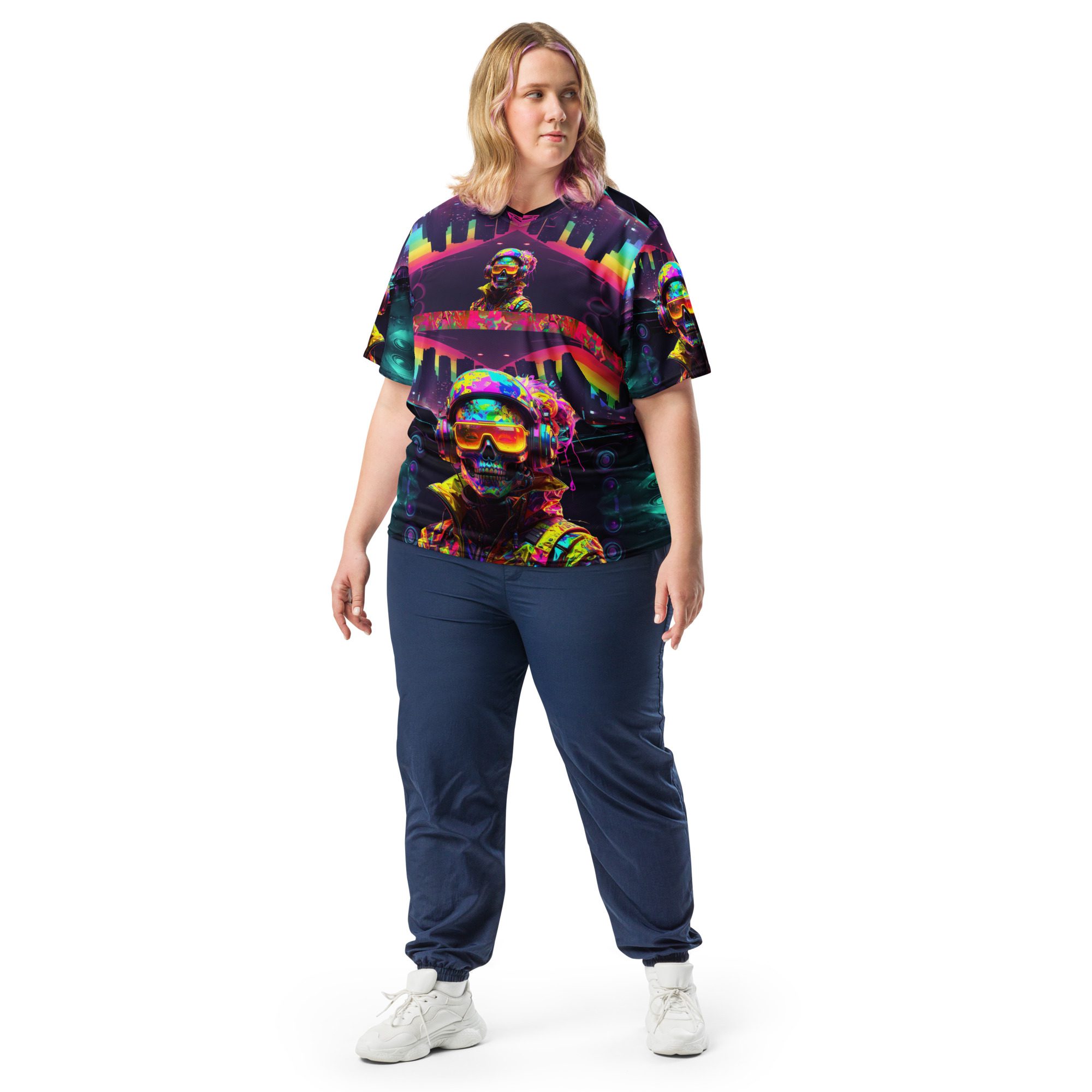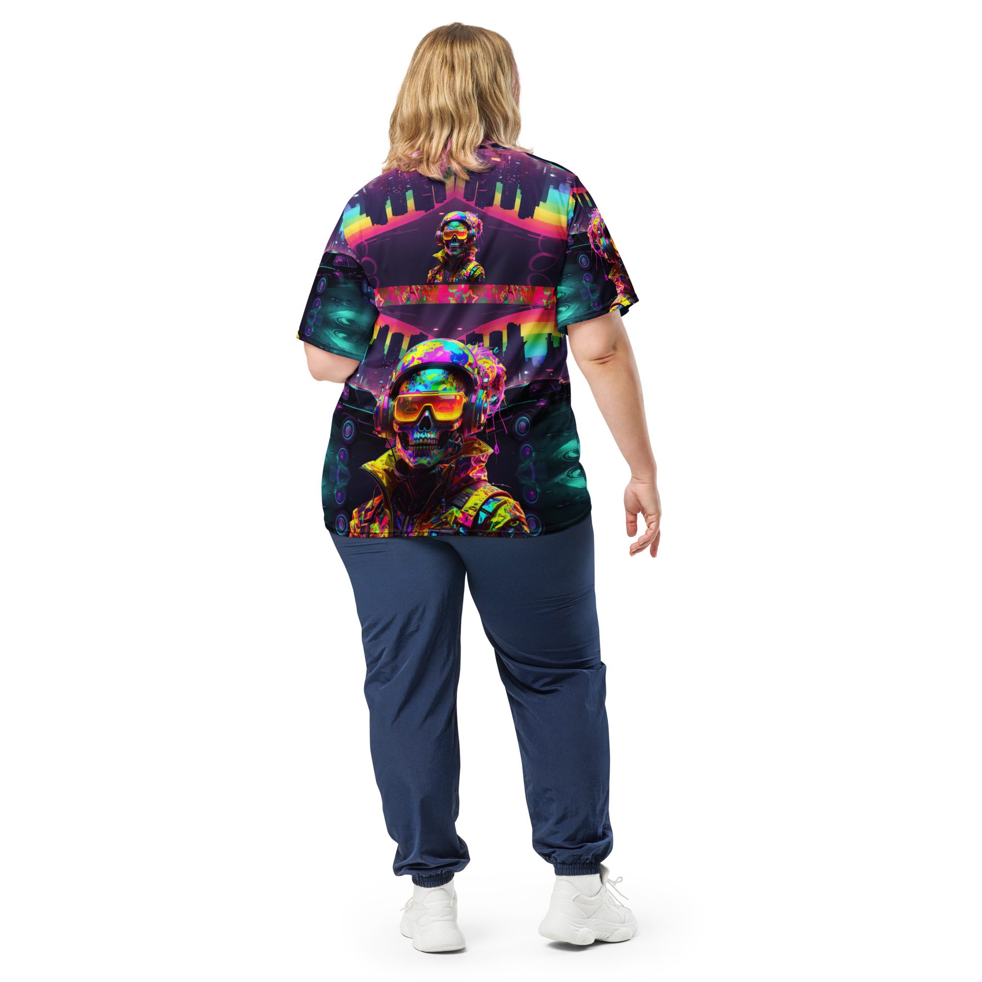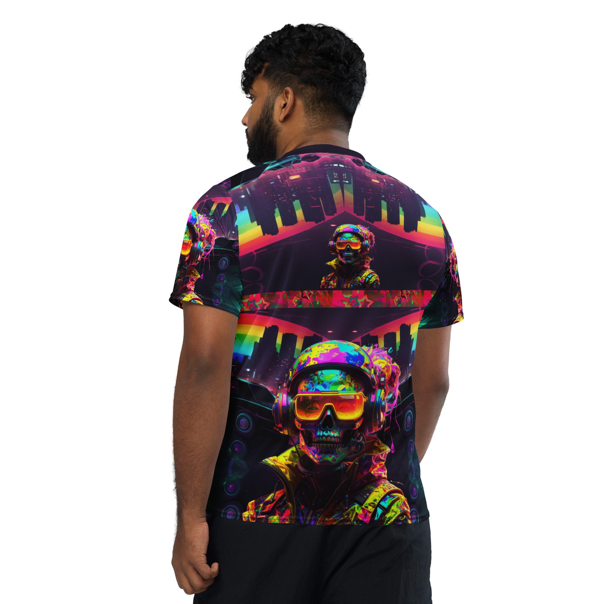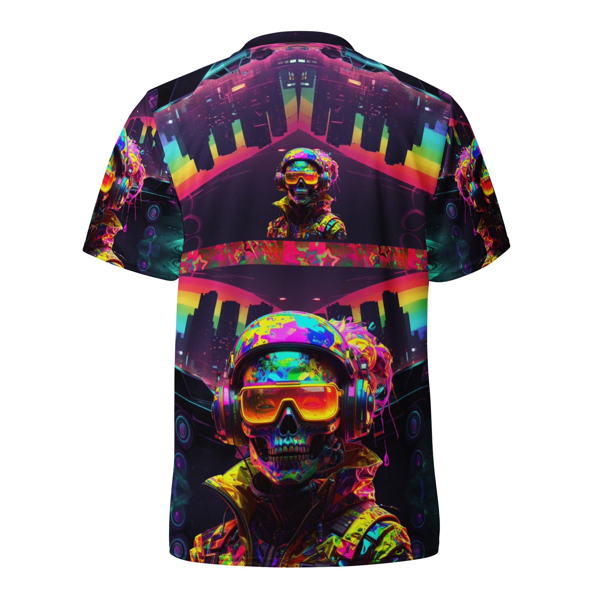 It feels electric, chaotic, nostalgic, and dangerous — like a lost rave flyer burned into a corrupted hard drive. This jersey carries late-night warehouse energy, underground club culture, cyberpunk streetwear attitude, and Y2K rave fashion all in one wearable artifact.