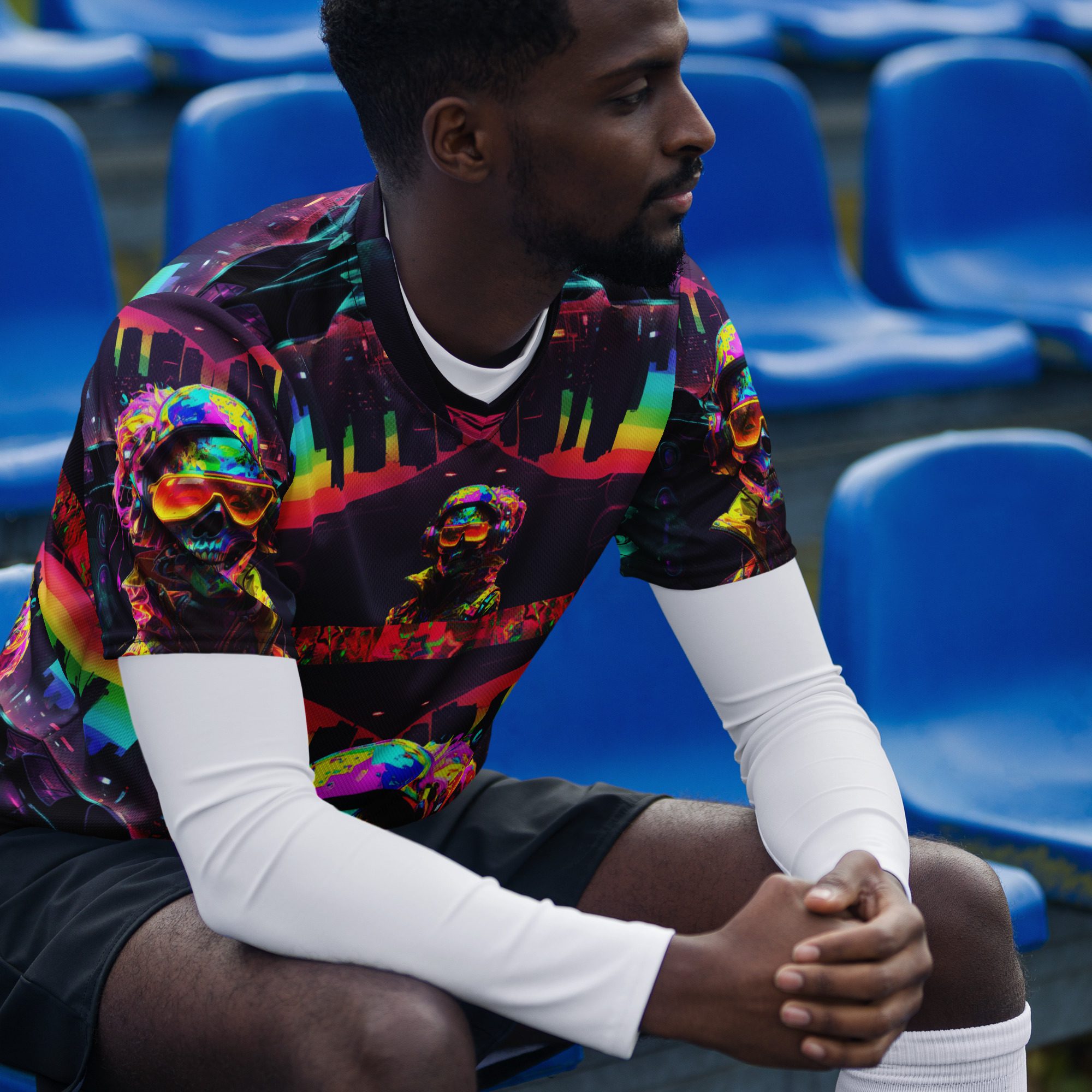 If you’re the kind of person who collects moments, lives loud, loves Y2K cyber aesthetics, rave fashion, glitch art, retro futurism, and wants something rare before it disappears — this jersey was made for you.