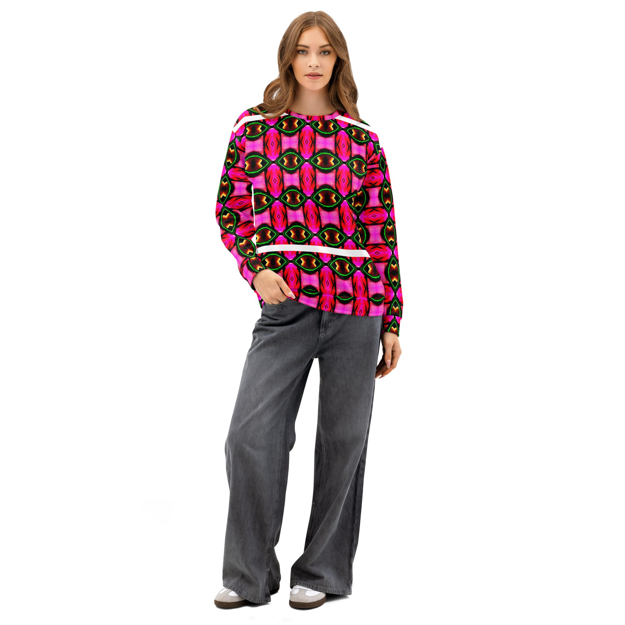 Hyper Flare Bloom ushers in a burst of neon energy and hypnotic symmetry. Designed by artist Jaysen Mansfield, this wearable art piece turns a classic cotton sweatshirt into a vibrant statement of color, movement, and electric personality.