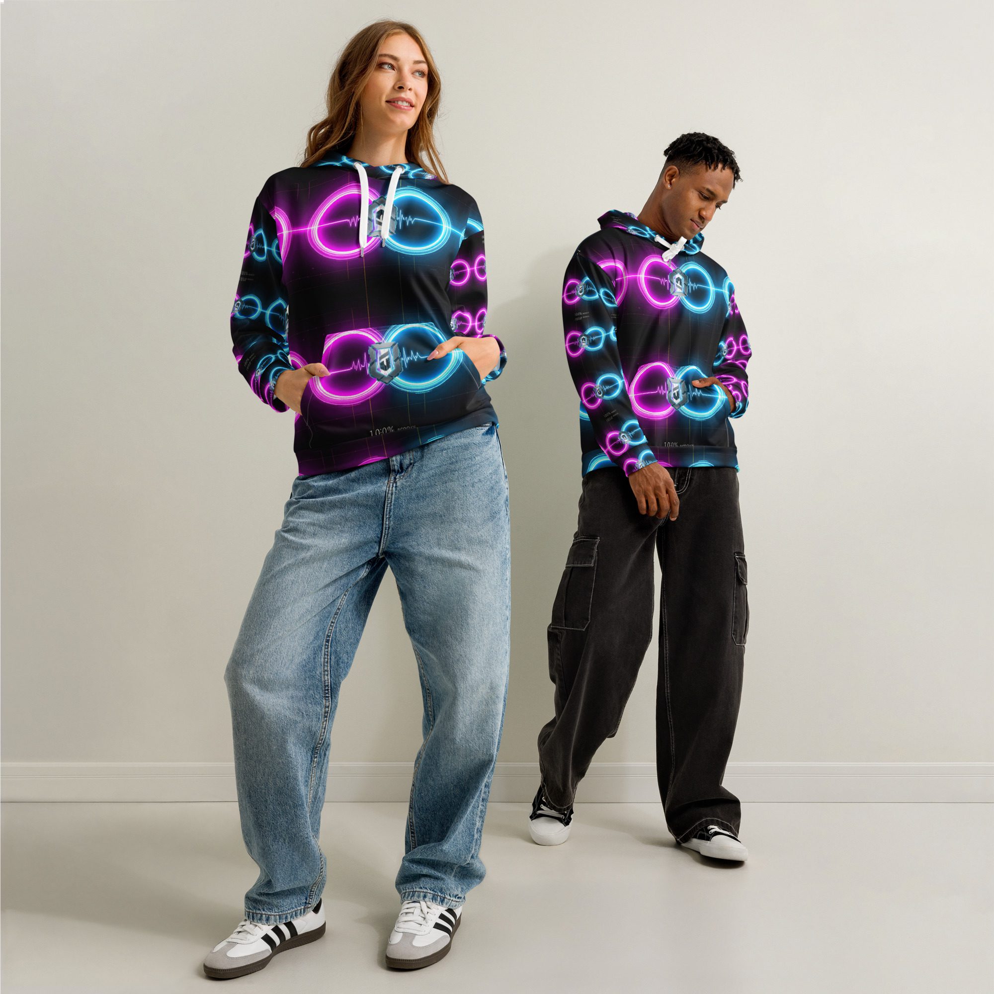 Infinite Clutch: Neon Dual Core Emblem Unisex Cotton Hoodie