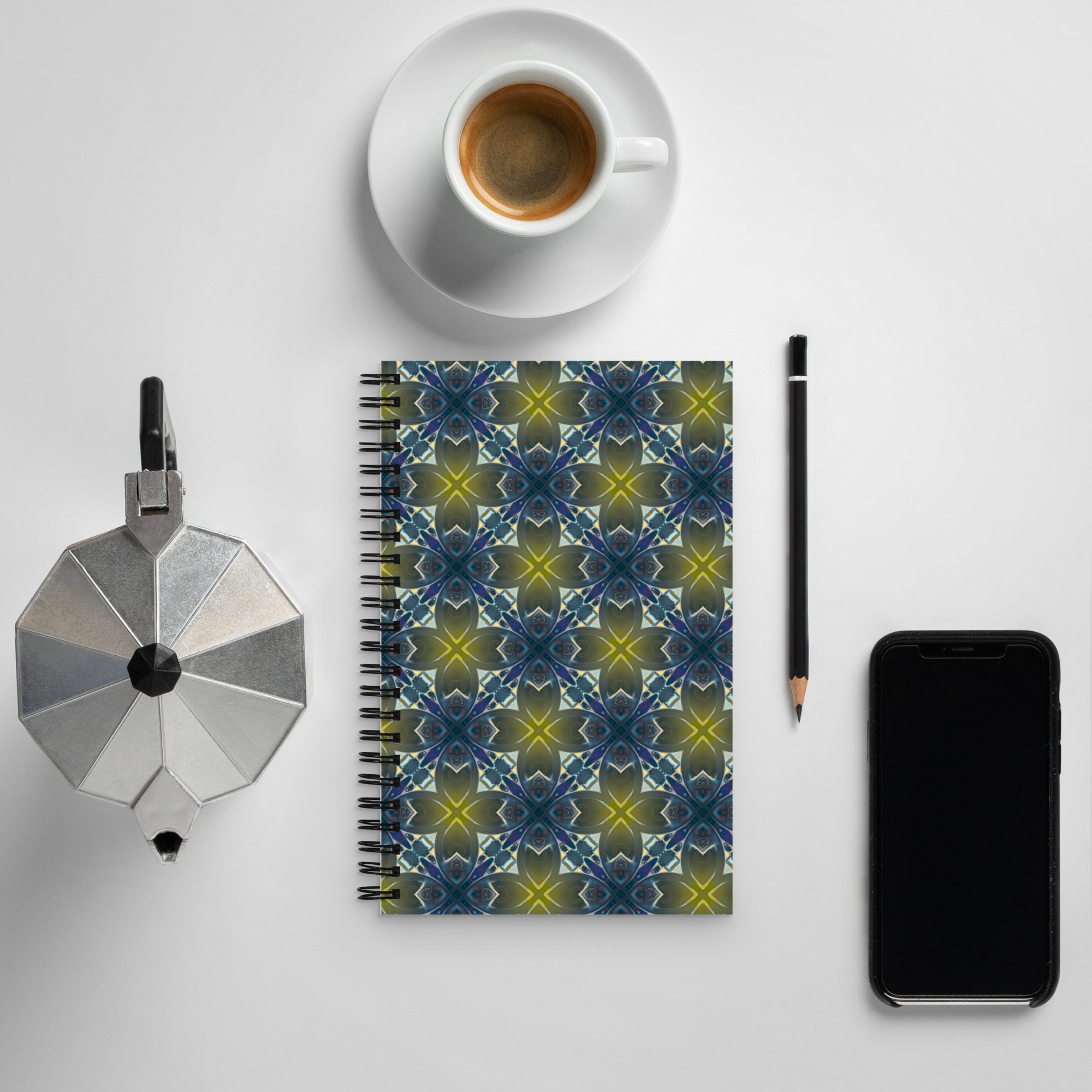 Meet the Luminous Starfall Spiral Notebook, a vibrant piece of functional art featuring a radiant geometric pattern created by artist Jaysen Mansfield. This notebook blends bold symmetry, glowing star-like motifs, and deep cosmic tones, turning everyday writing into a visually immersive experience.