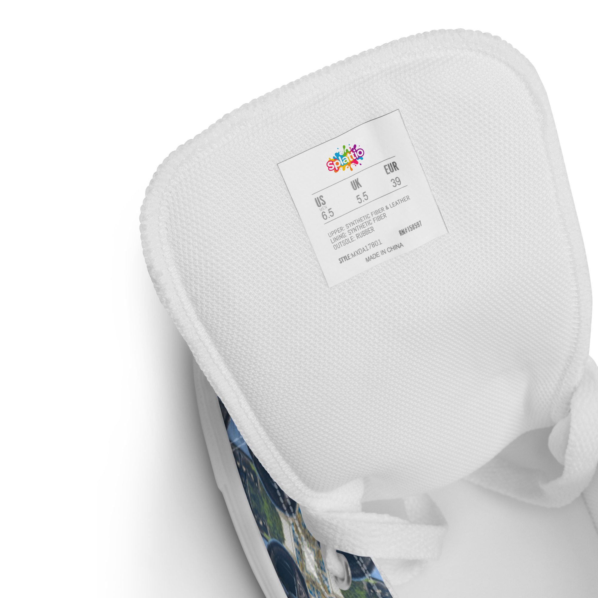 Crafted for comfort and individuality, these high-top canvas shoes elevate everyday outfits with an edge of abstract elegance. Whether you’re strolling through city lights or pairing them with your favorite jeans, Midnight Geometry brings art and fashion into perfect alignment. Midnight Geometry — step into balance, step into beauty.