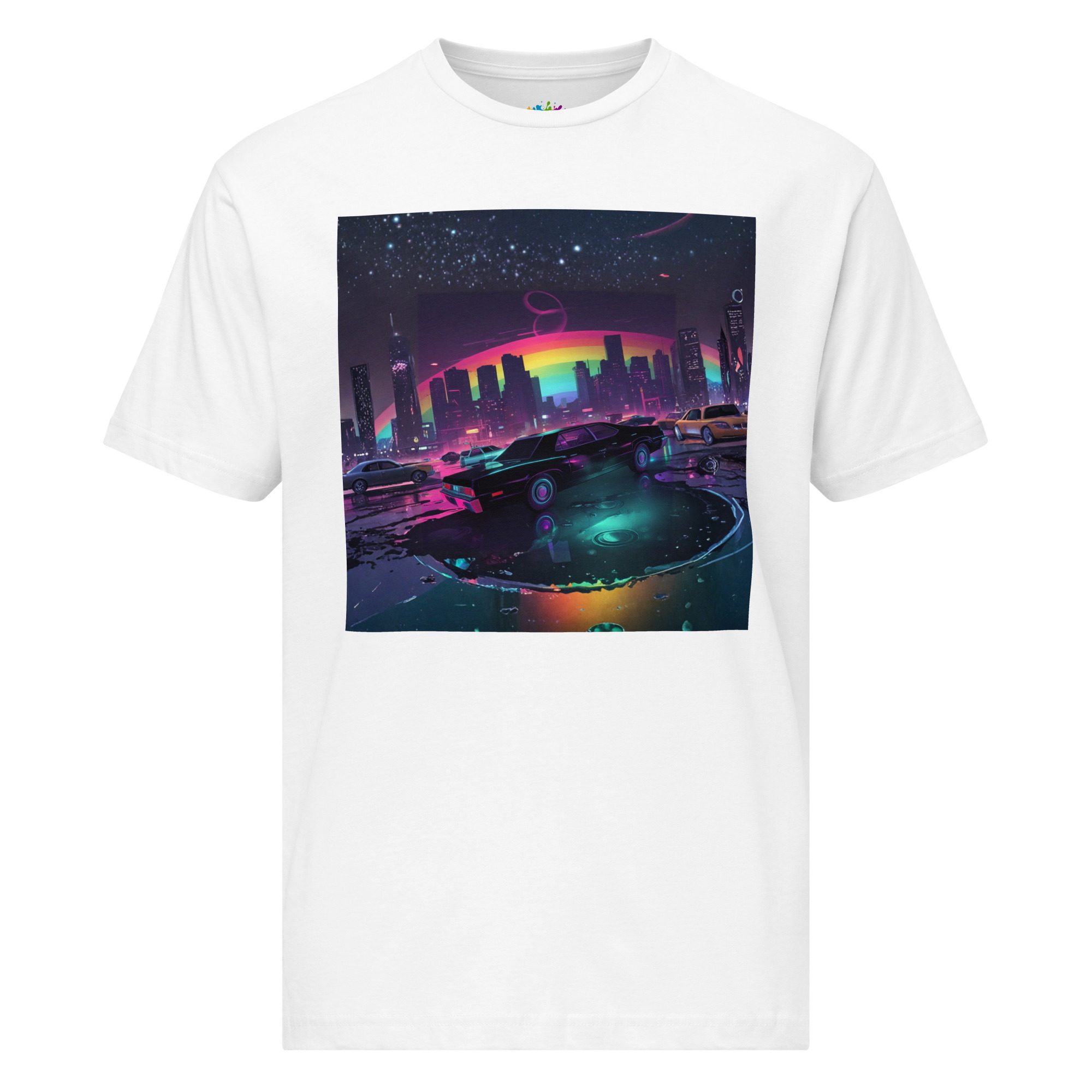 Midnight Skyline Drift: Chrome Nights & Rainbow Lights – Unisex Fine Jersey Tee