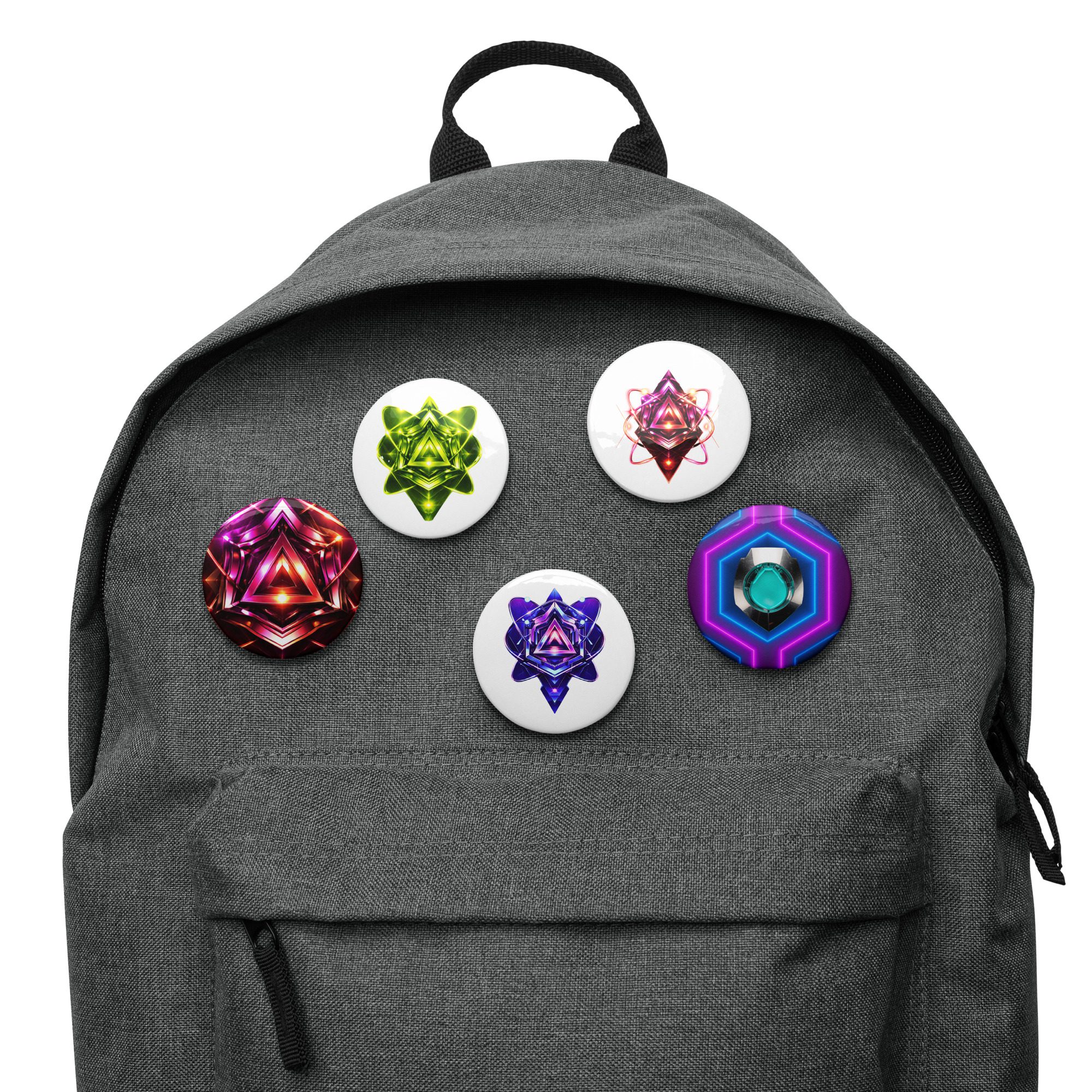 Neon Reactor Core Set — Cyberpunk Energy Pin Button Pack (5-Piece) — Original Artwork By Jaysen Mansfield