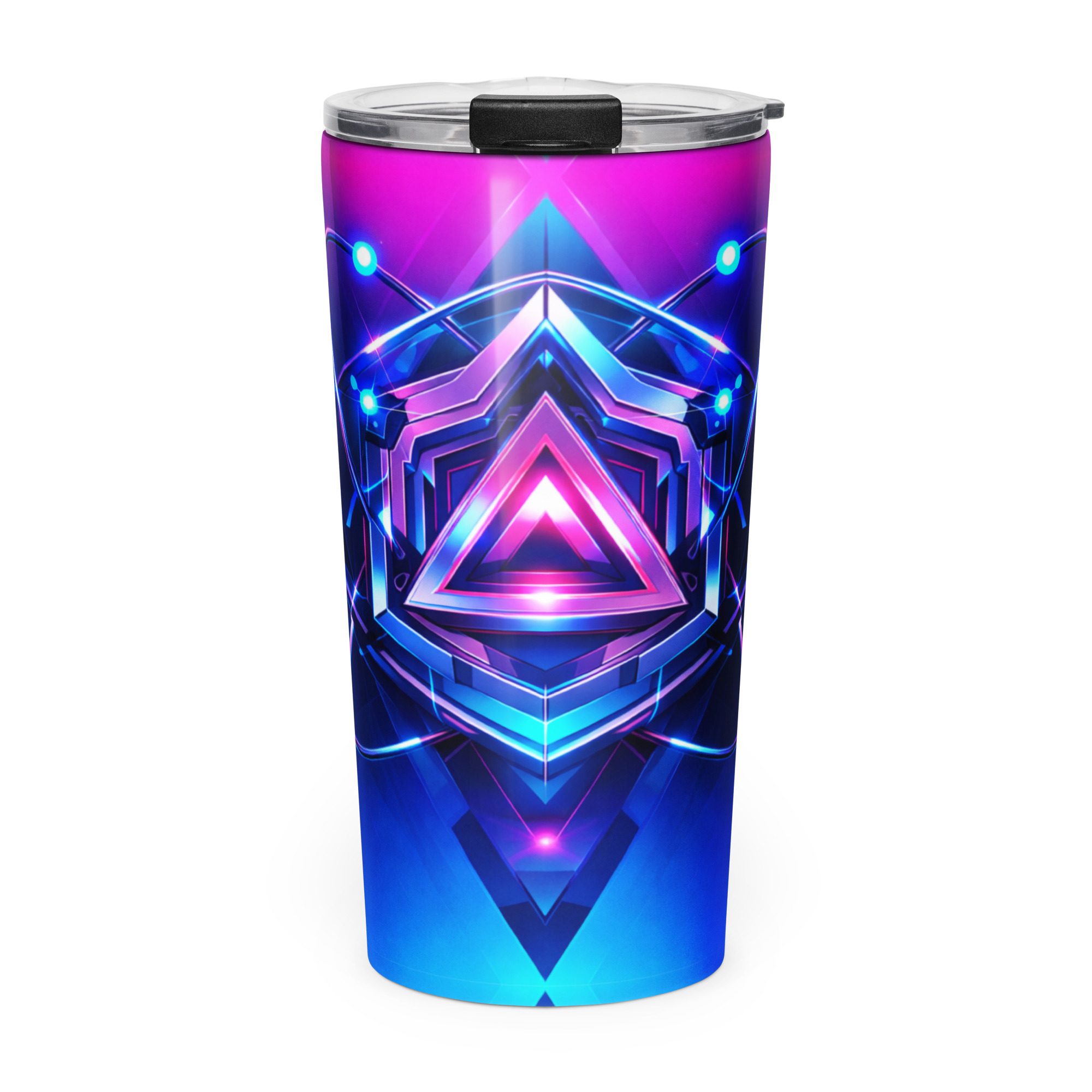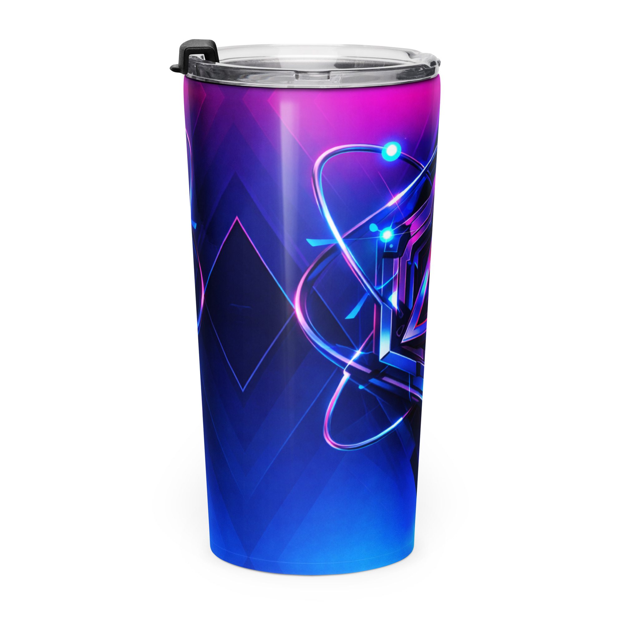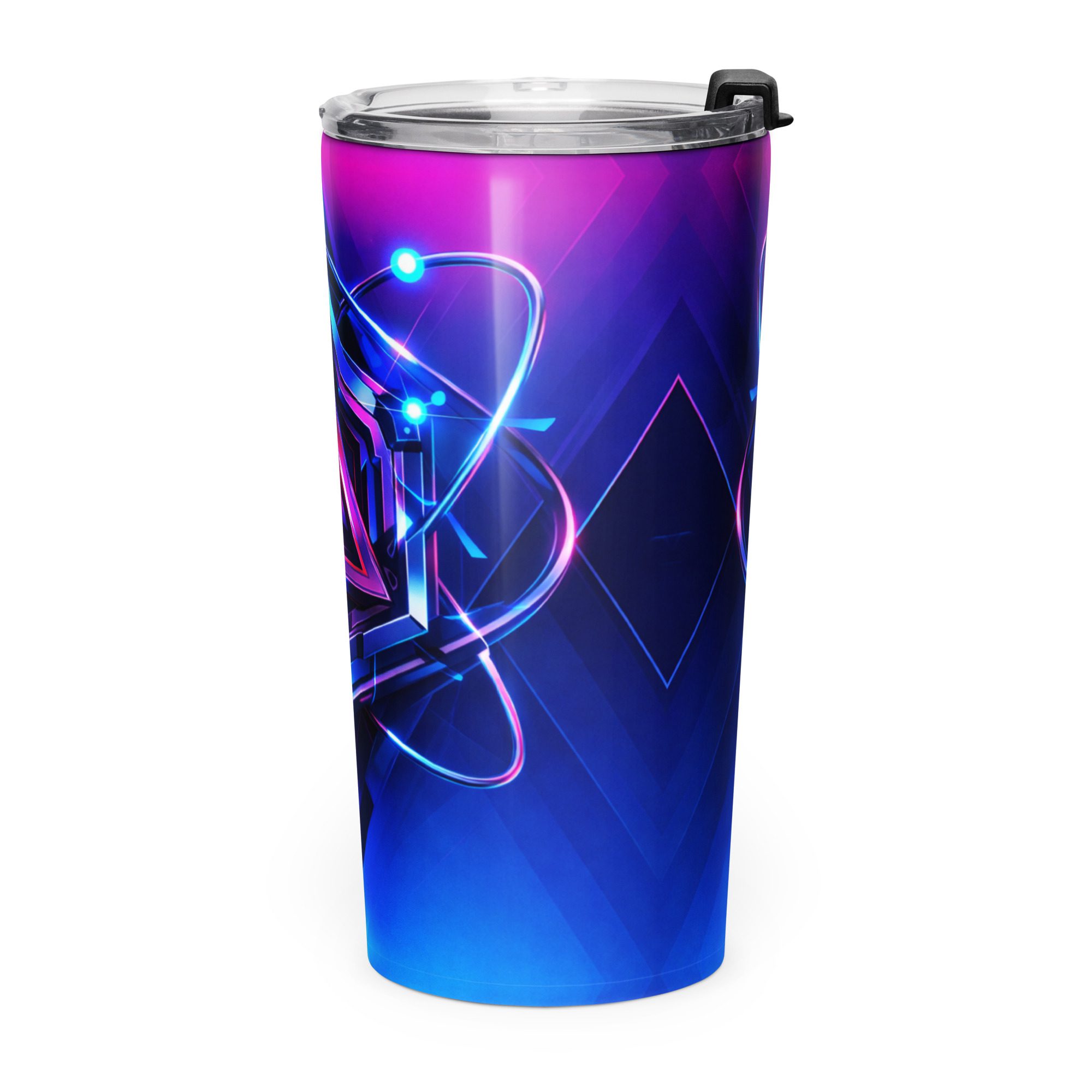 The Nova Reactor Stainless Steel Tumbler features a bold, glowing energy core design built from layered geometry, neon circuitry, and high-contrast cyberpunk color. It feels electric, focused, and intentional—like a portable power source designed for modern life.