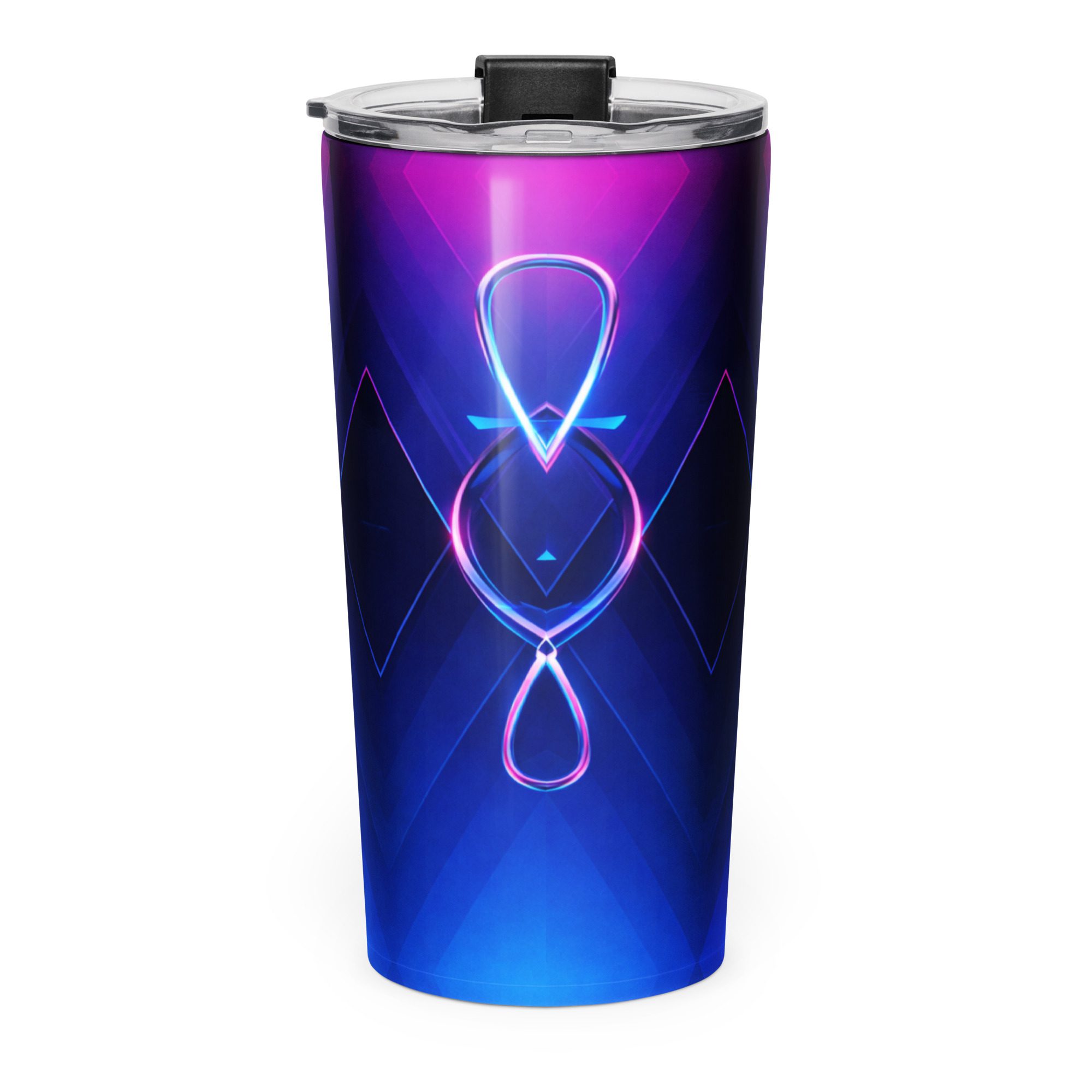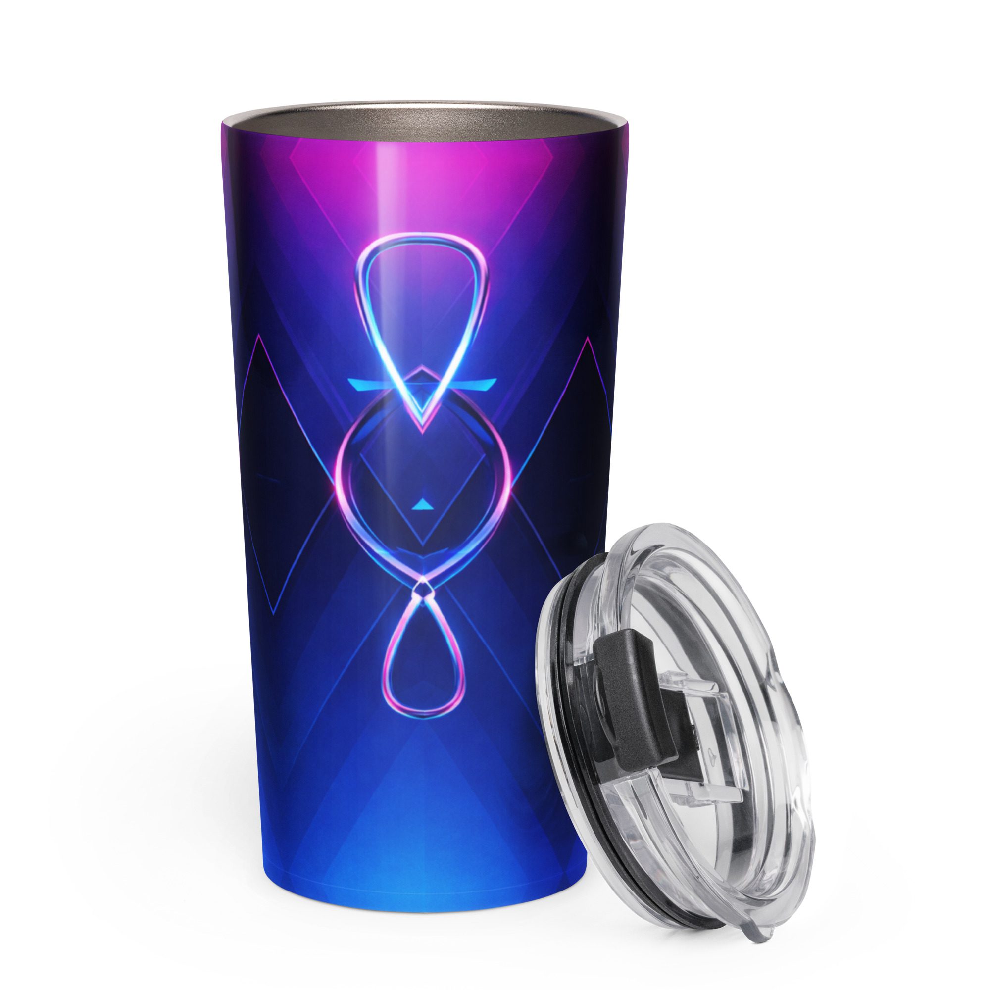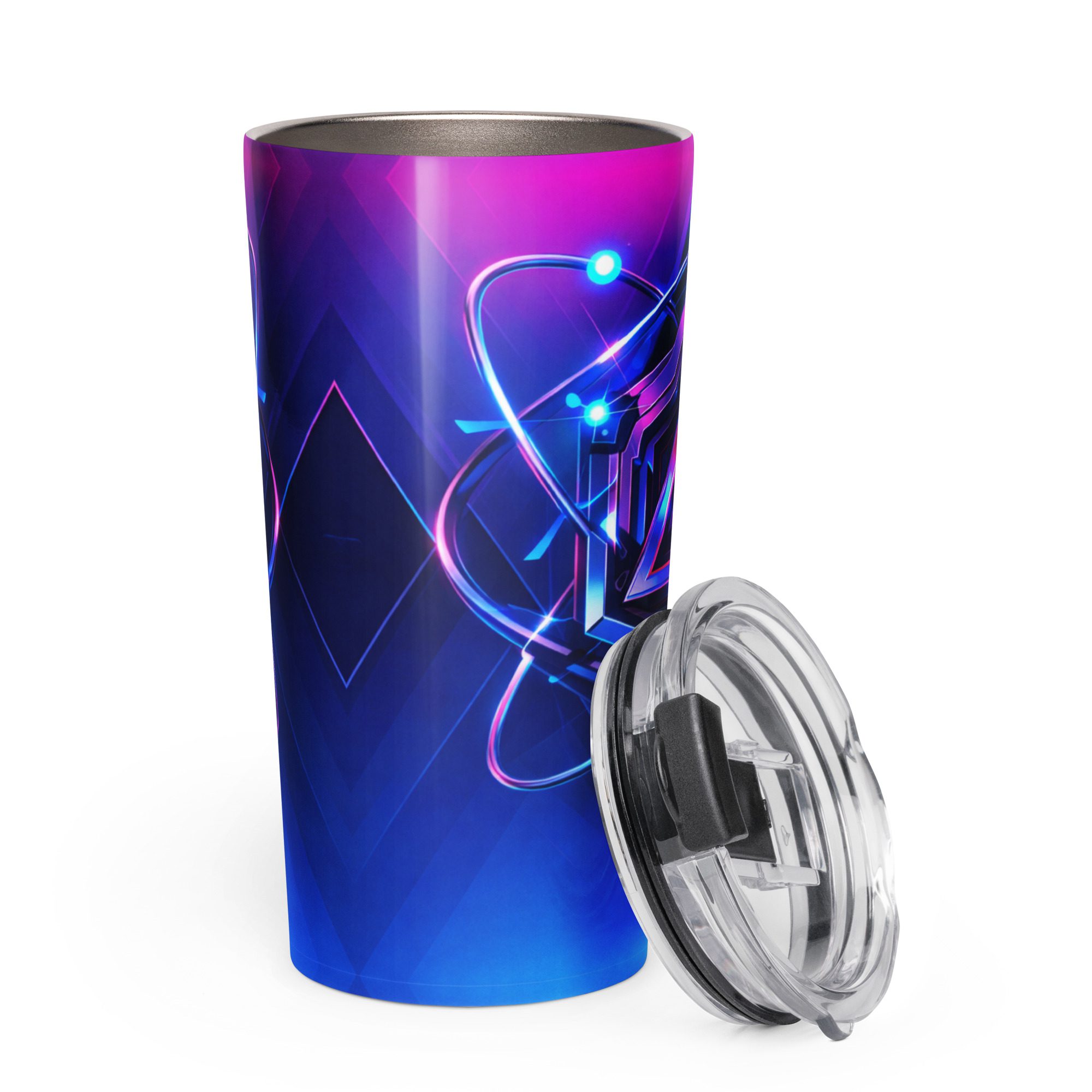 The Nova Reactor Stainless Steel Tumbler features a bold, glowing energy core design built from layered geometry, neon circuitry, and high-contrast cyberpunk color. It feels electric, focused, and intentional—like a portable power source designed for modern life.