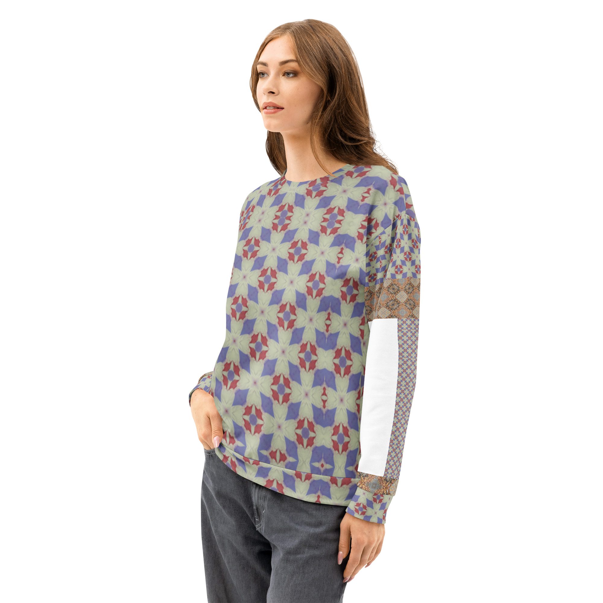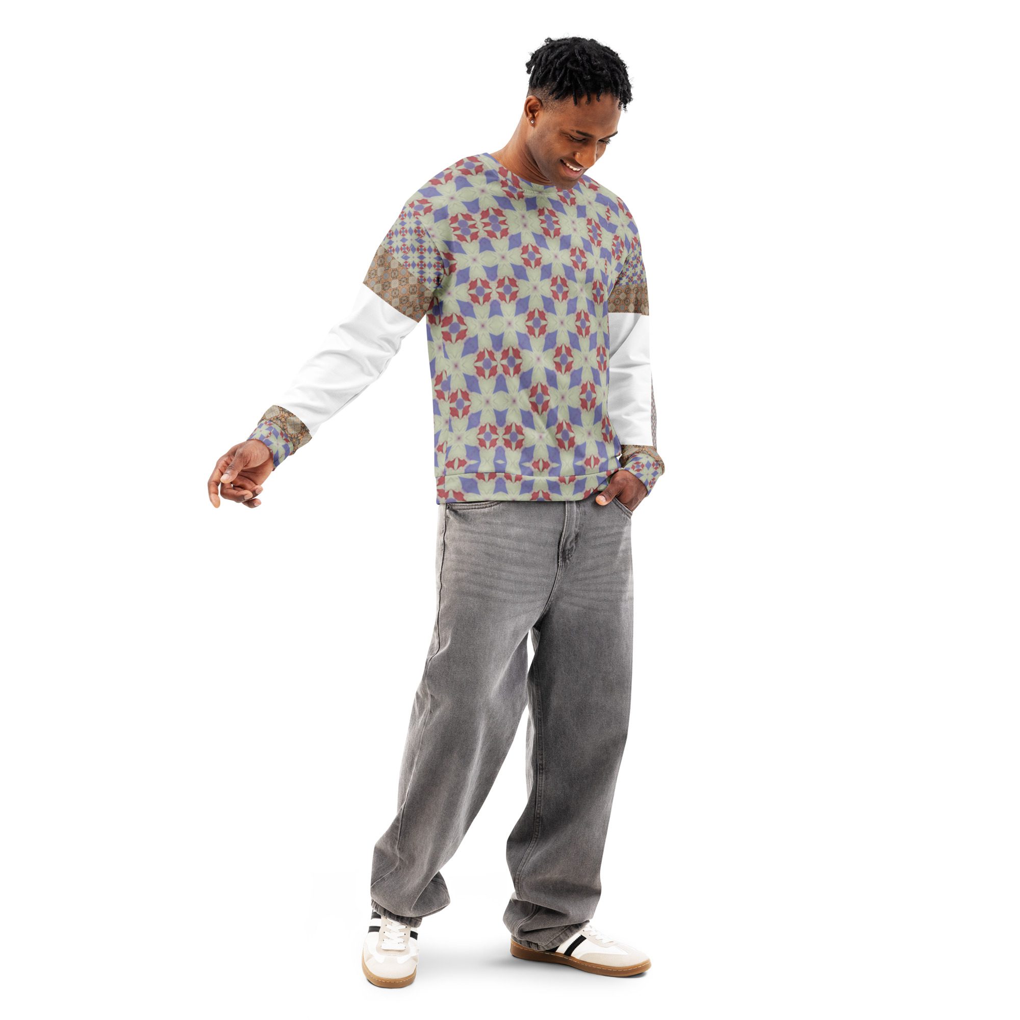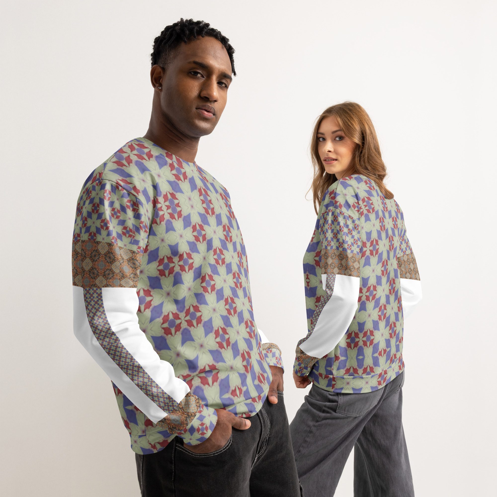 This recycled unisex cotton sweatshirt combines a comfortable everyday fit with artwork that feels fresh, modern, and subtly retro. The all-over print creates a seamless visual flow, while the cotton blend provides a smooth, breathable feel that holds up beautifully over time.