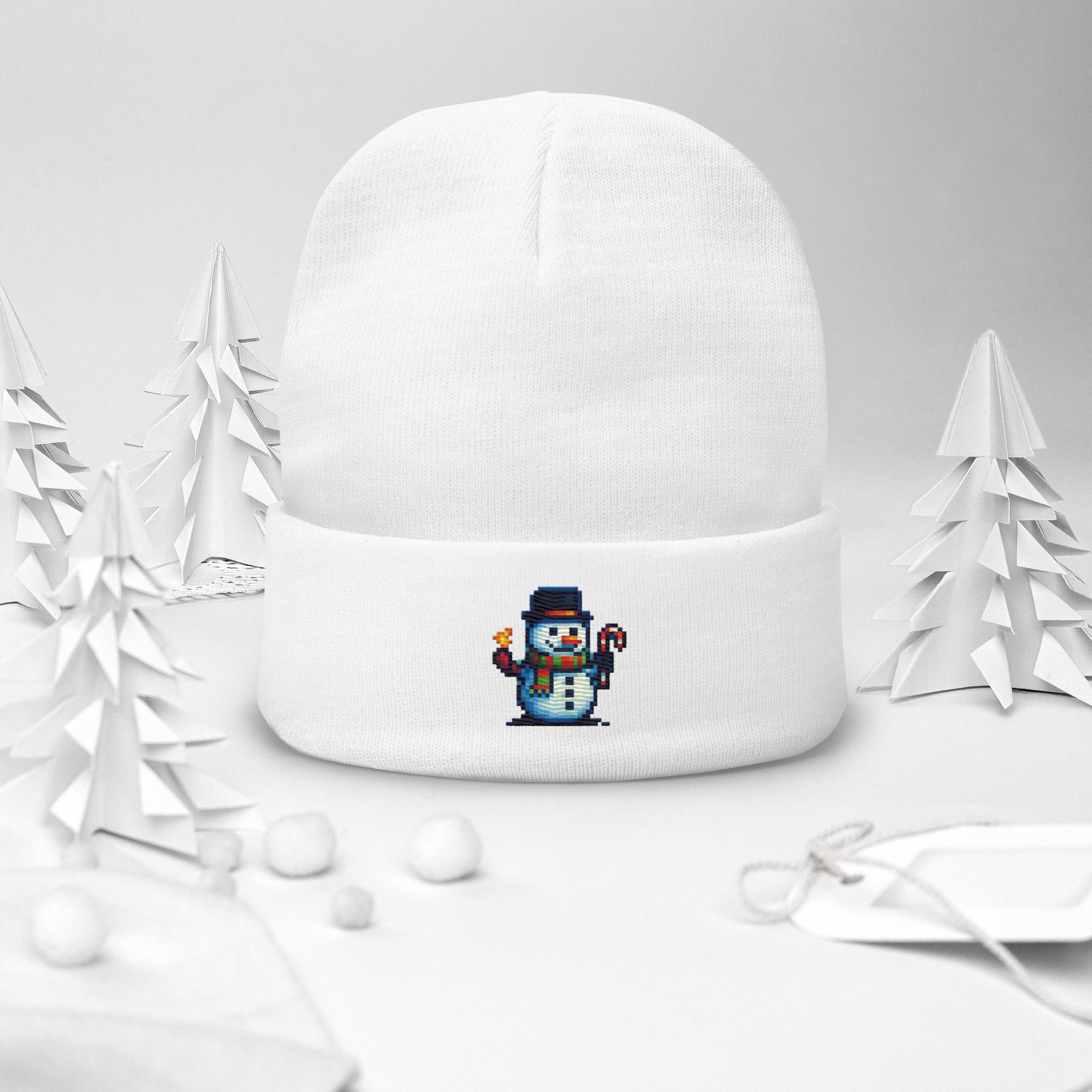 Level up your winter style with a beanie that’s as cool as it is cozy! Our Pixel Snowman Embroidered Beanie features a retro-inspired snowman—complete with top hat, scarf, and candy cane—stitched with vibrant detail. Whether you’re braving the cold or just adding some gamer flair to your look, this beanie has you covered (literally).
