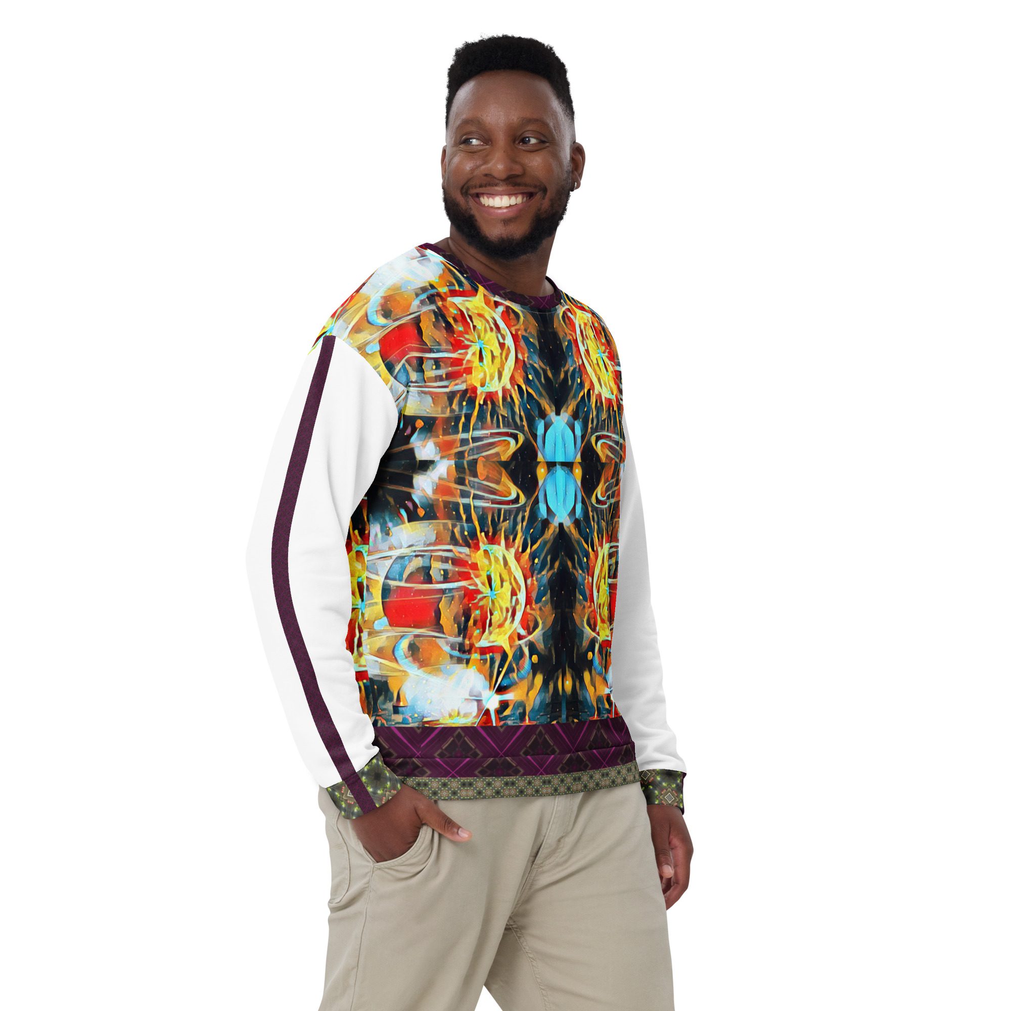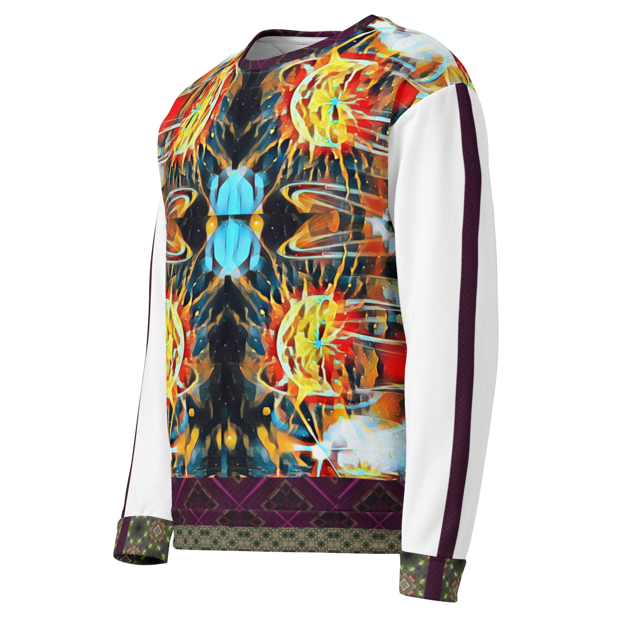 Designed by Jaysen Mansfield, Quantum Heatwave erupts with explosive cosmic energy — a mirrored abstract of molten light, shifting color, and universe-level intensity. This sustainable recycled cotton sweatshirt pairs all-day comfort with bold, high-impact artwork that feels alive with motion. Perfect for anyone who wants their style to radiate heat, color, and interstellar attitude.