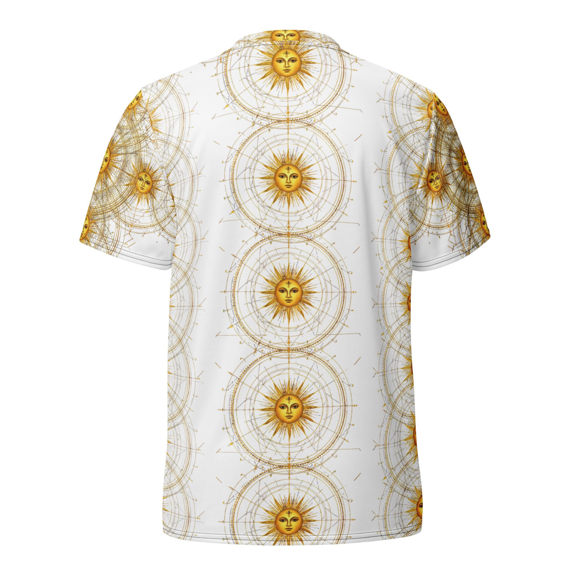 Solar mandala jersey featuring radiant golden sacred geometry and celestial symmetry. Elevated spiritual streetwear with a clean, powerful aesthetic.