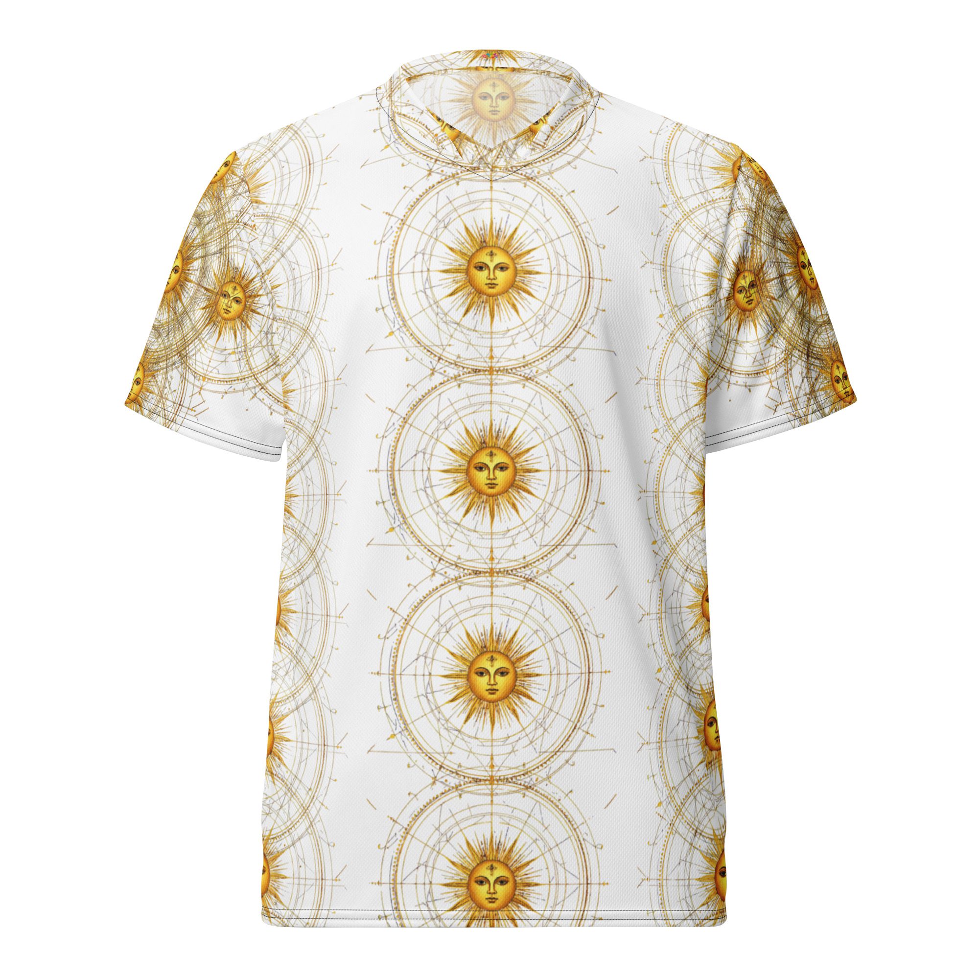Solar Halo Core — Radiant Sun Mandala in Golden Sacred Geometry Streetwear | Celestial Frequency Aesthetic | Recycled Unisex Sports Jersey — Original Artwork By Jaysen Mansfield