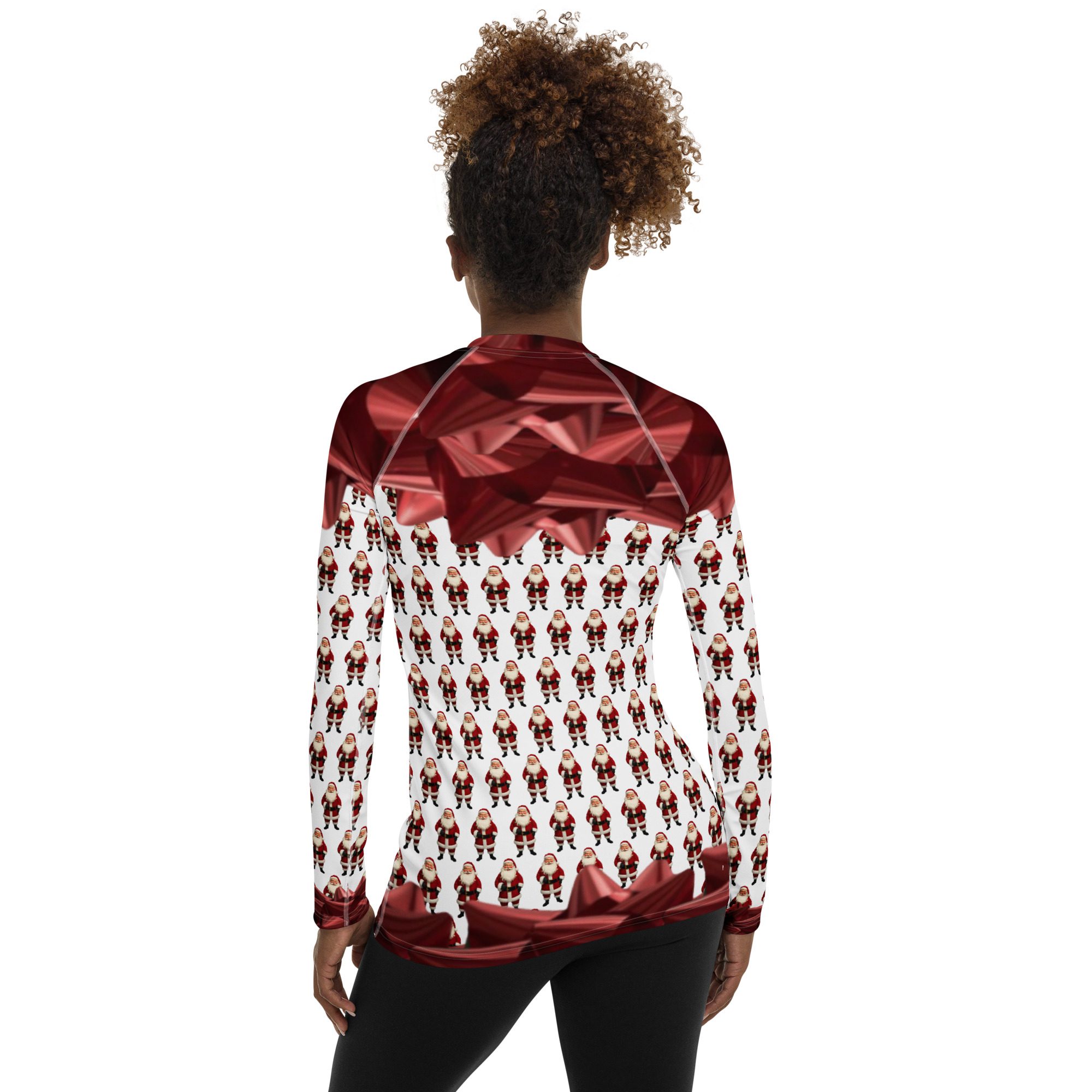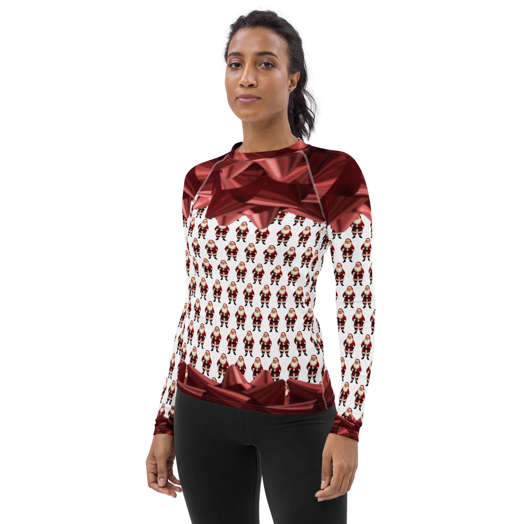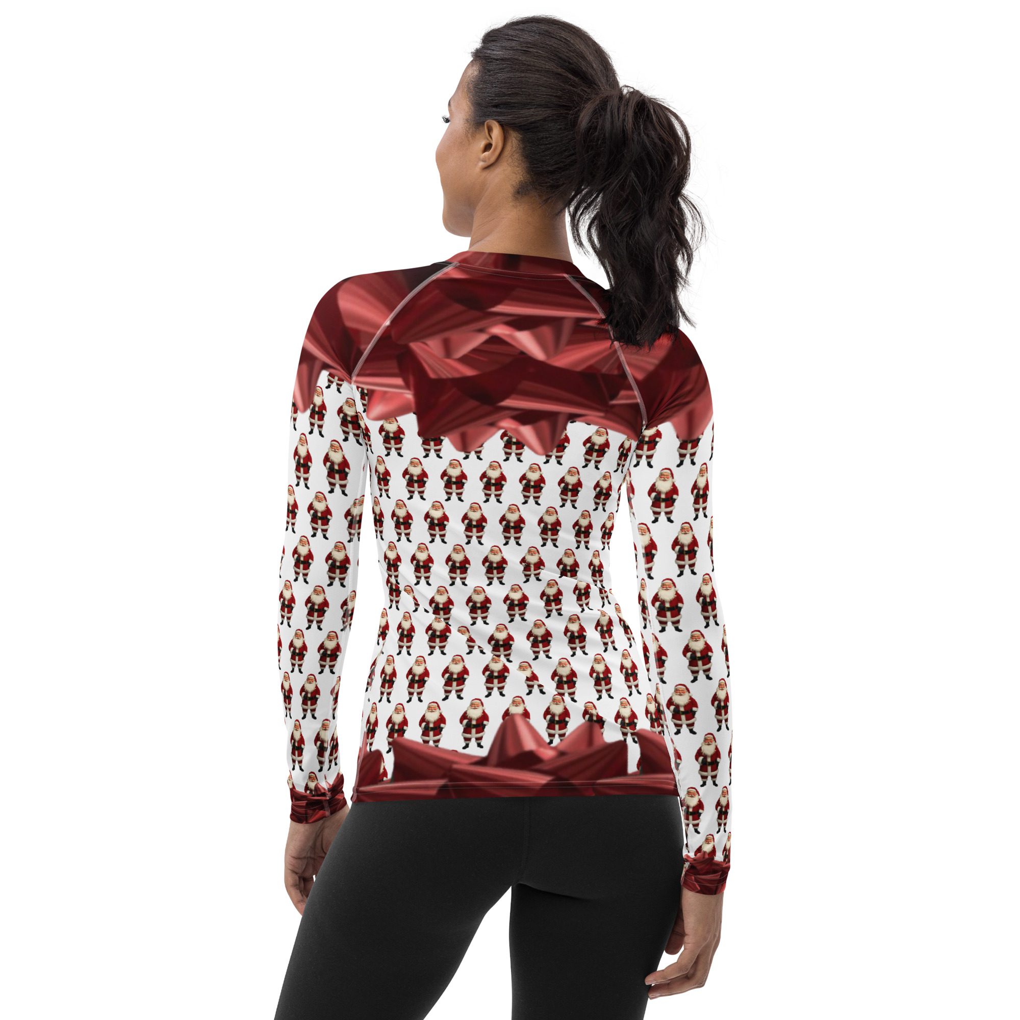 Stay merry and in motion with Santa’s Squad Ugly Christmas Rash Guard. An original festive artwork by Jaysen Mansfield. This vibrant holiday rash guard combines comfort and cheer with a playful pattern of classic Santas surrounded by deep red gift bows and emerald accents.