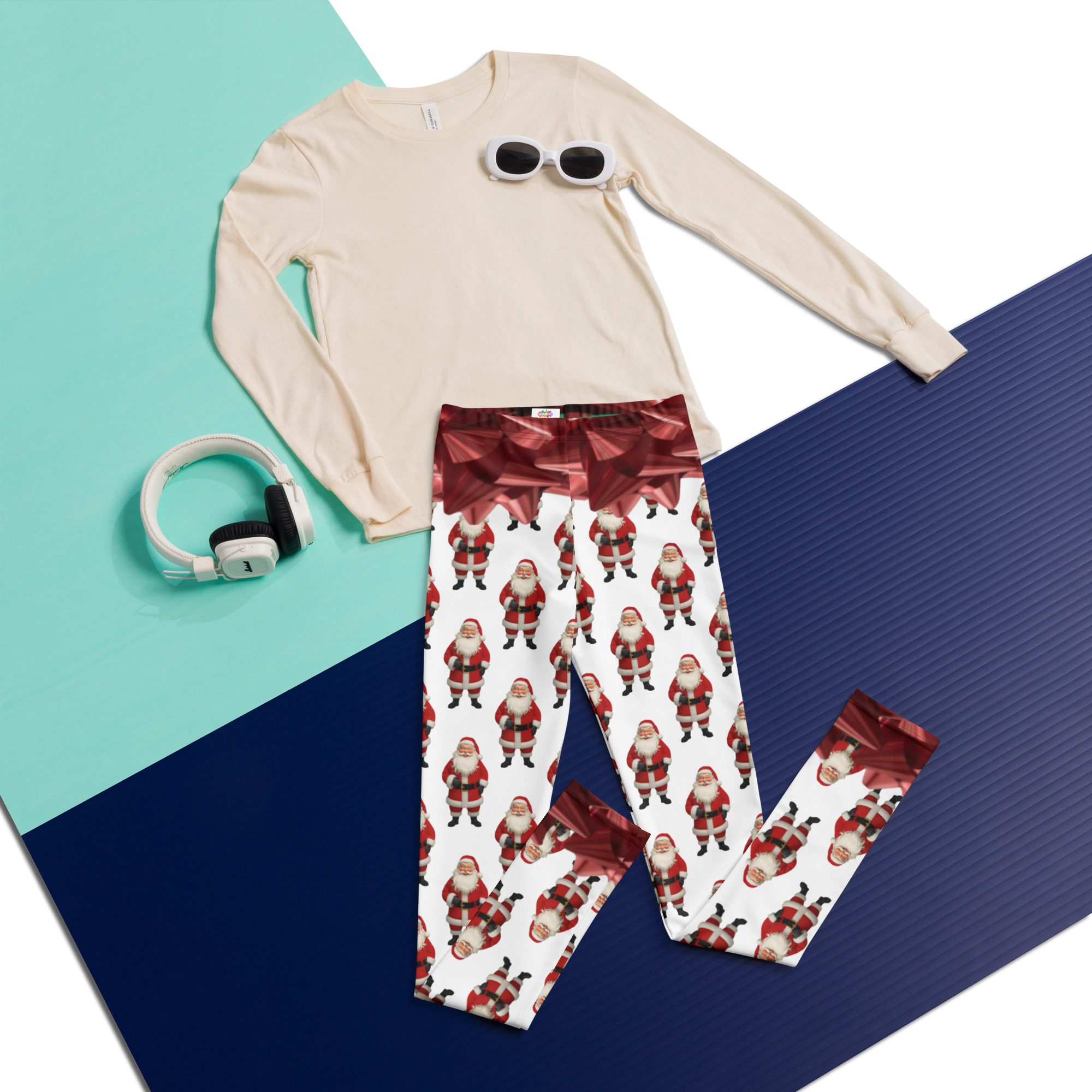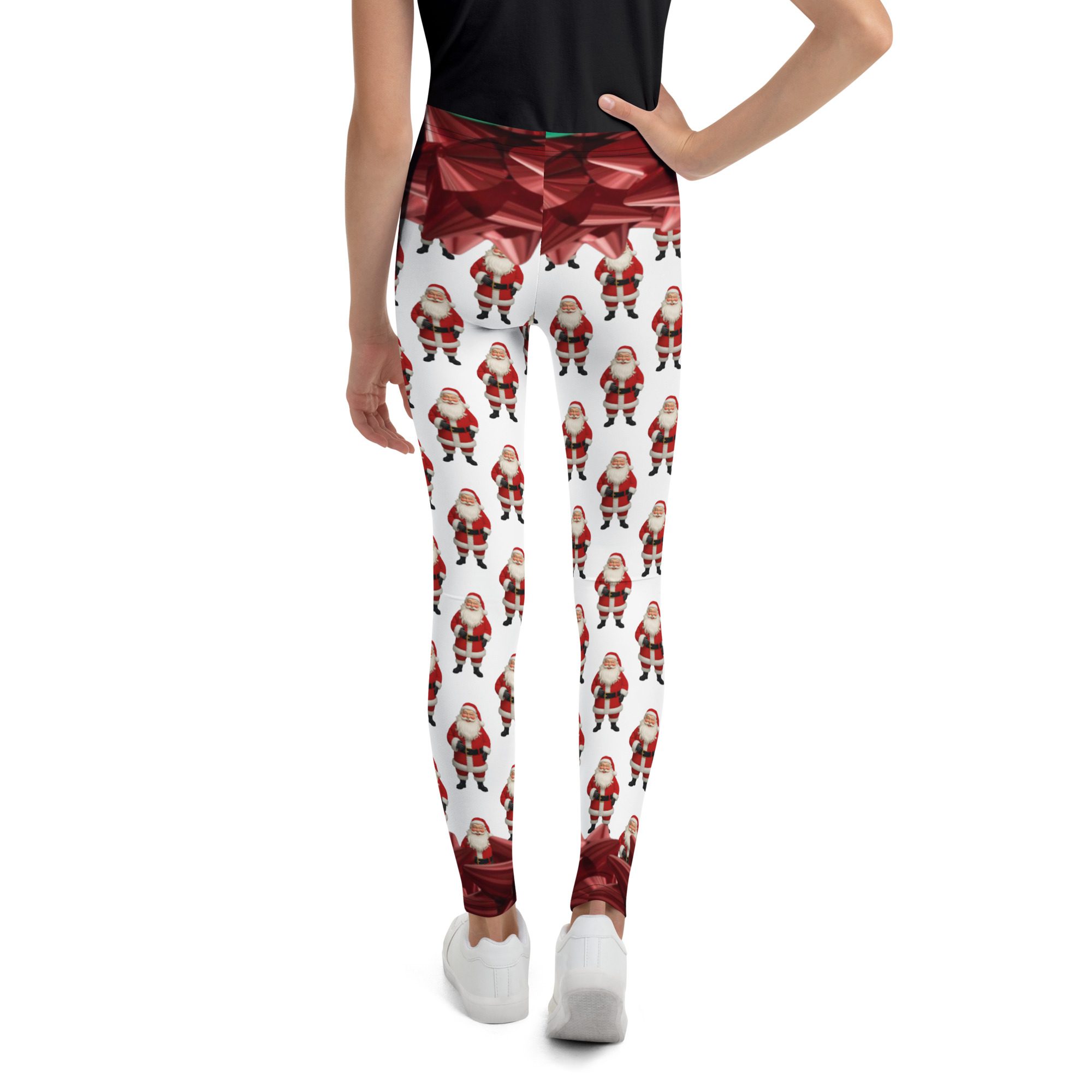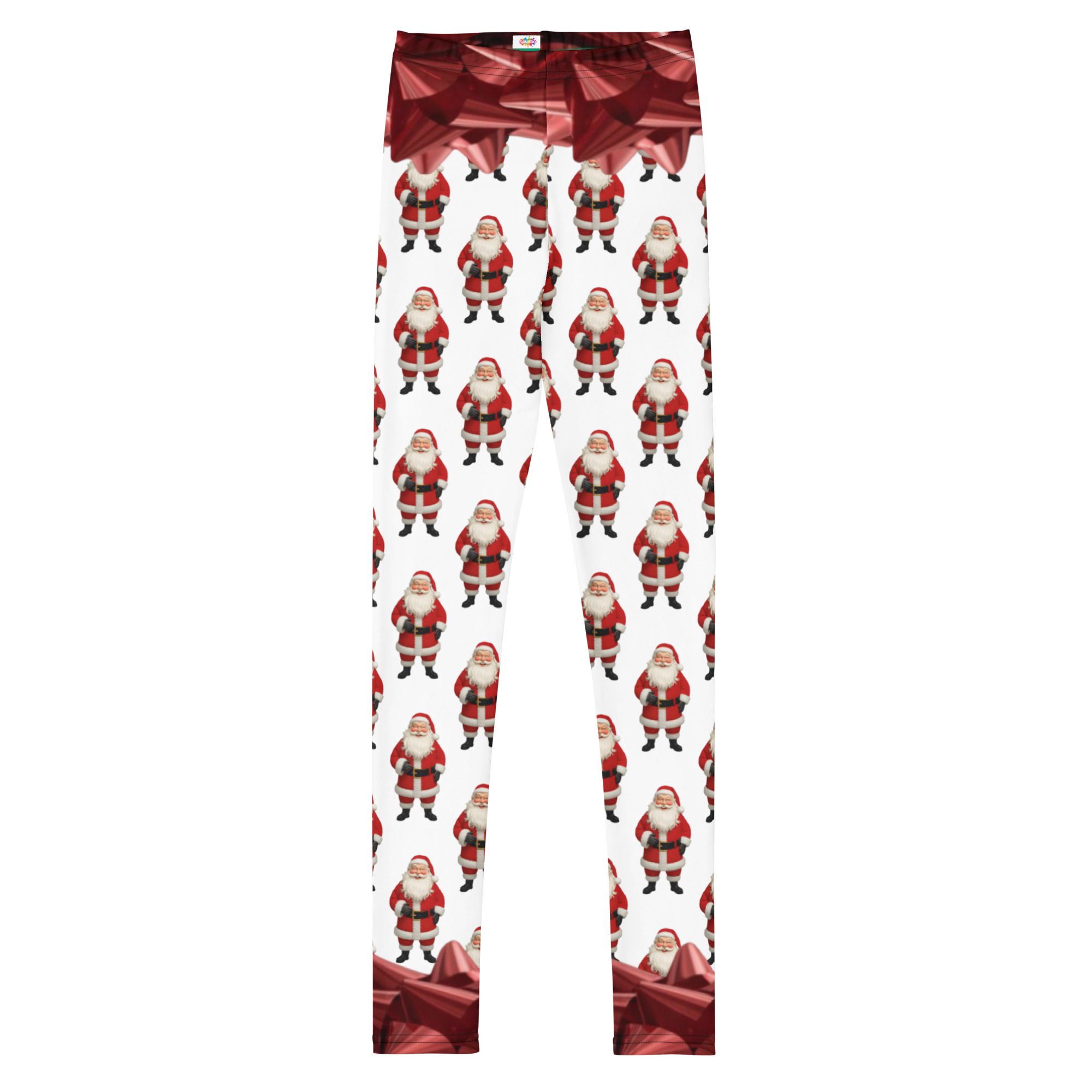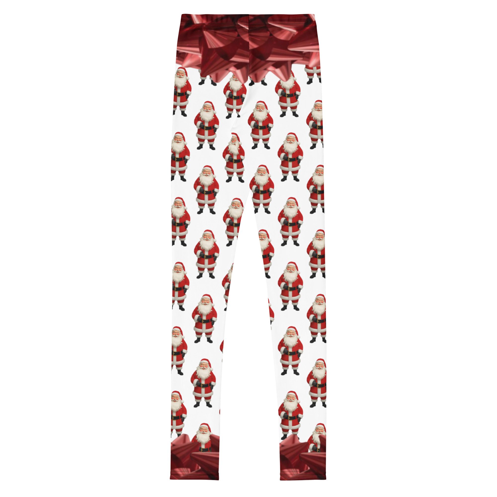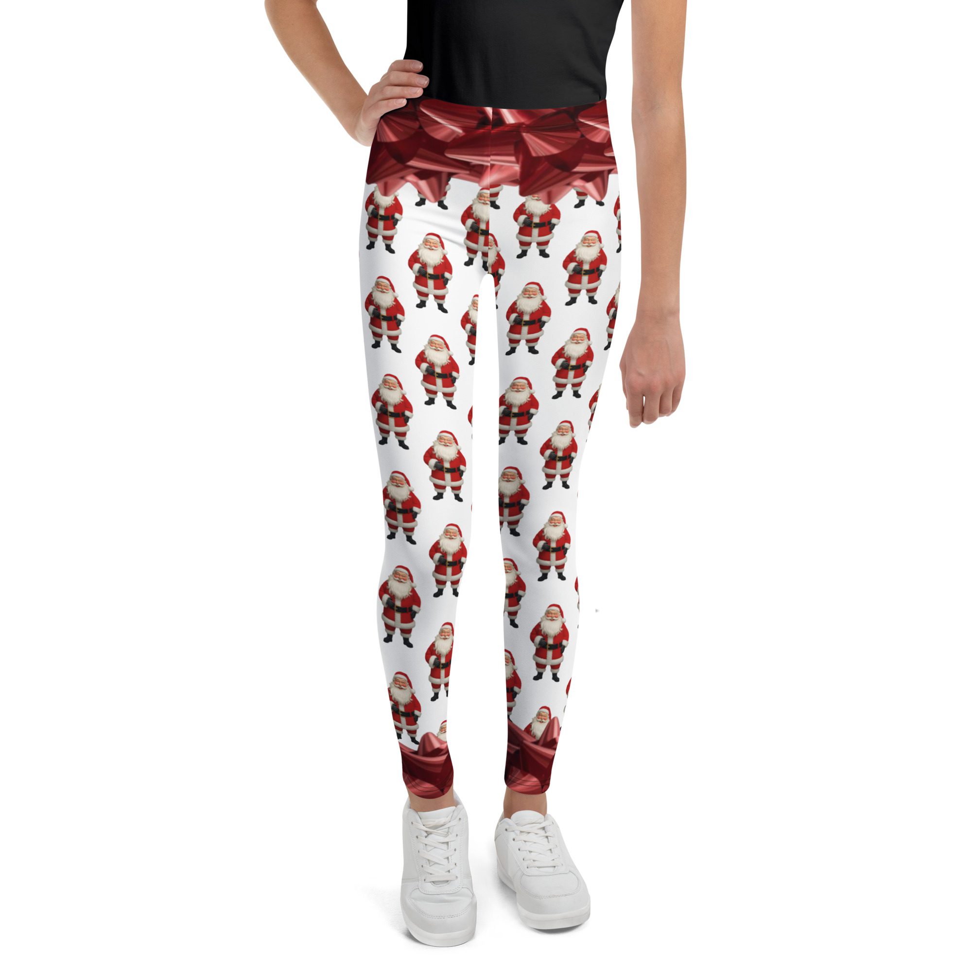 Make this holiday season extra merry with Santa’s Squad, a festive all-over print design by Jaysen Mansfield. These fun and colorful youth leggings are packed with cheerful Santas and shiny red bows, bringing instant Christmas joy to every outfit.