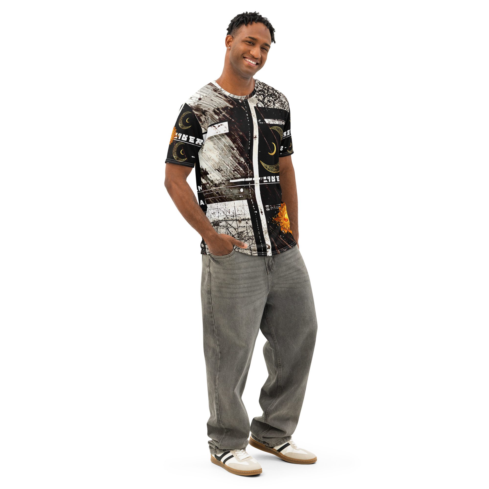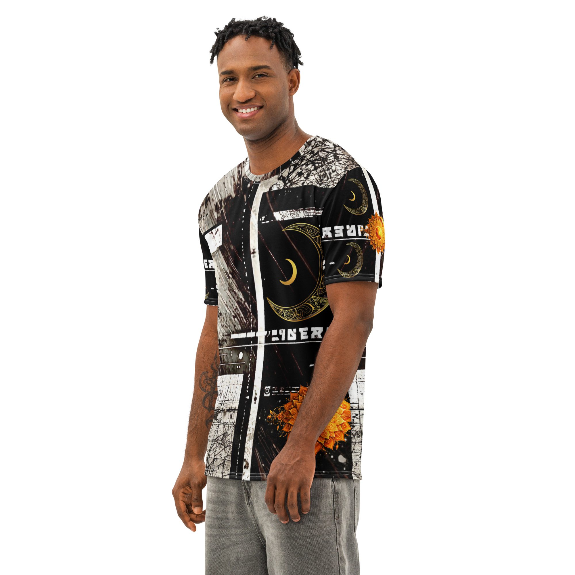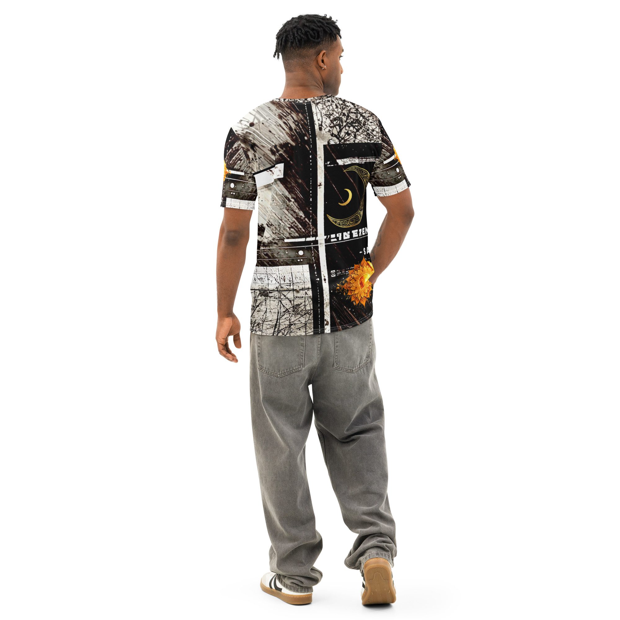 It feels cosmic, bold, and aligned — centered on a solar eclipse sigil where sun and moon energy merge into one balanced force. The design naturally pulls from zodiac-inspired visuals, sacred geometry influence, and modern streetwear styling, creating a look that moves between spiritual fashion, gothic aesthetic, and contemporary streetwear culture.