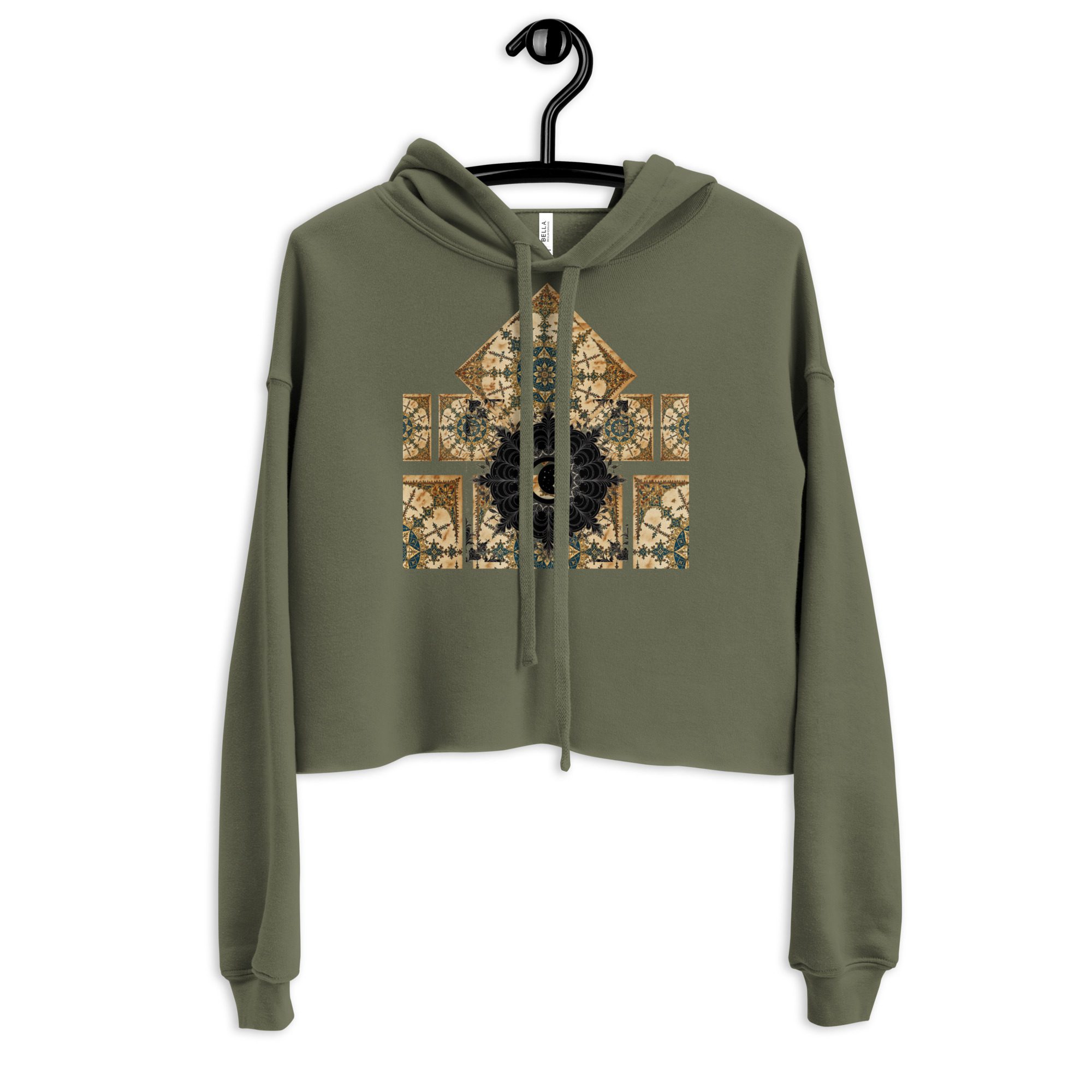 The cropped hoodie silhouette modernizes the mood, balancing dark academia, gothcore, and editorial streetwear. It’s soft-spoken but unmistakable — a statement for those who prefer symbolism over slogans.