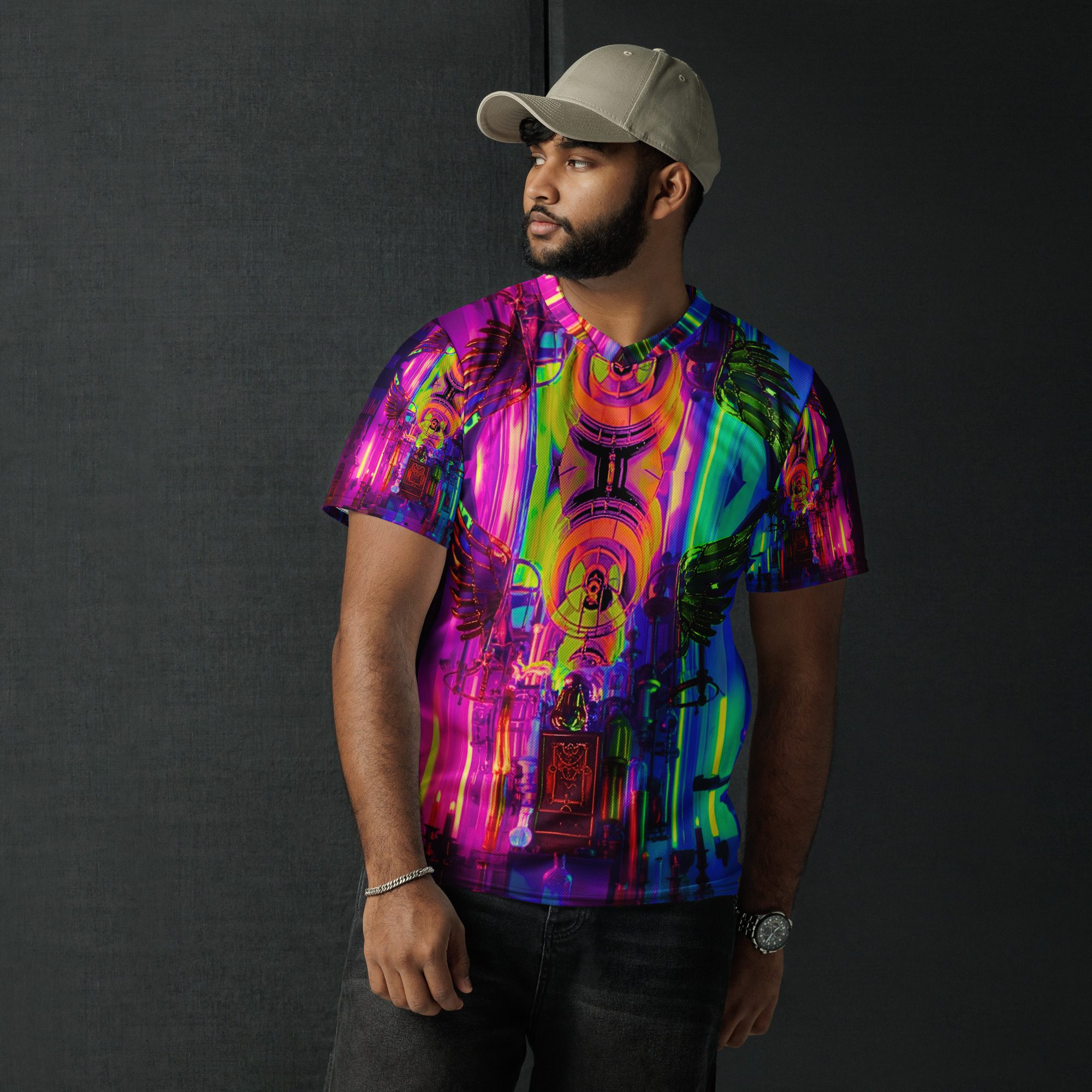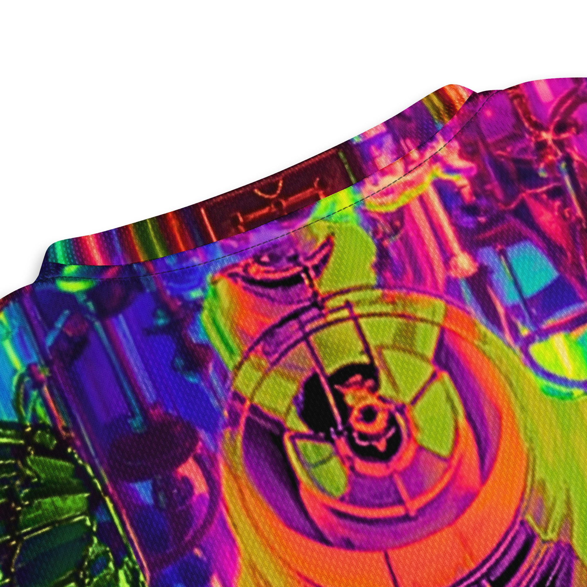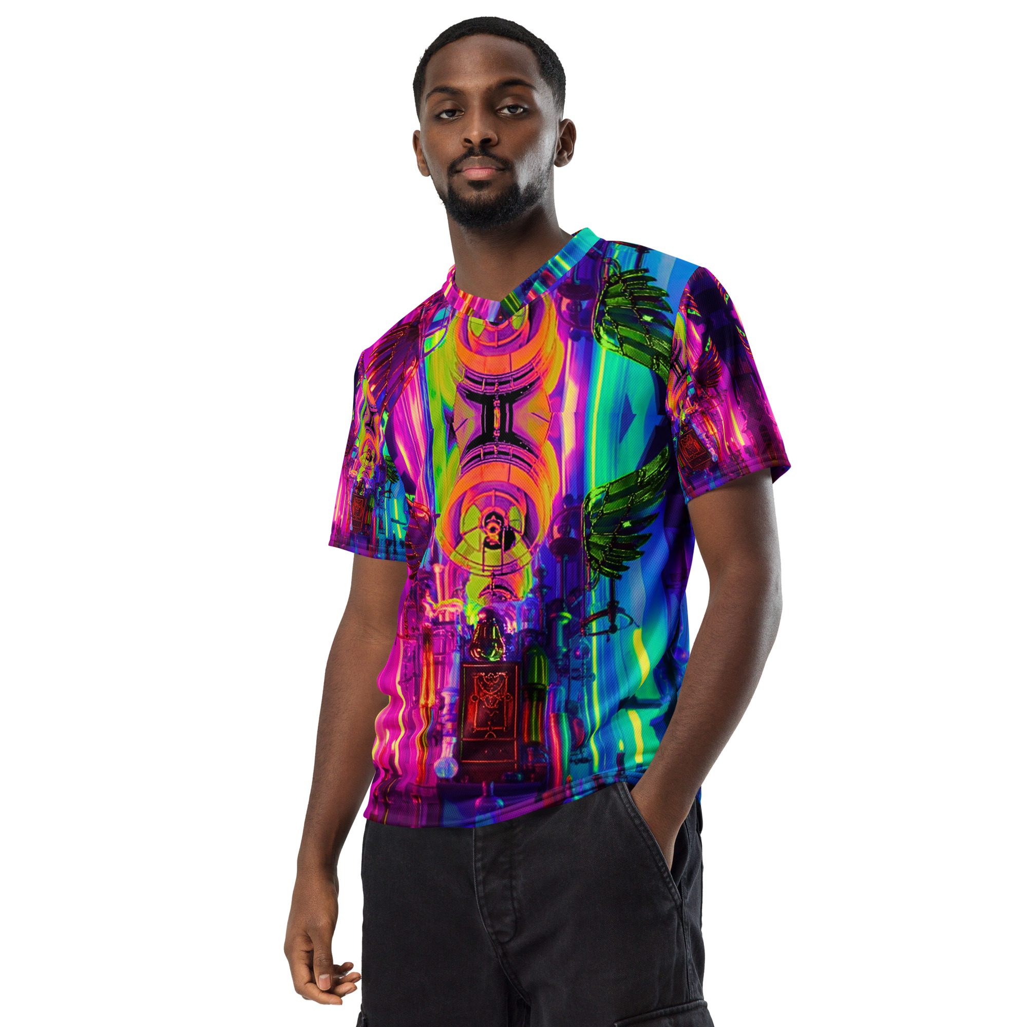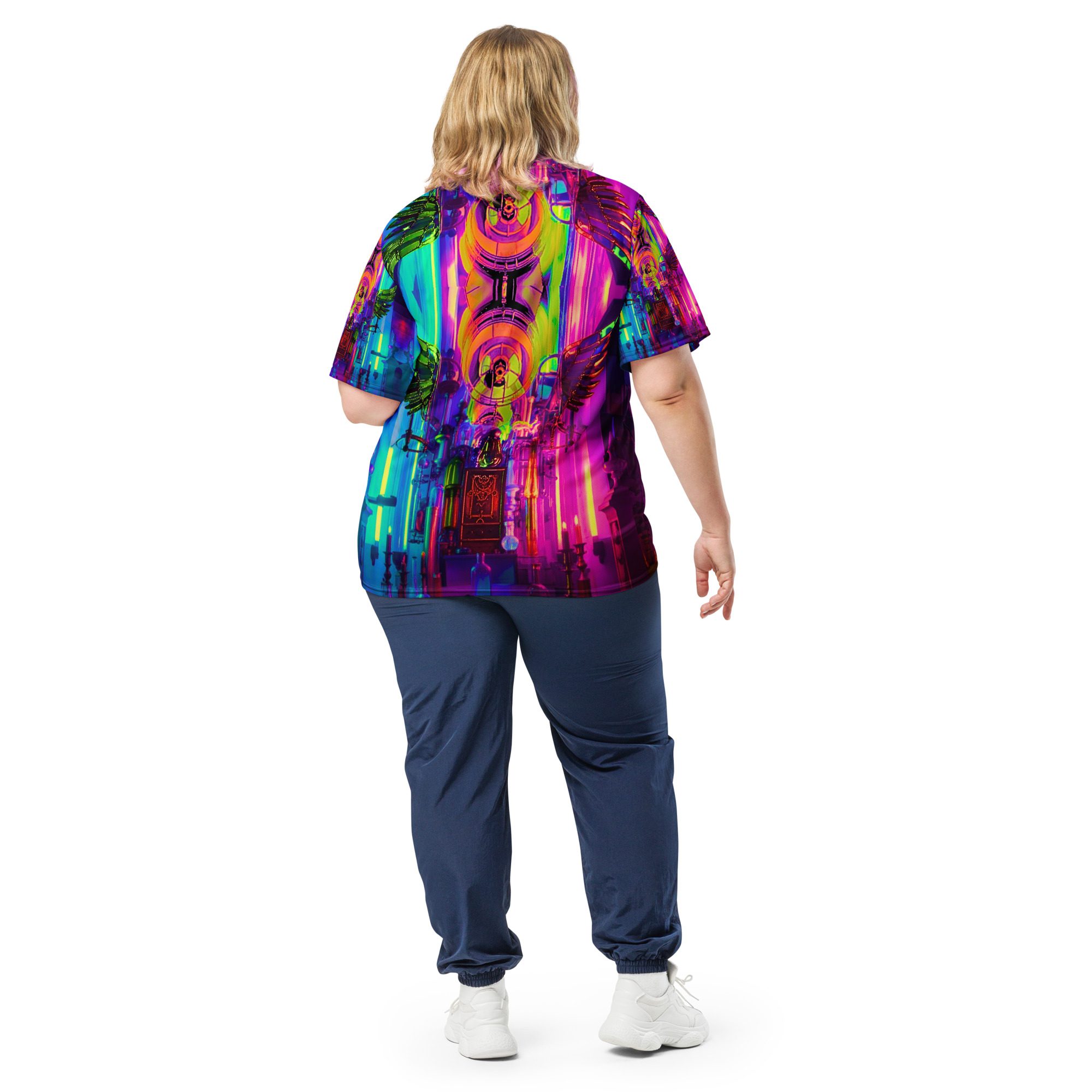 Designed for those who move through the world as quiet observers and modern scholars, this all-over print jersey evokes secret societies, lost manuscripts, hidden libraries, and rituals preserved beneath stained glass ceilings. The glowing spectrum reads like encrypted knowledge—half spiritual, half scholarly—making it a powerful statement piece for collectors of dark academia fashion, gothcore streetwear, occult-inspired apparel, and high-art unisex clothing.