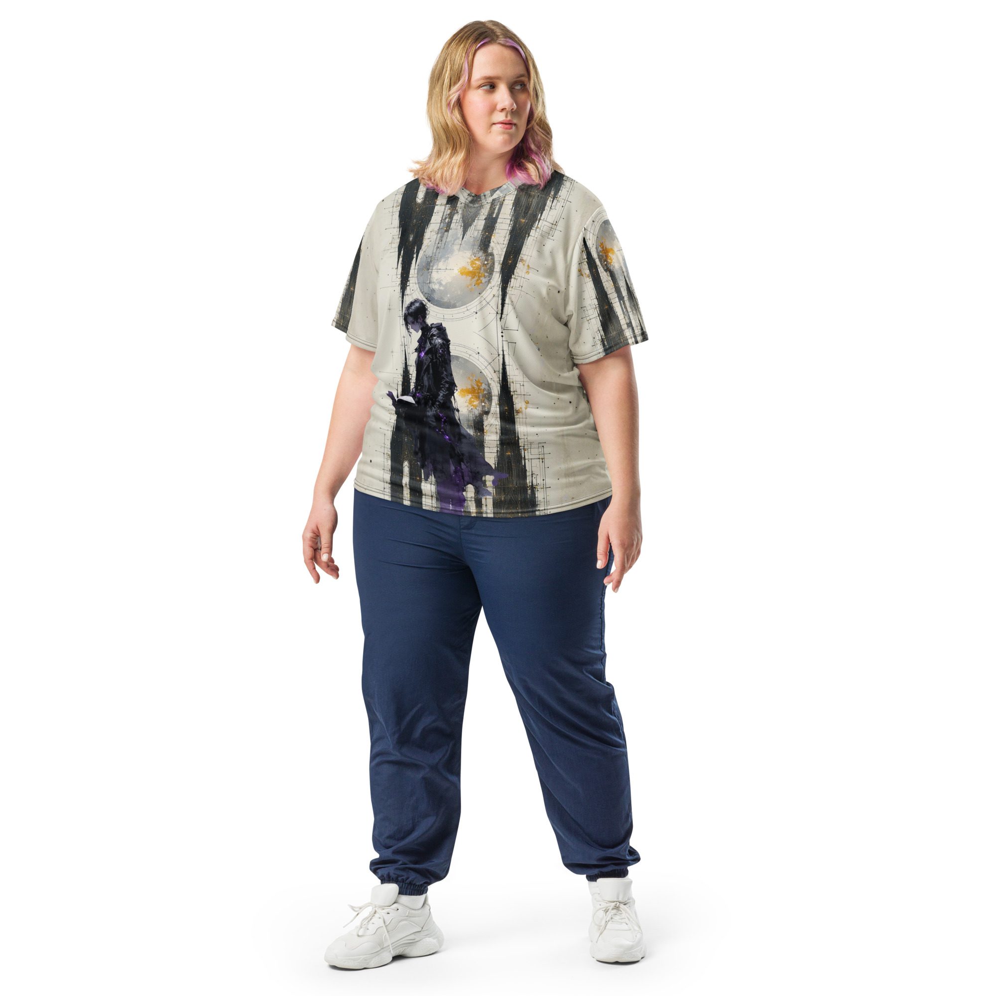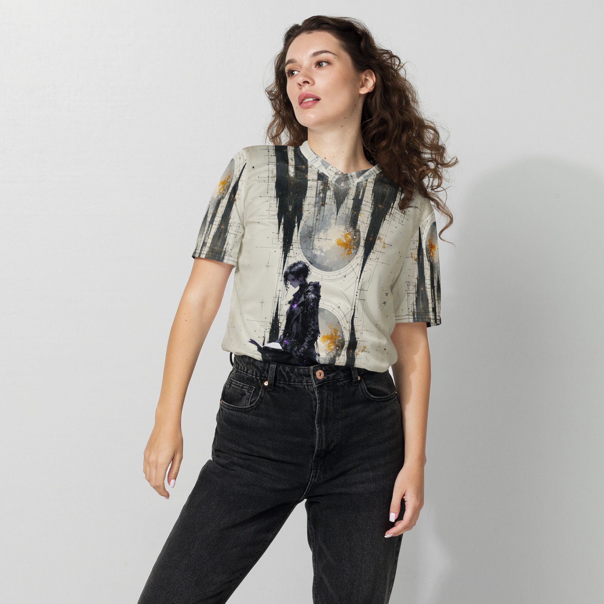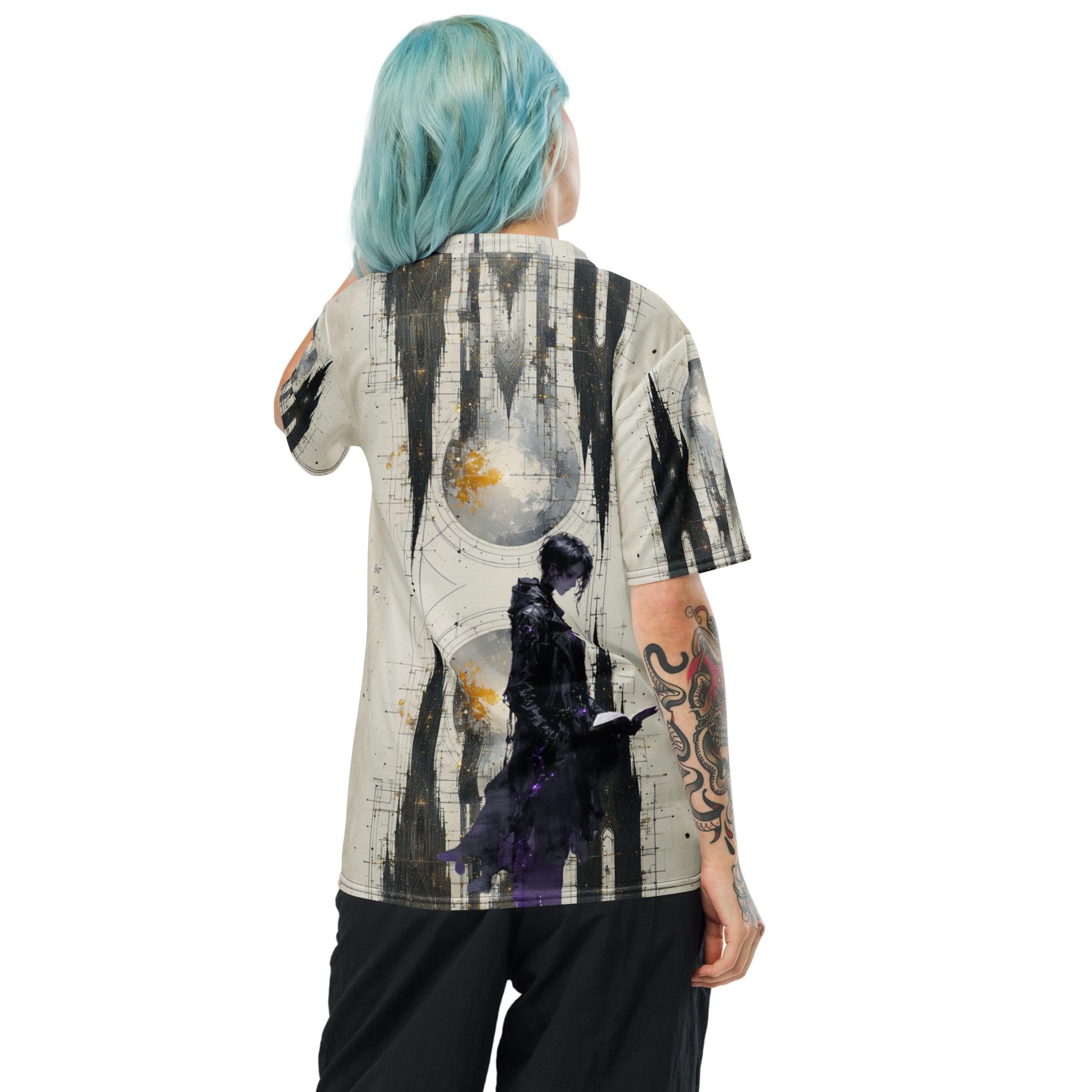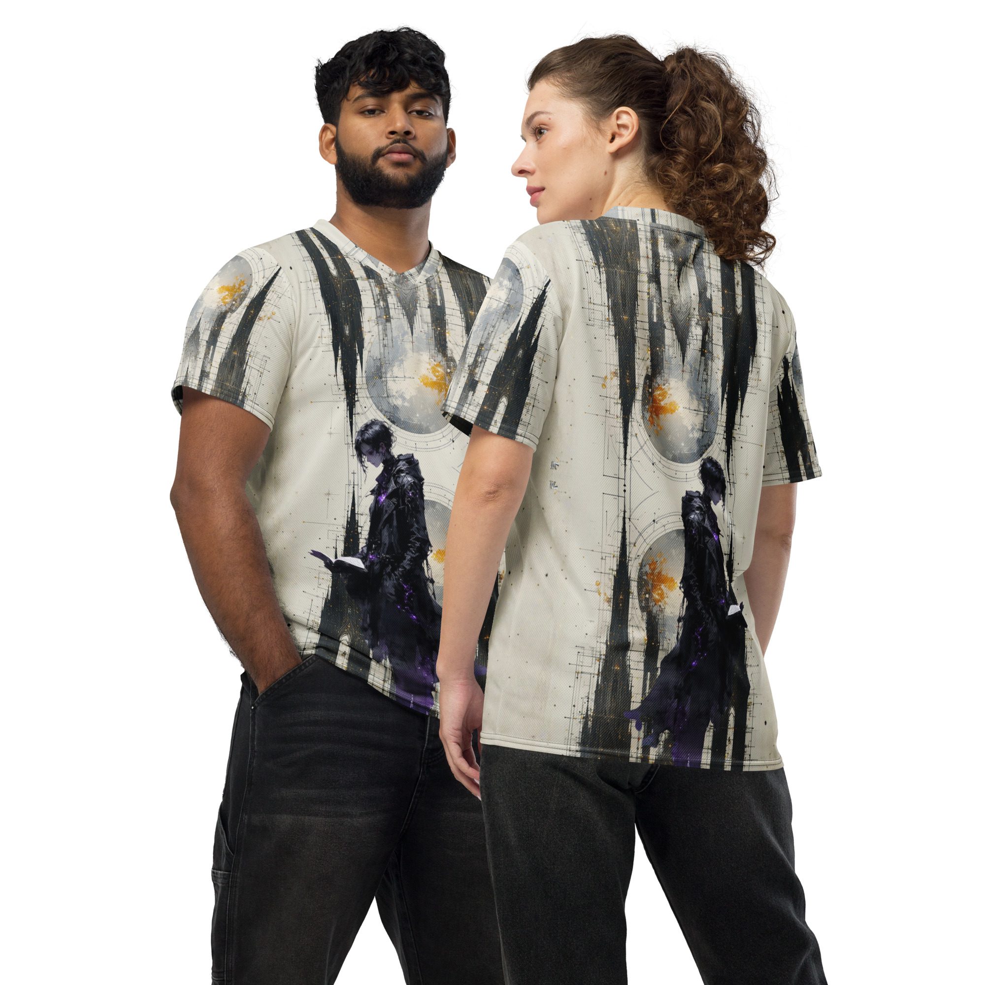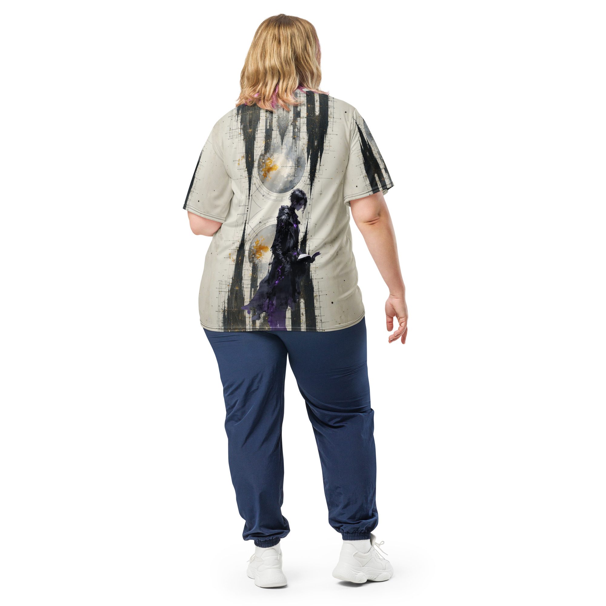 This recycled unisex sports jersey delivers breathable comfort with emotional depth. Designed for movement and versatility, it wears effortlessly on its own or layered beneath jackets, becoming a subtle statement piece rather than a loud declaration.