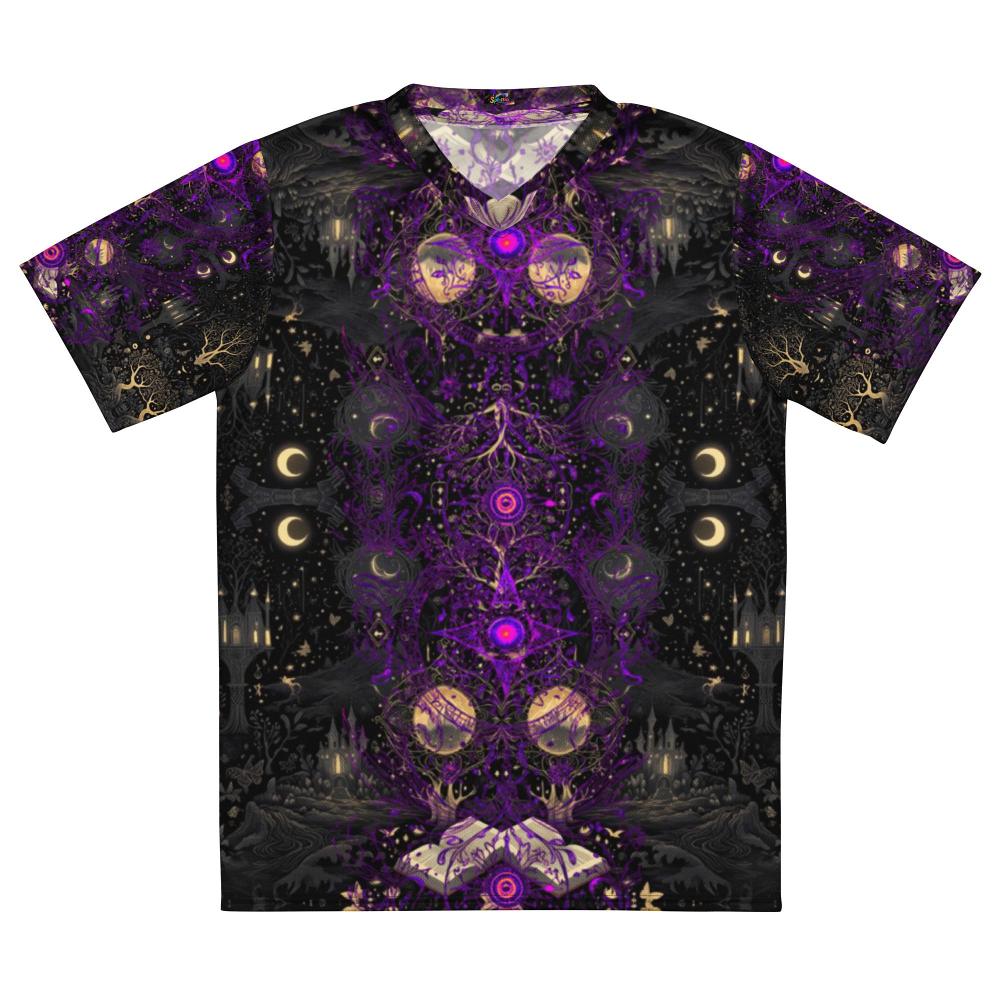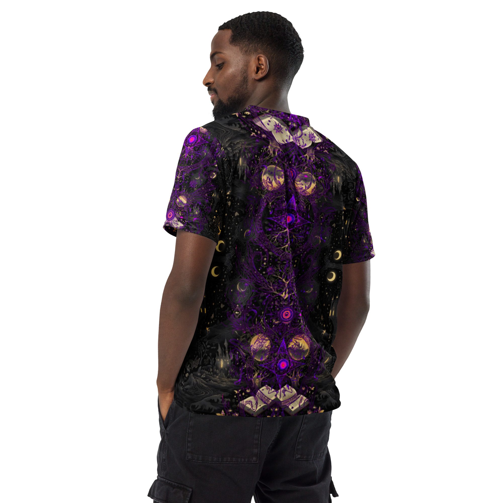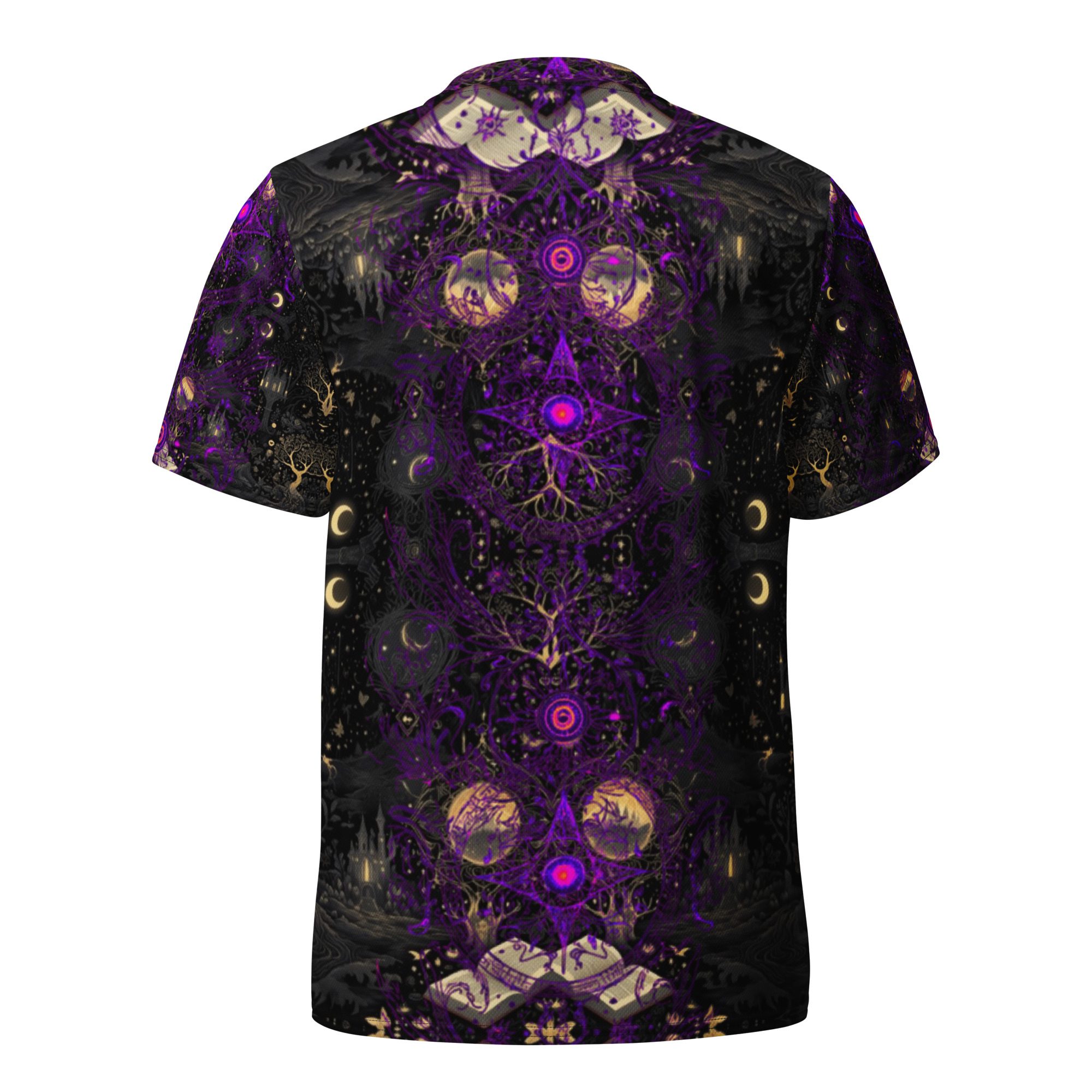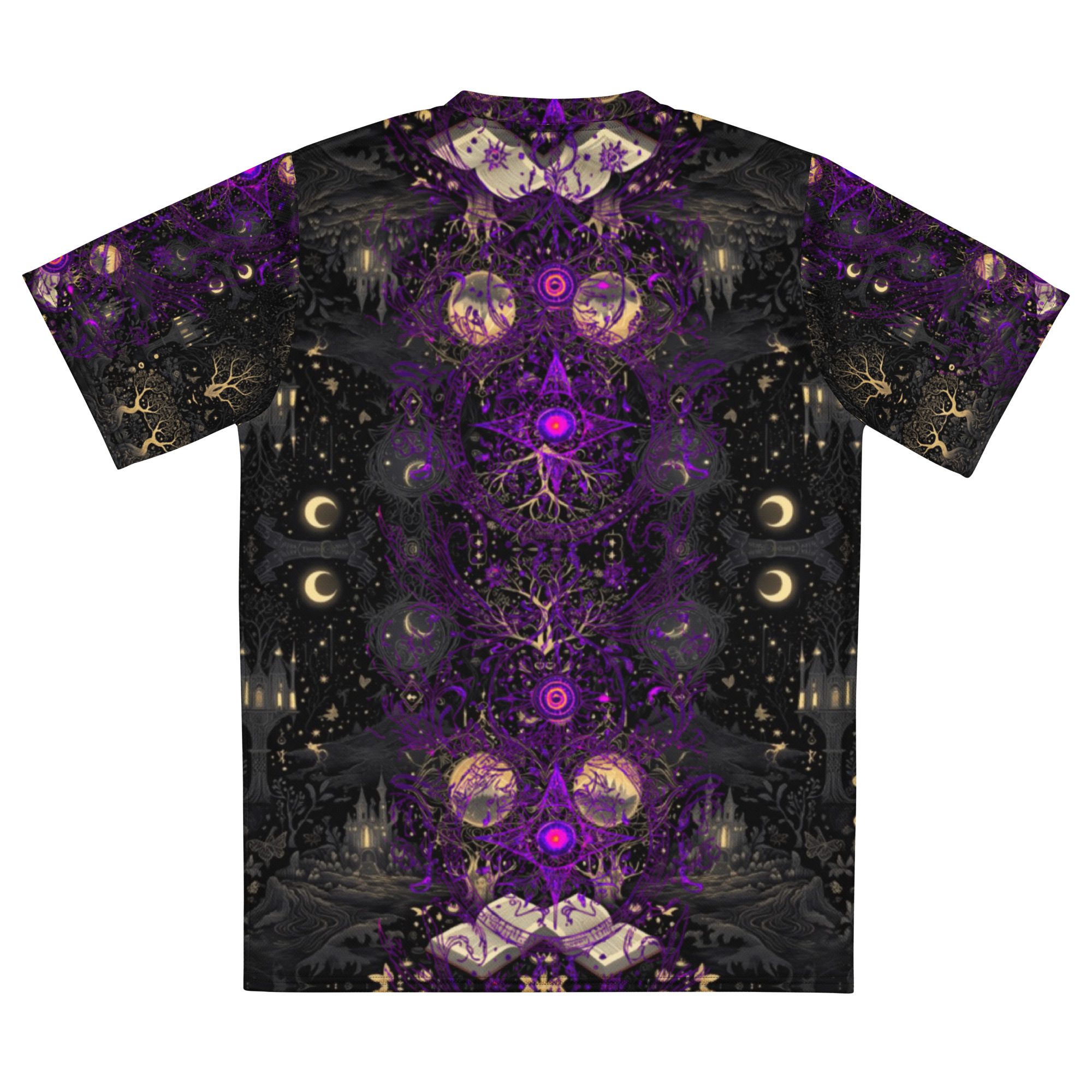 Designed to feel like a lost manuscript translated into wearable art, this all-over print jersey carries the energy of late-night study halls, candlelit rituals, stargazing scholars, and ink-stained pages. The amethyst and black palette evokes mysticism, intellect, and quiet power, making it ideal for those who dress with intention rather than trend-chasing.