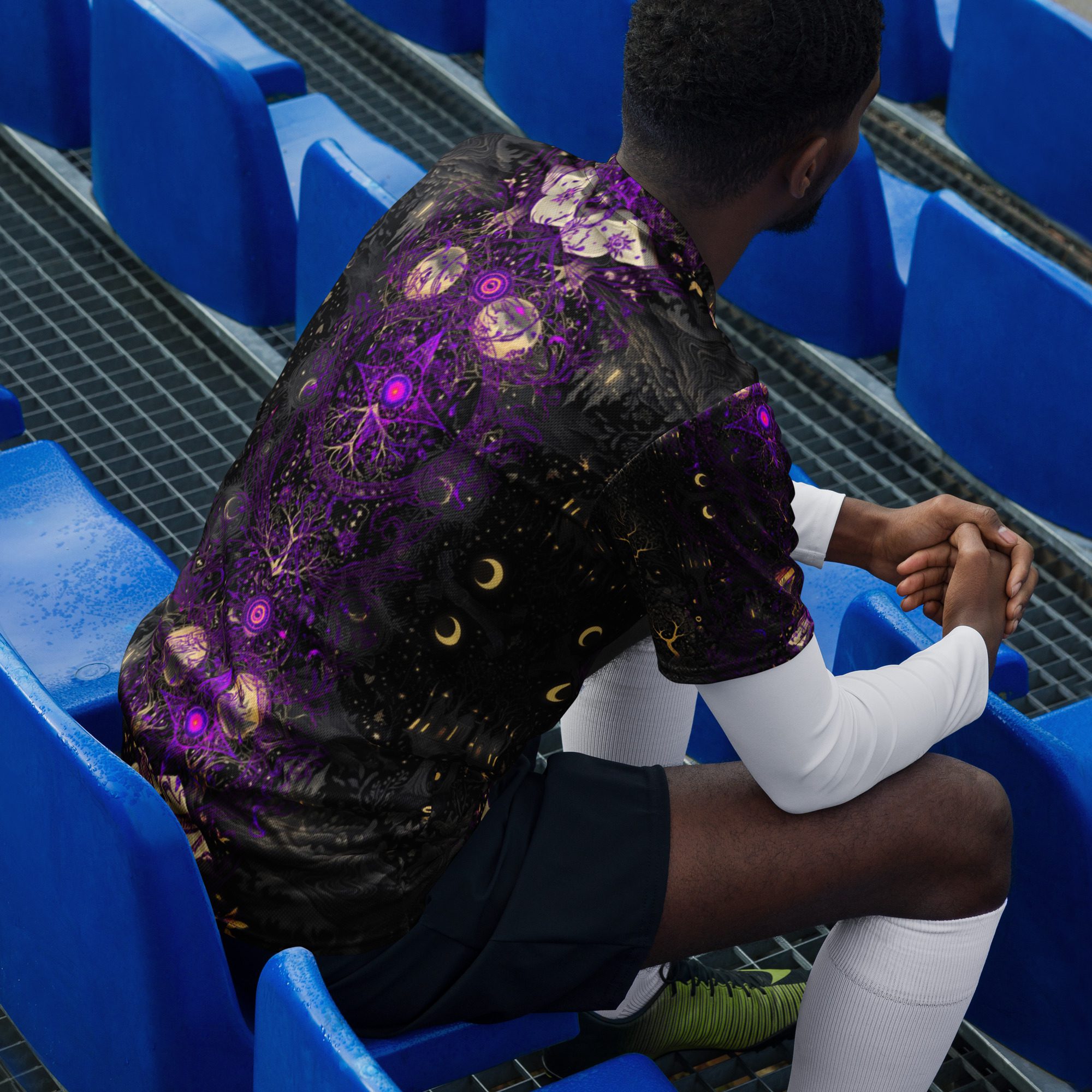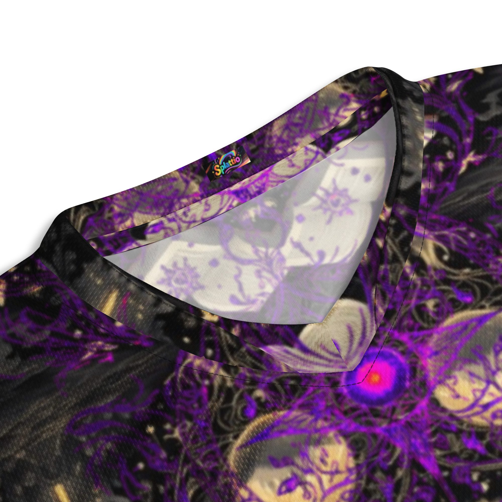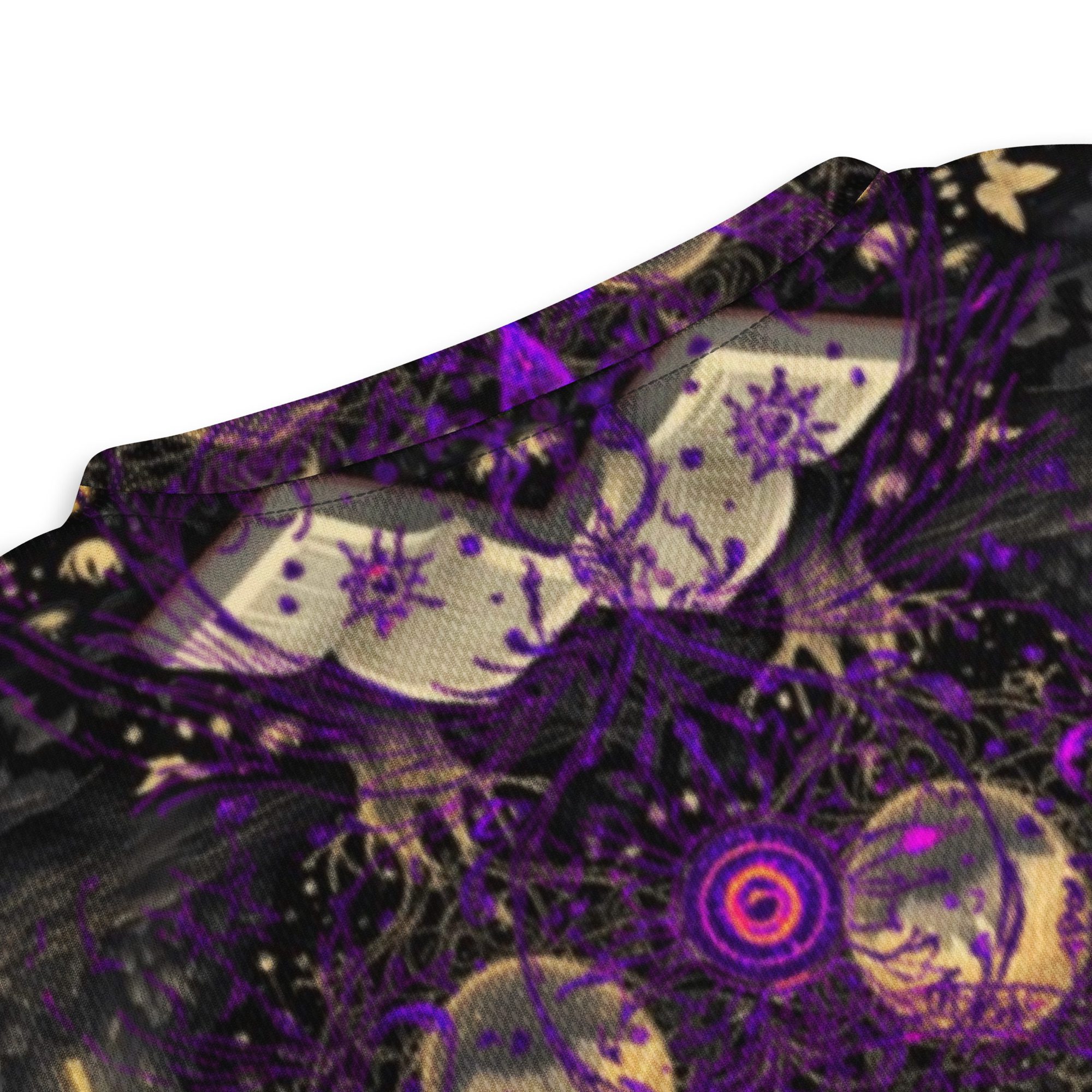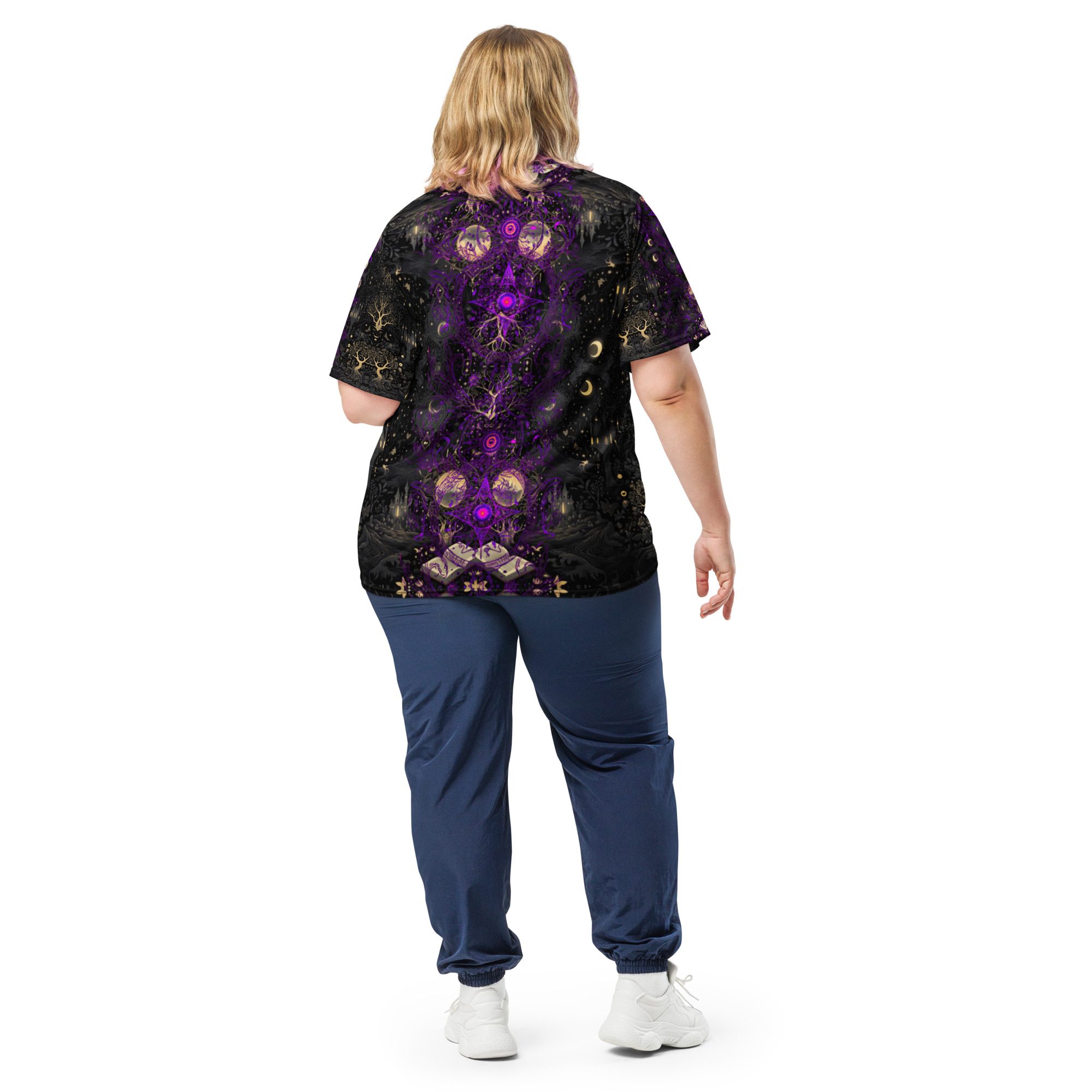 Designed to feel like a lost manuscript translated into wearable art, this all-over print jersey carries the energy of late-night study halls, candlelit rituals, stargazing scholars, and ink-stained pages. The amethyst and black palette evokes mysticism, intellect, and quiet power, making it ideal for those who dress with intention rather than trend-chasing.