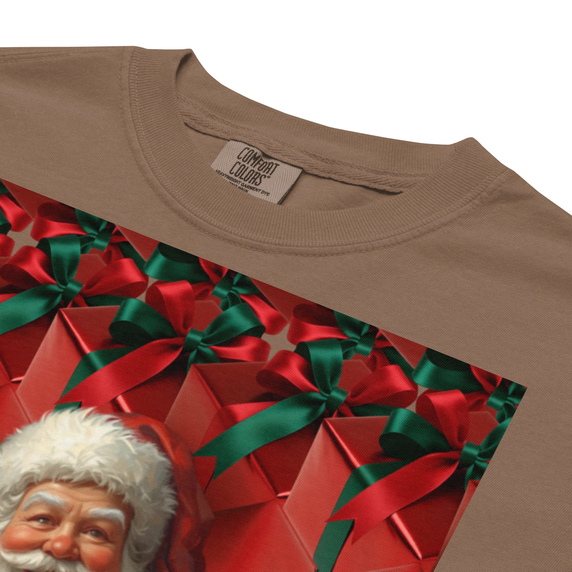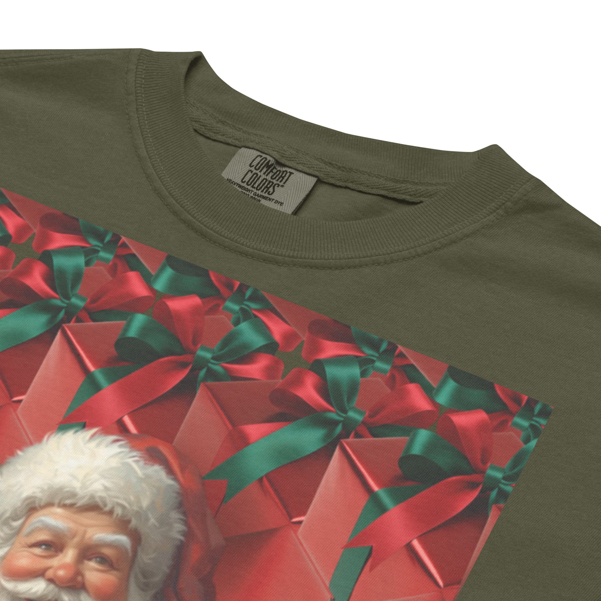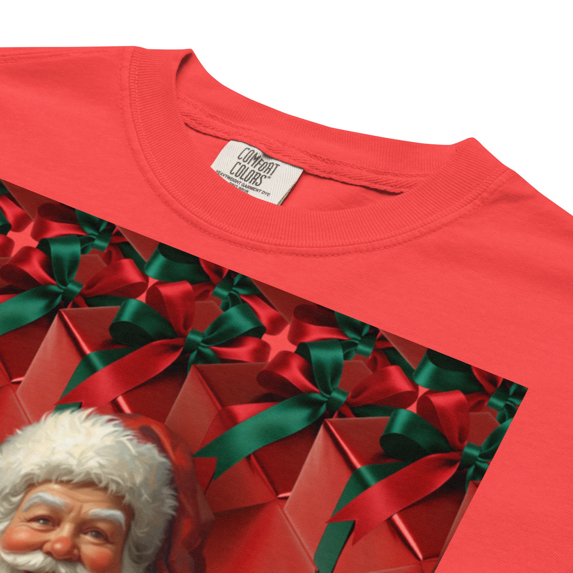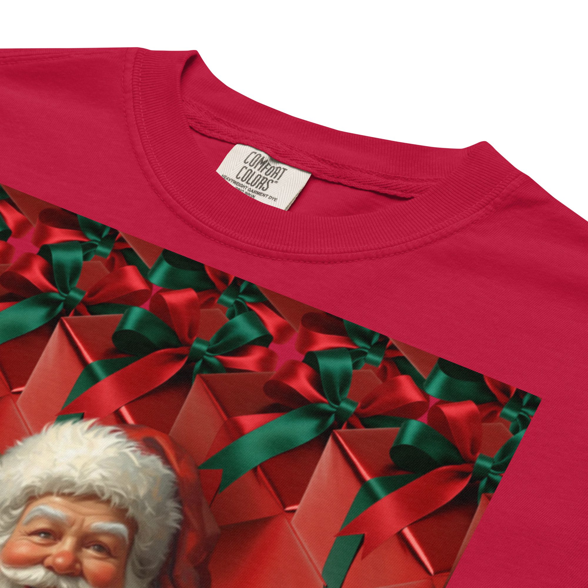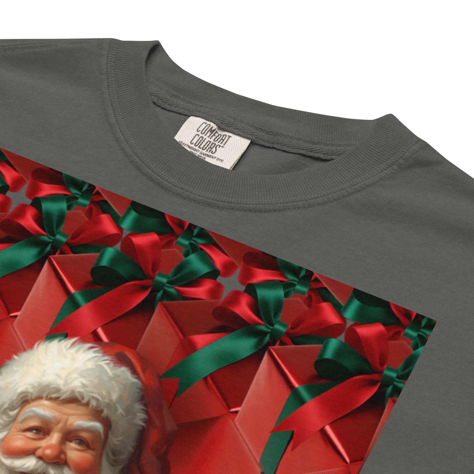 Crafted for comfort and durability, this heavyweight unisex t-shirt is ideal for Christmas parties, holiday photos, family gatherings, cozy winter outfits, and fun seasonal events. The vivid print delivers exceptional color vibrancy, ensuring Santa’s classic smile and the surrounding present motif stand out with crisp, eye-catching detail.