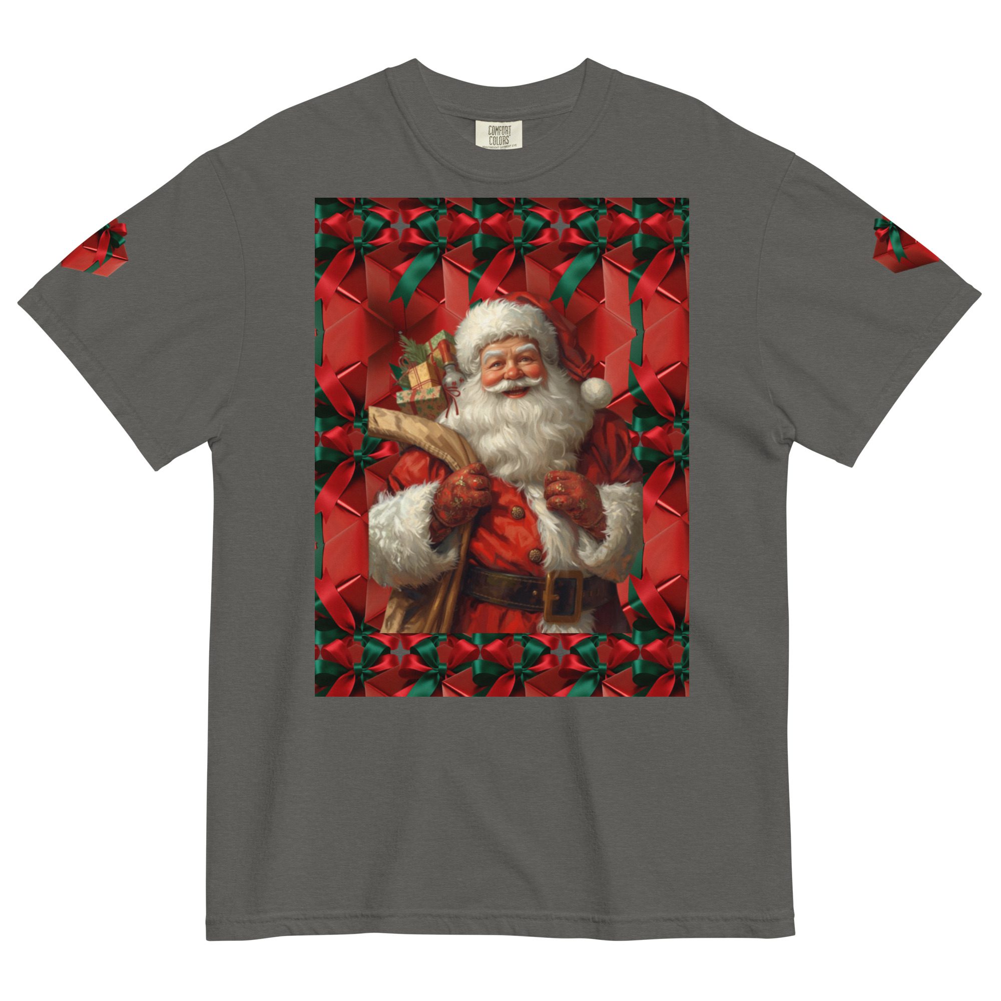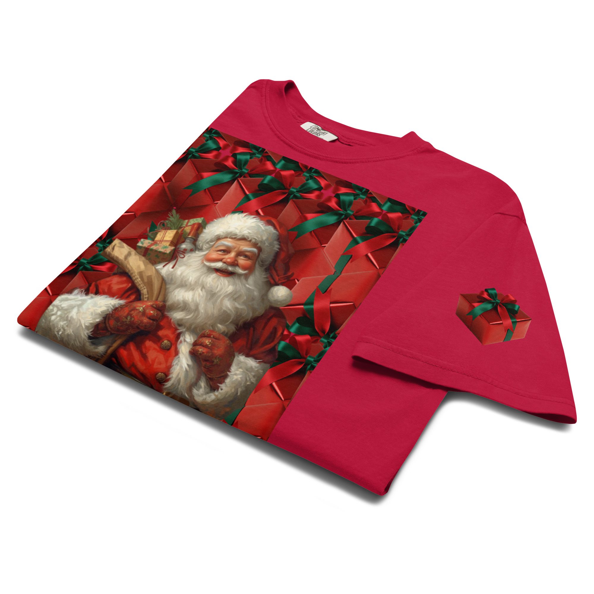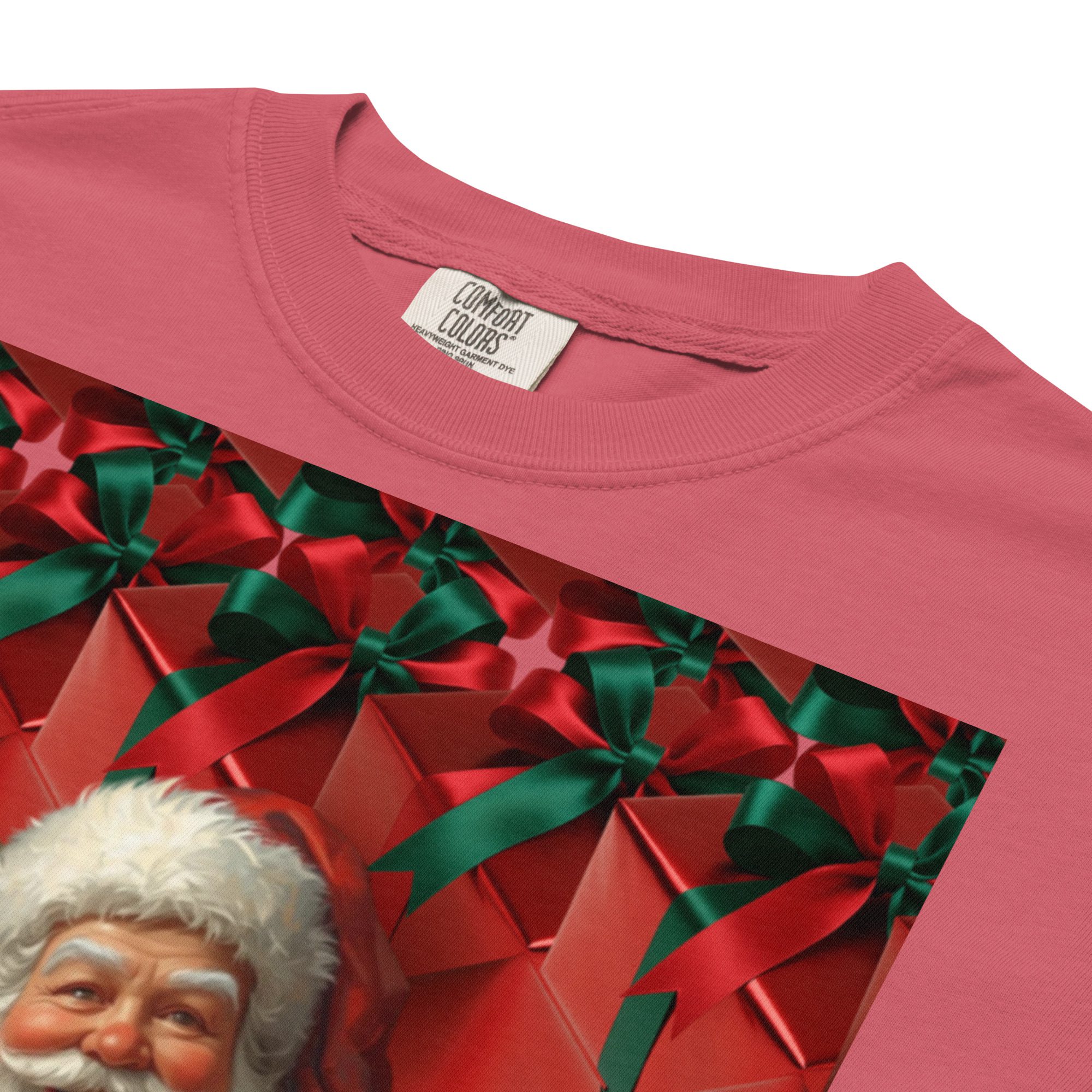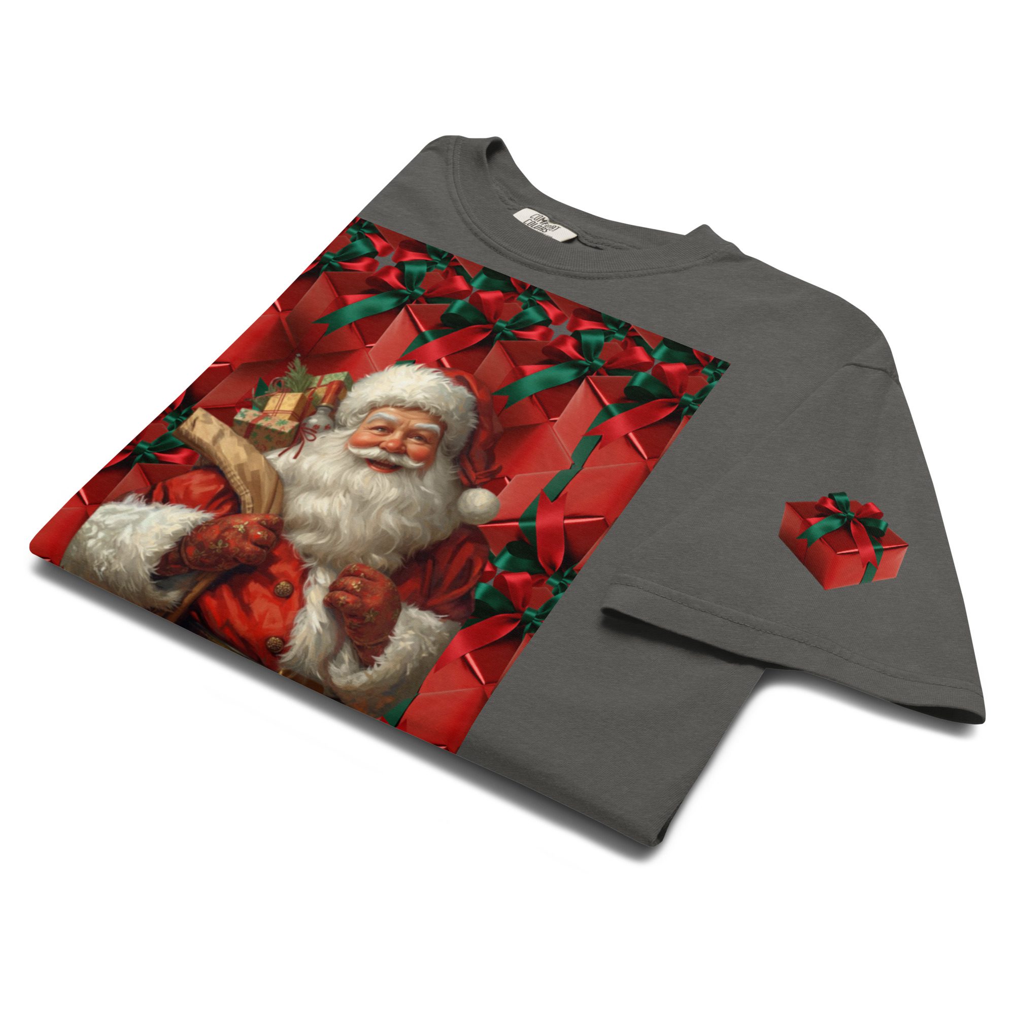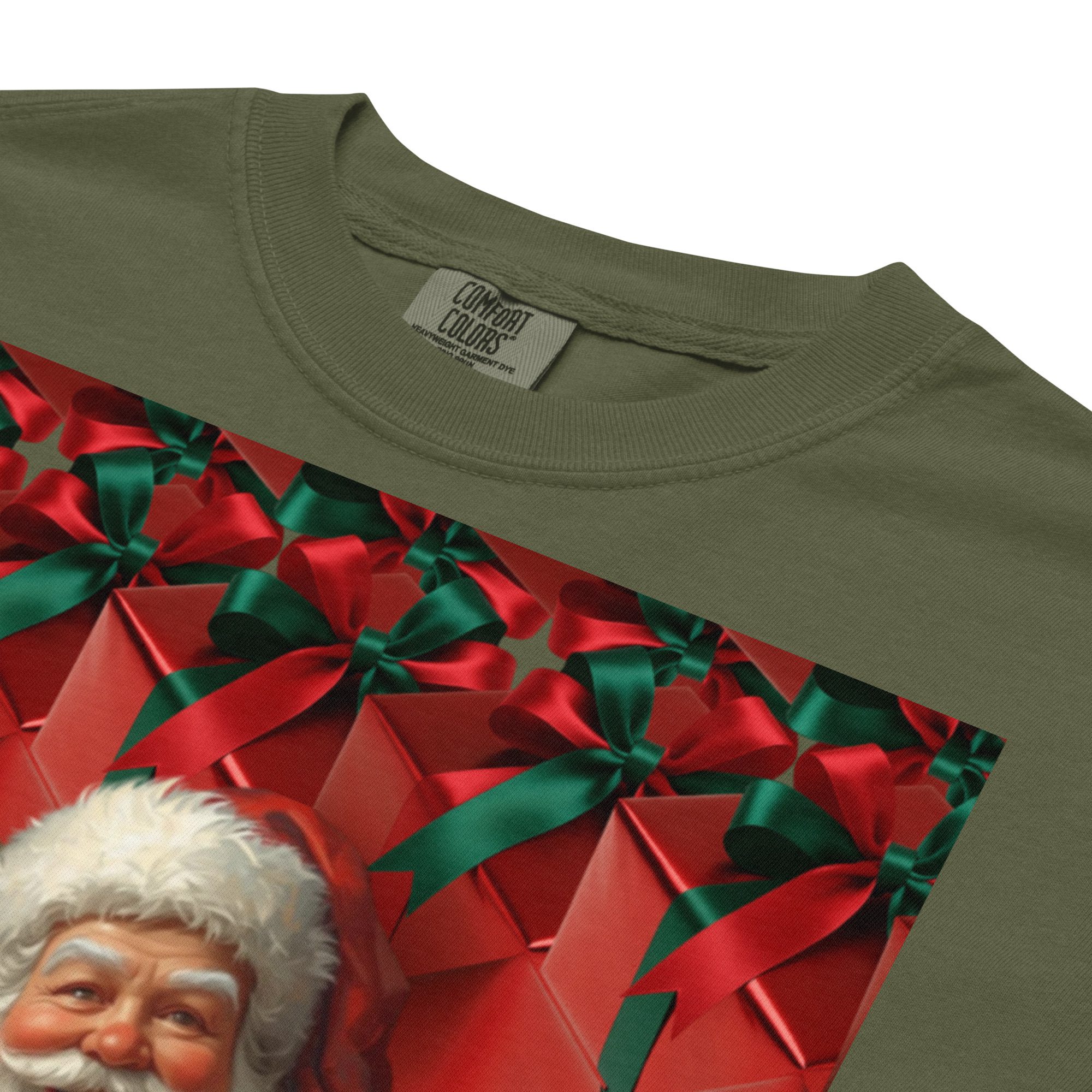 Crafted for comfort and durability, this heavyweight unisex t-shirt is ideal for Christmas parties, holiday photos, family gatherings, cozy winter outfits, and fun seasonal events. The vivid print delivers exceptional color vibrancy, ensuring Santa’s classic smile and the surrounding present motif stand out with crisp, eye-catching detail.