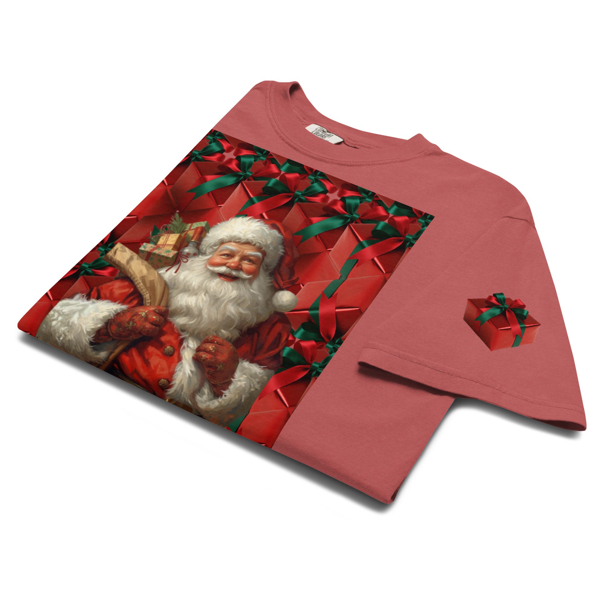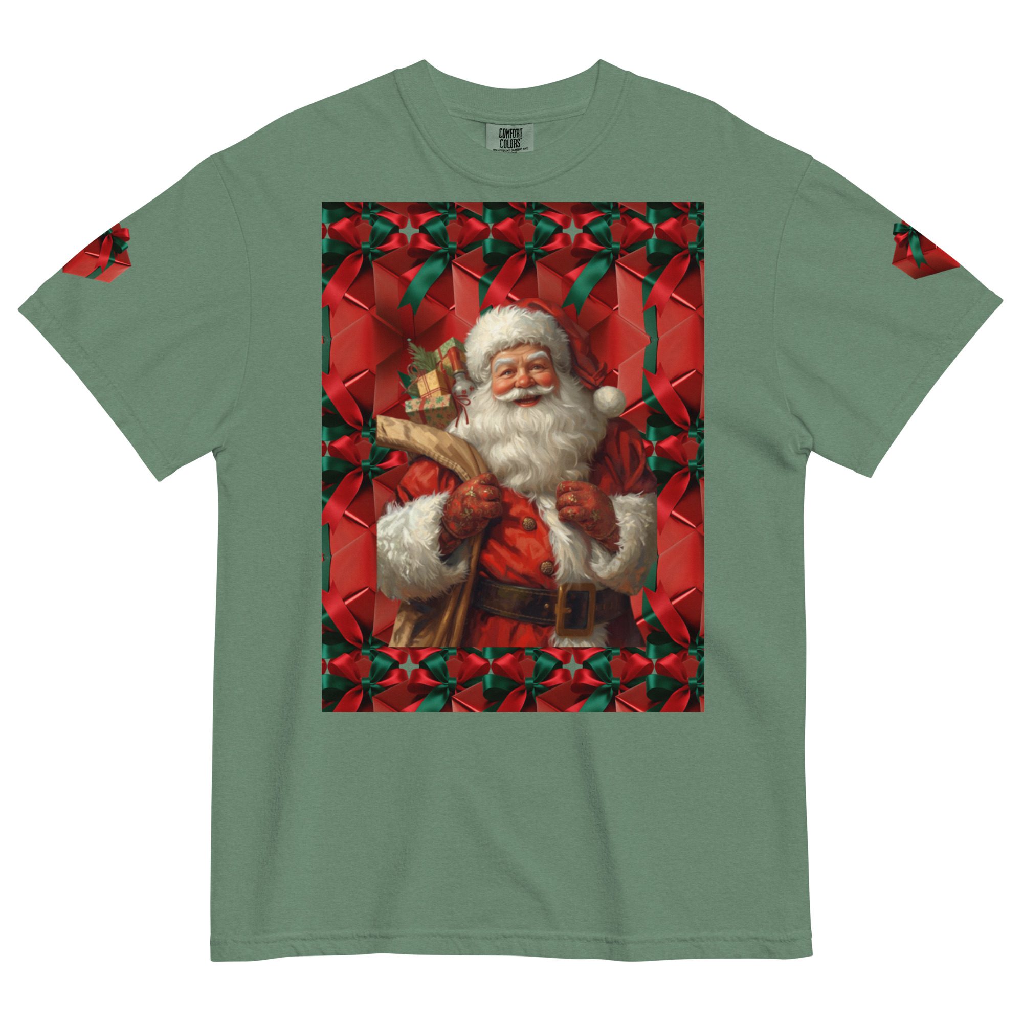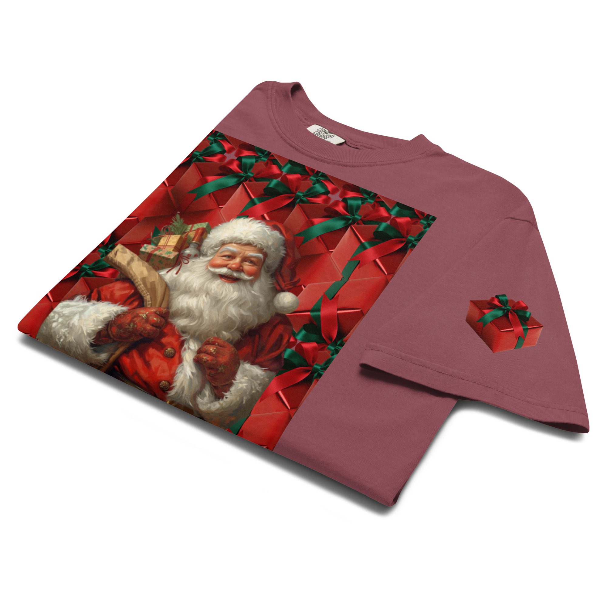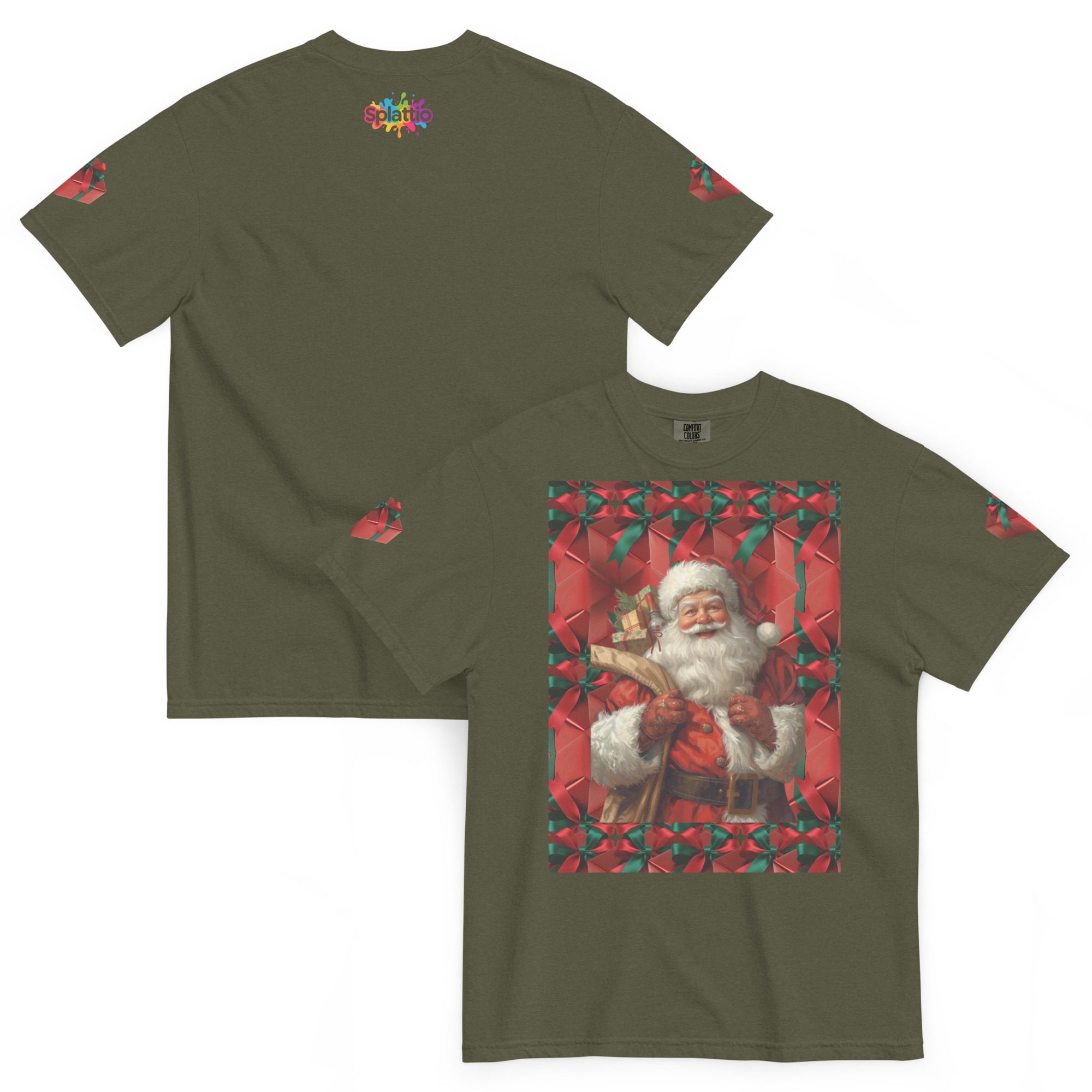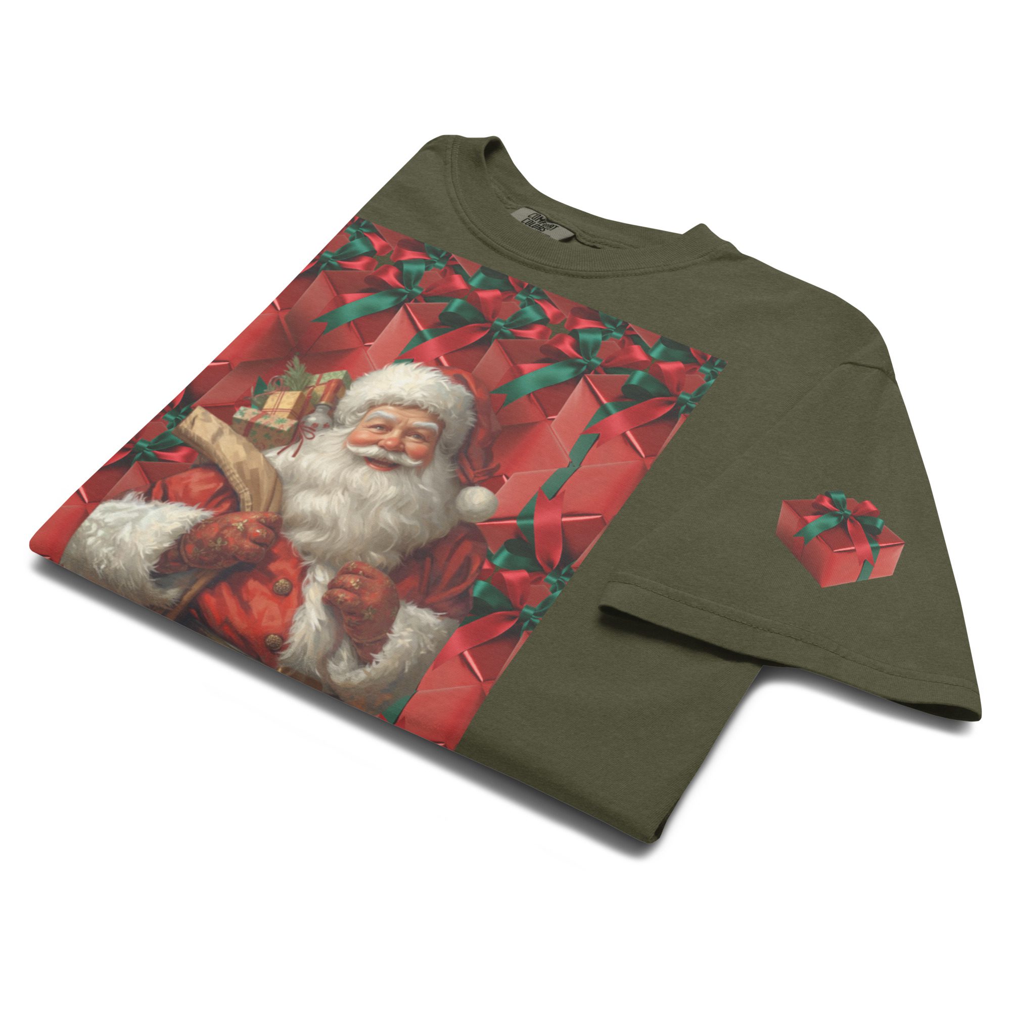 Crafted for comfort and durability, this heavyweight unisex t-shirt is ideal for Christmas parties, holiday photos, family gatherings, cozy winter outfits, and fun seasonal events. The vivid print delivers exceptional color vibrancy, ensuring Santa’s classic smile and the surrounding present motif stand out with crisp, eye-catching detail.