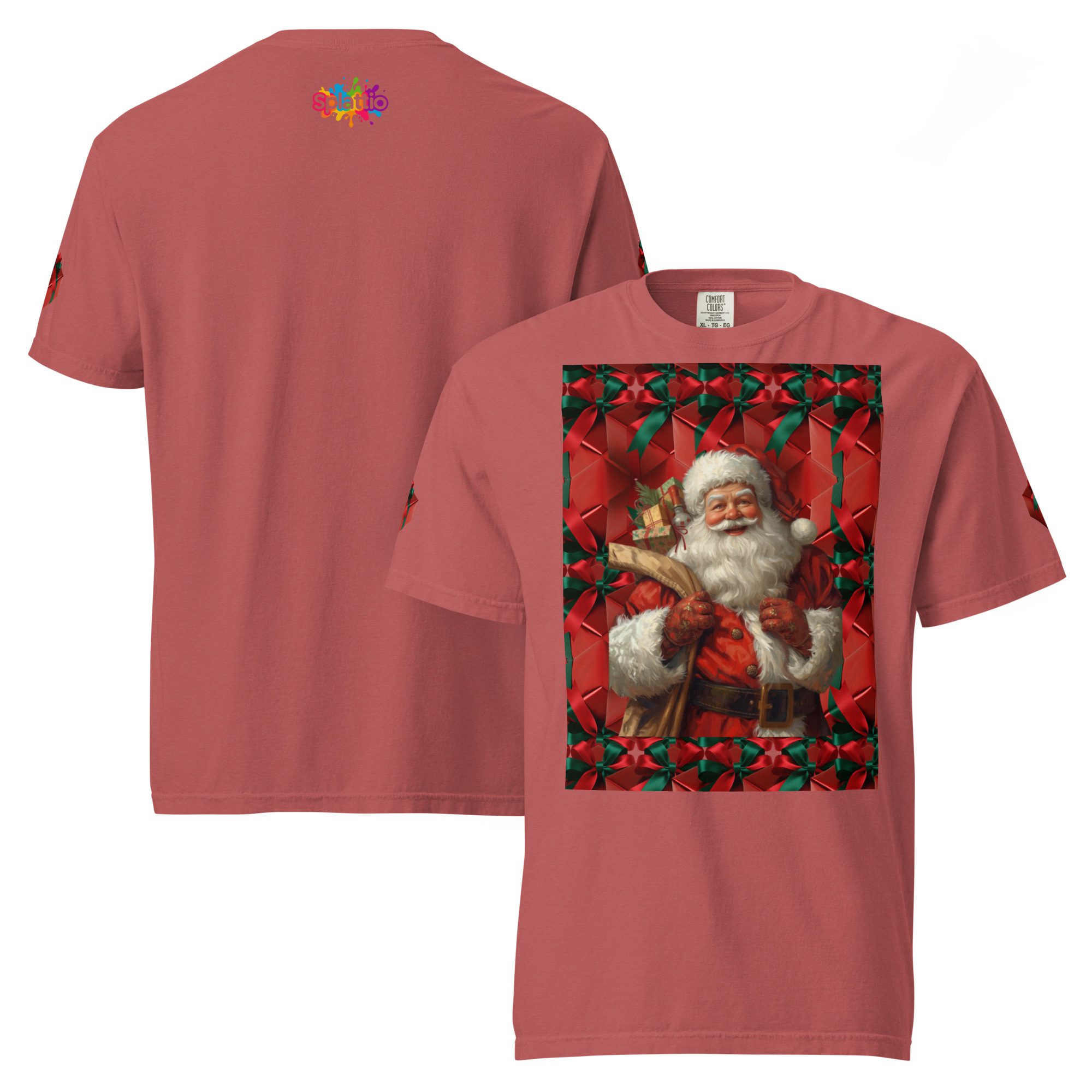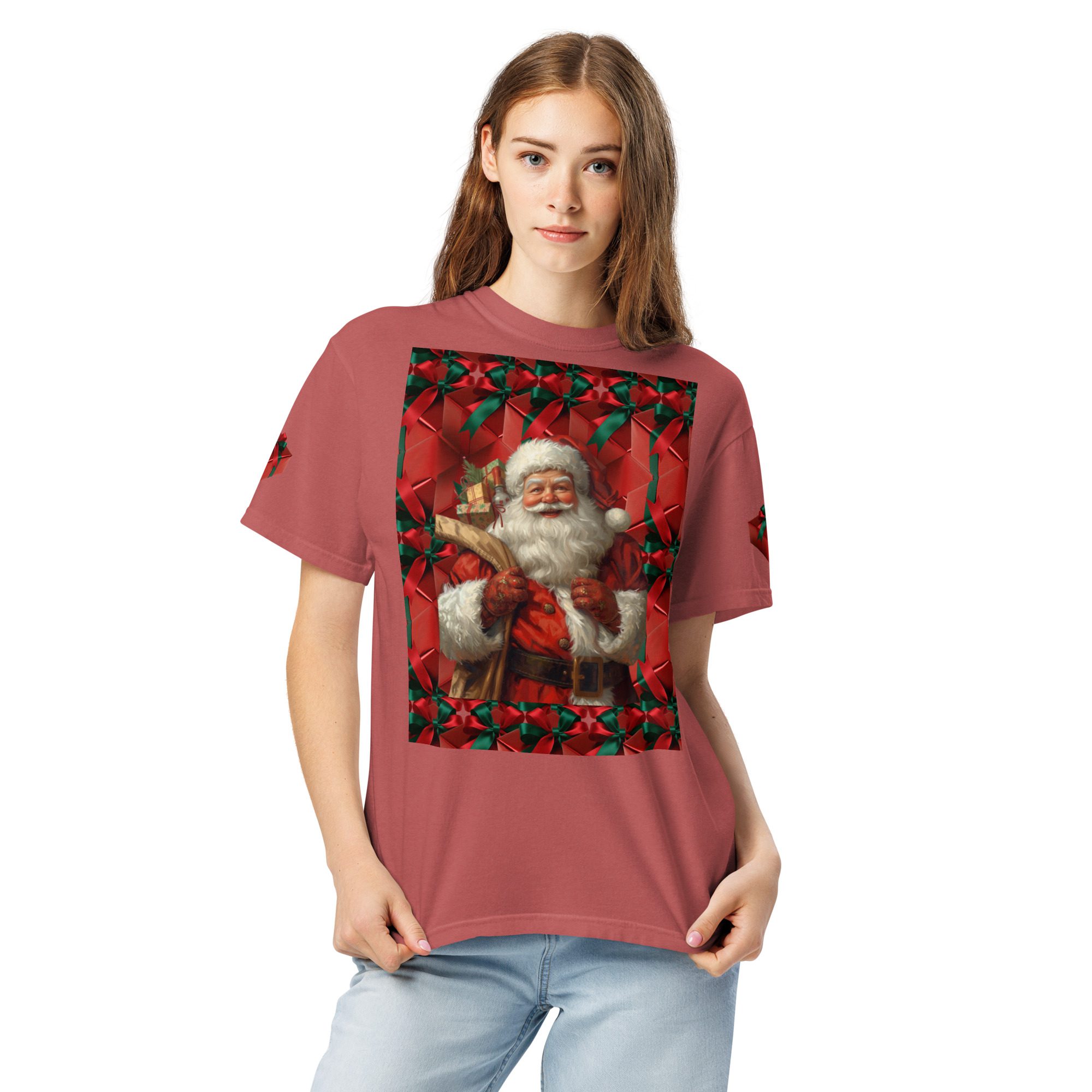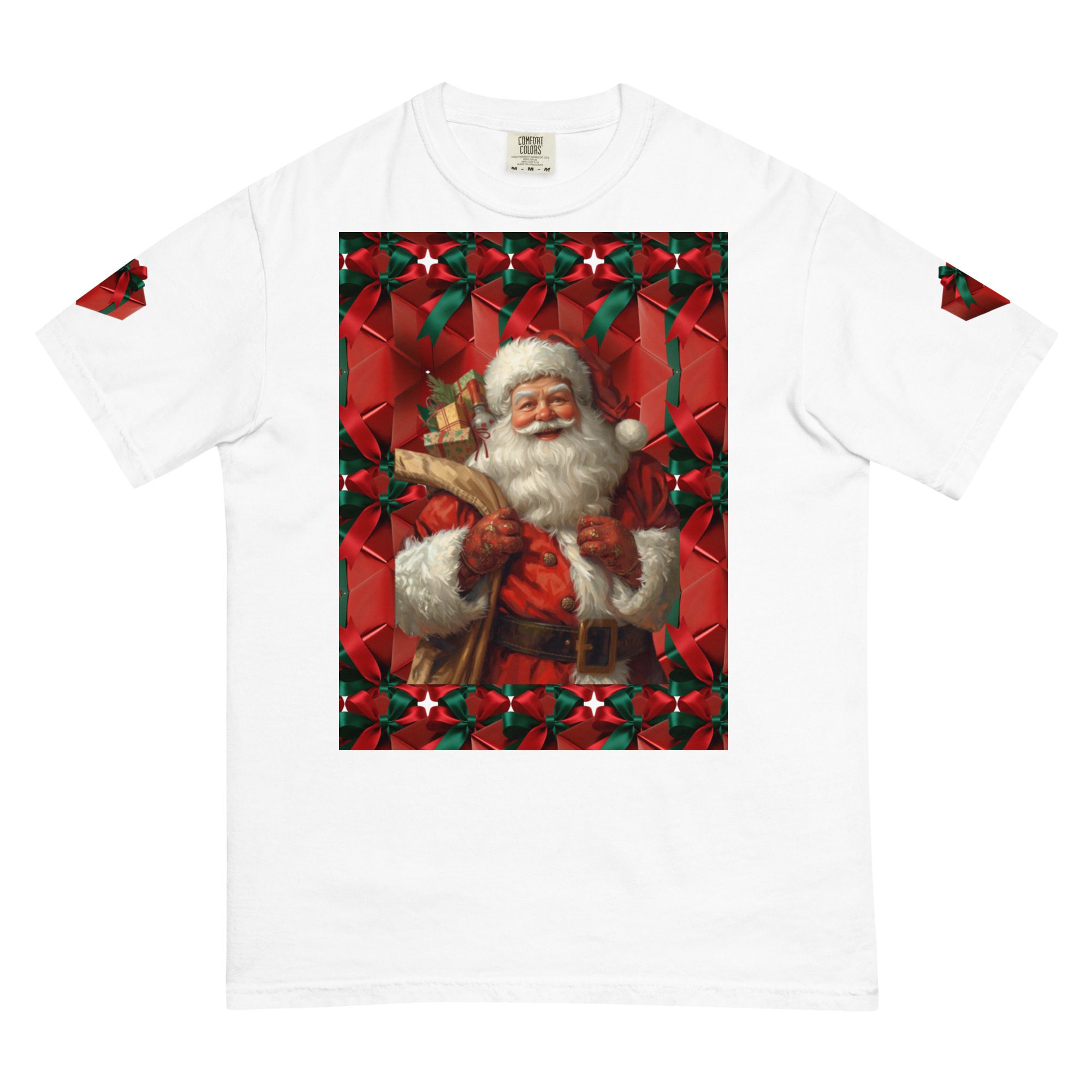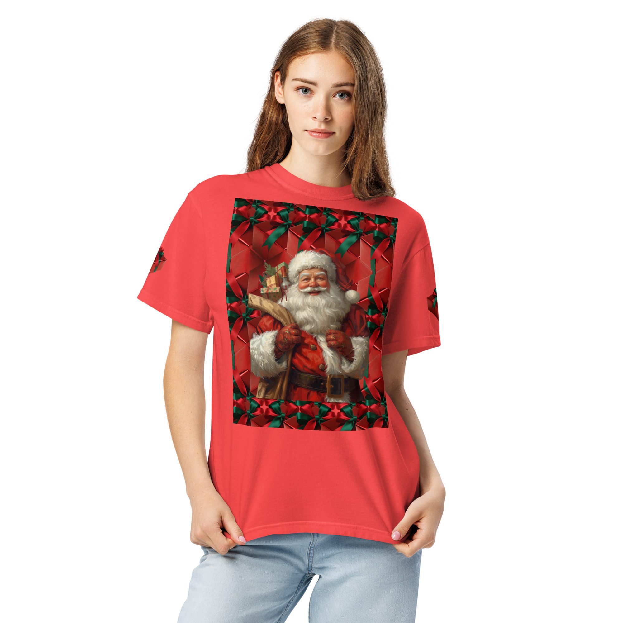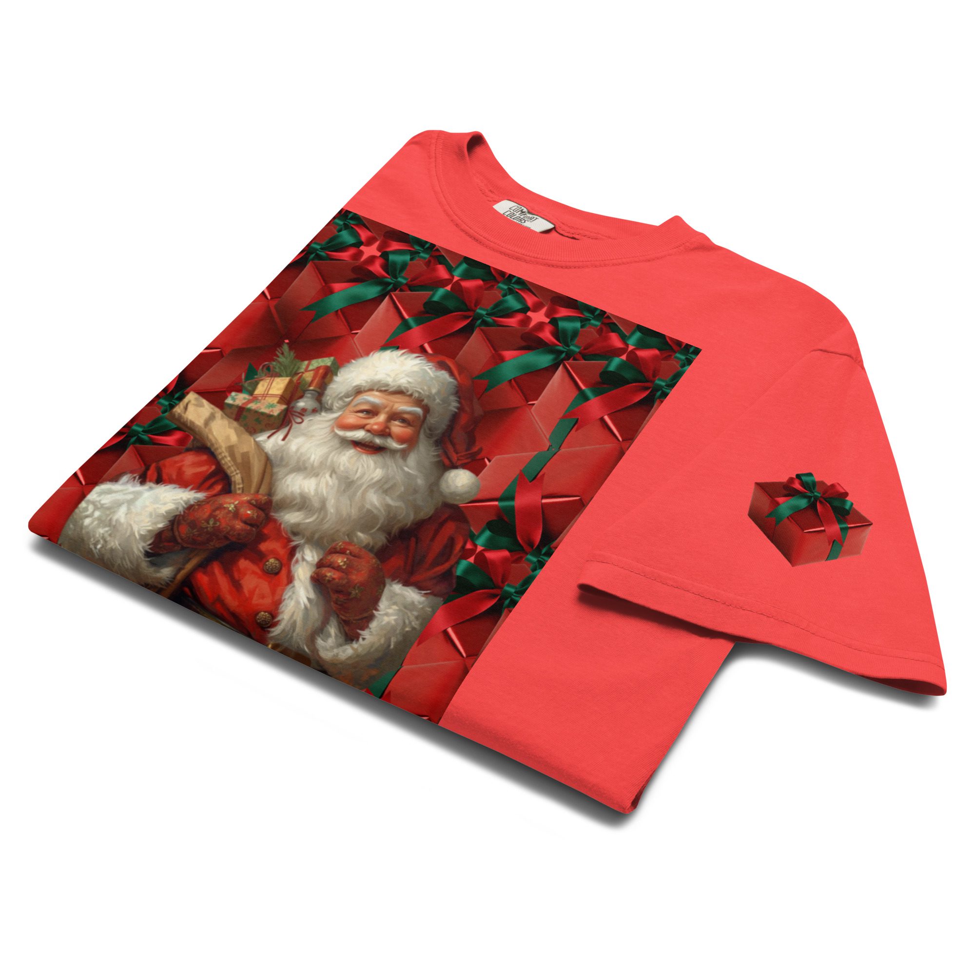 Crafted for comfort and durability, this heavyweight unisex t-shirt is ideal for Christmas parties, holiday photos, family gatherings, cozy winter outfits, and fun seasonal events. The vivid print delivers exceptional color vibrancy, ensuring Santa’s classic smile and the surrounding present motif stand out with crisp, eye-catching detail.