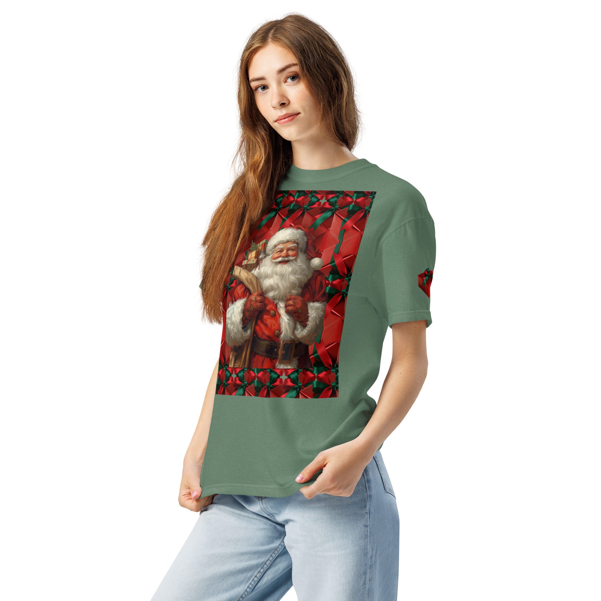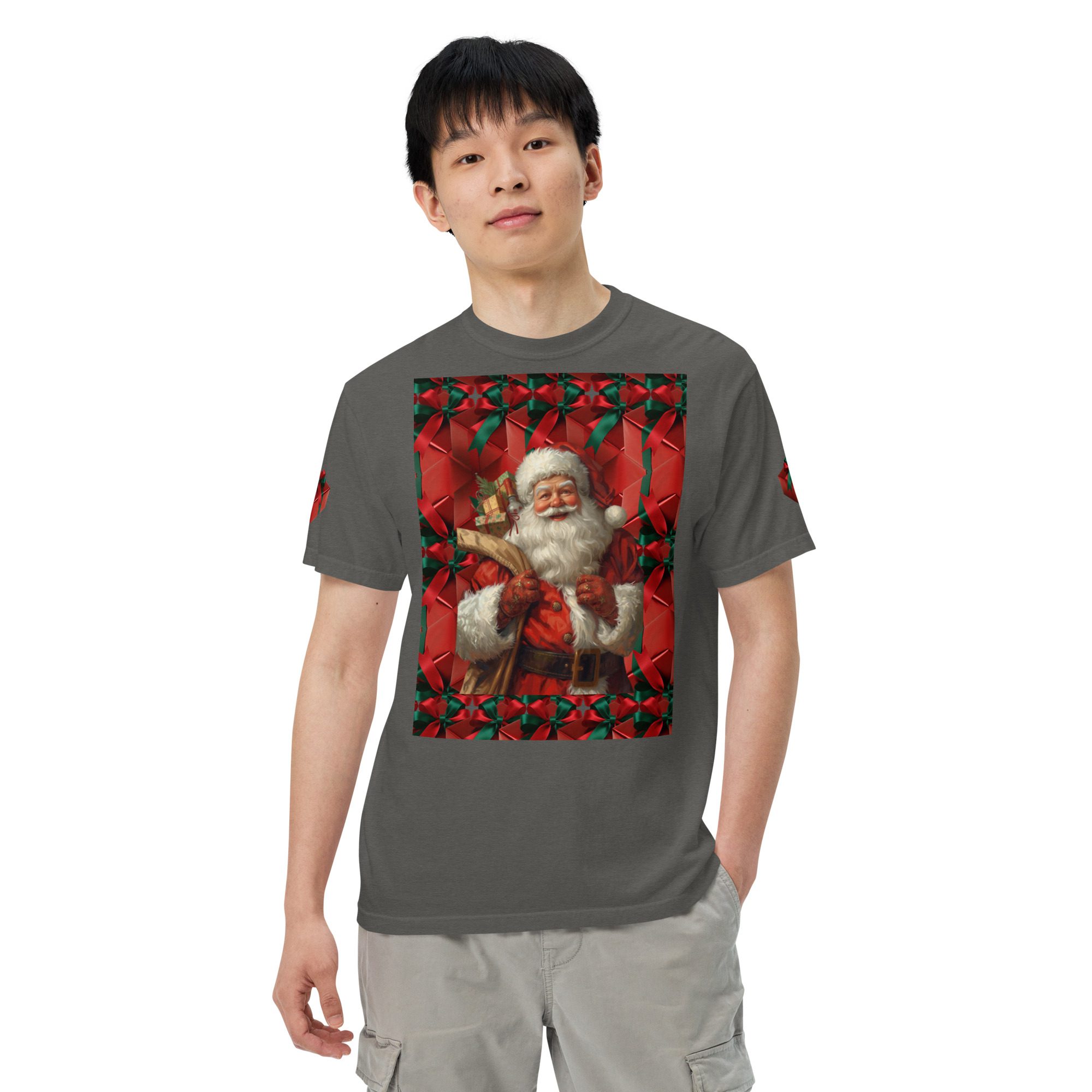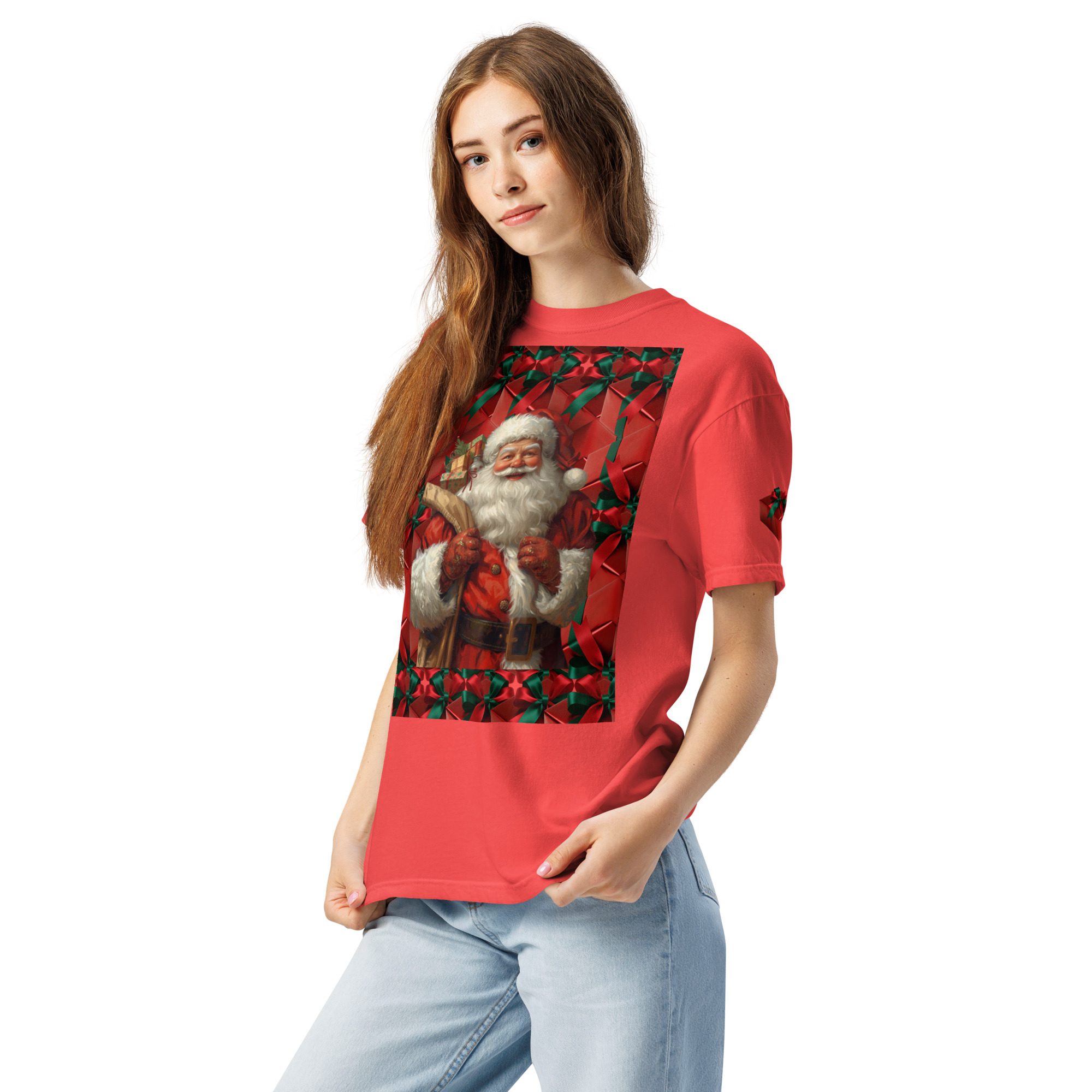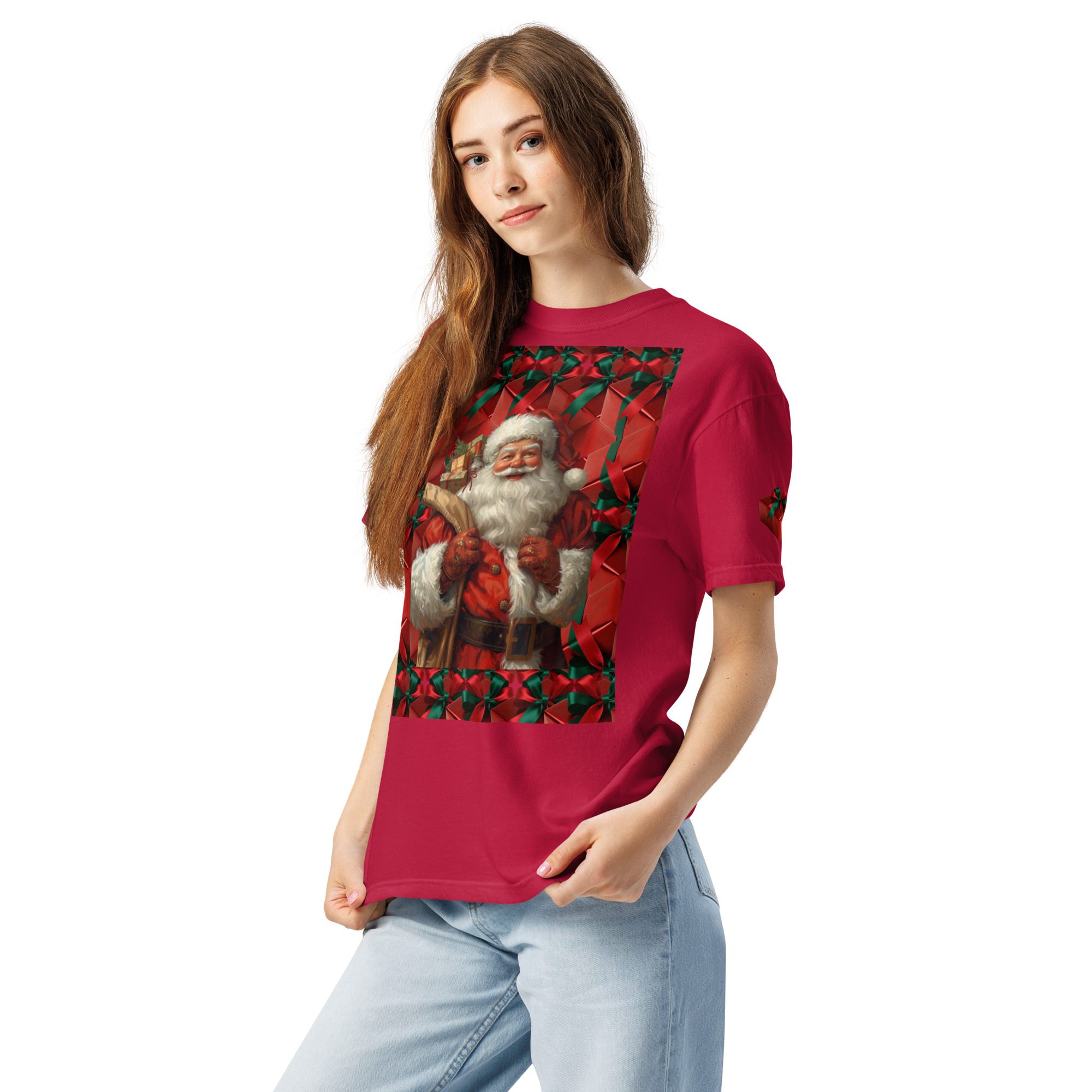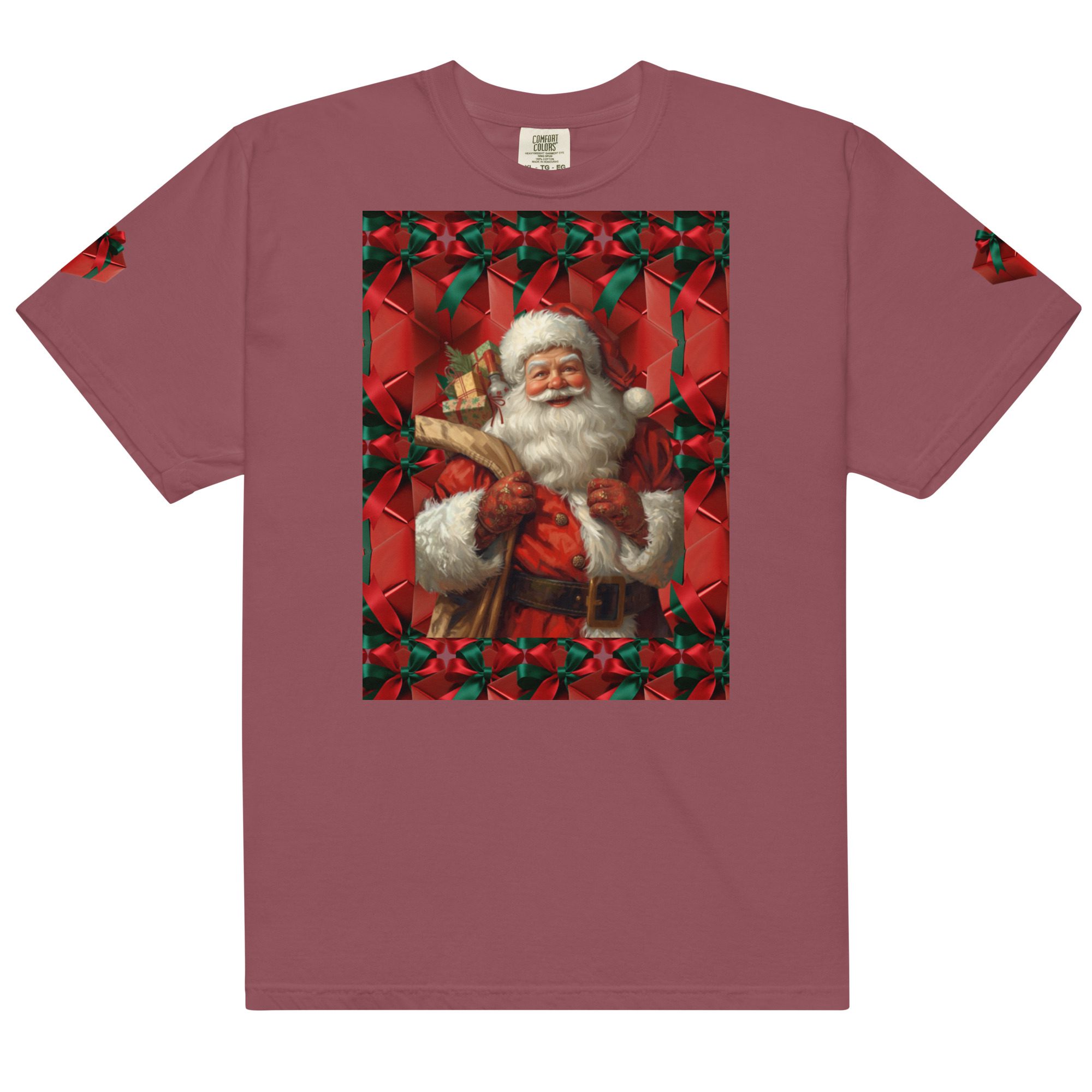 Crafted for comfort and durability, this heavyweight unisex t-shirt is ideal for Christmas parties, holiday photos, family gatherings, cozy winter outfits, and fun seasonal events. The vivid print delivers exceptional color vibrancy, ensuring Santa’s classic smile and the surrounding present motif stand out with crisp, eye-catching detail.