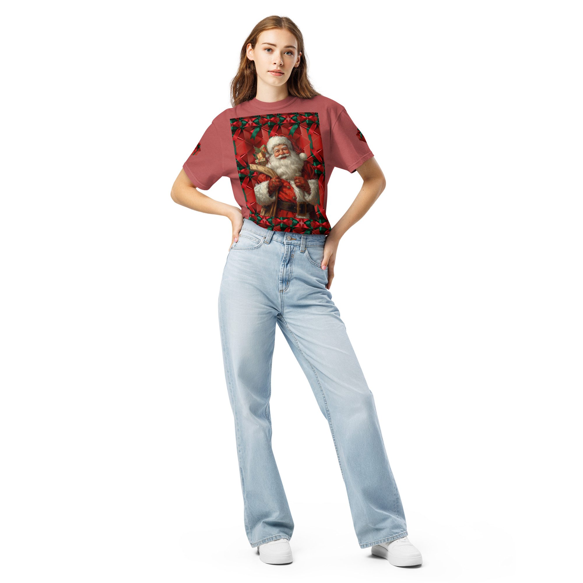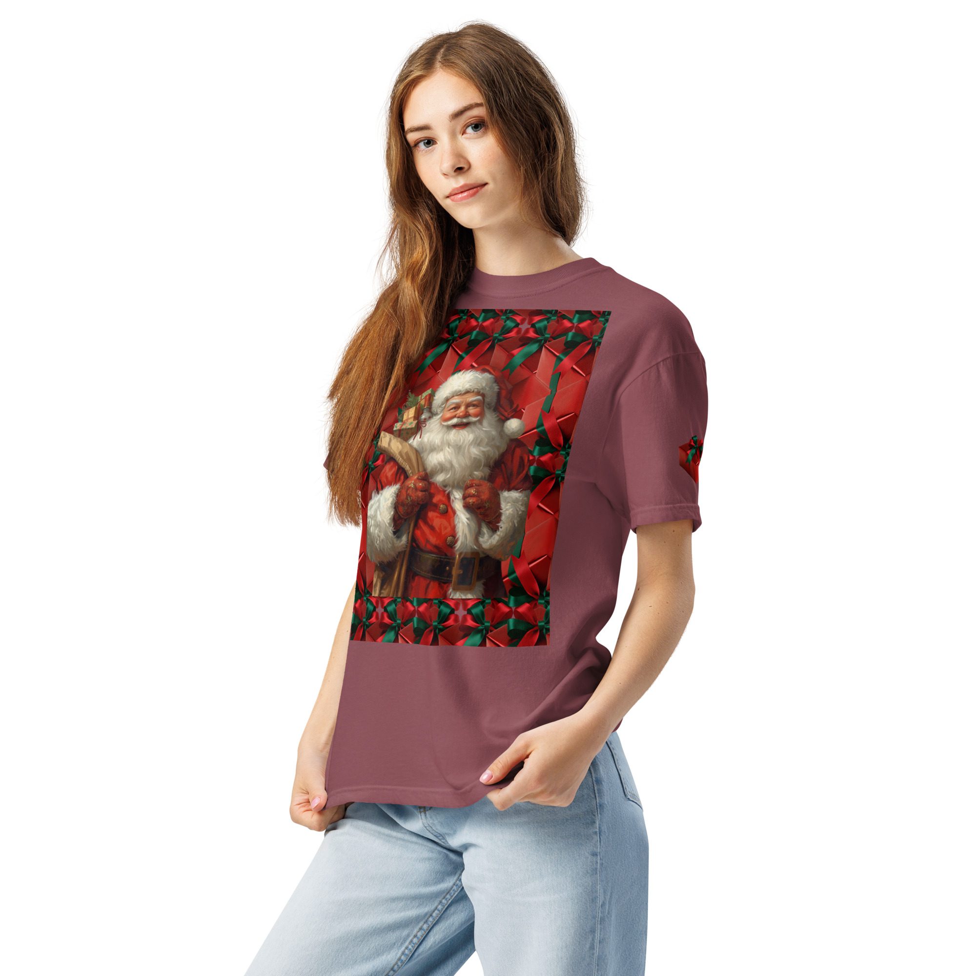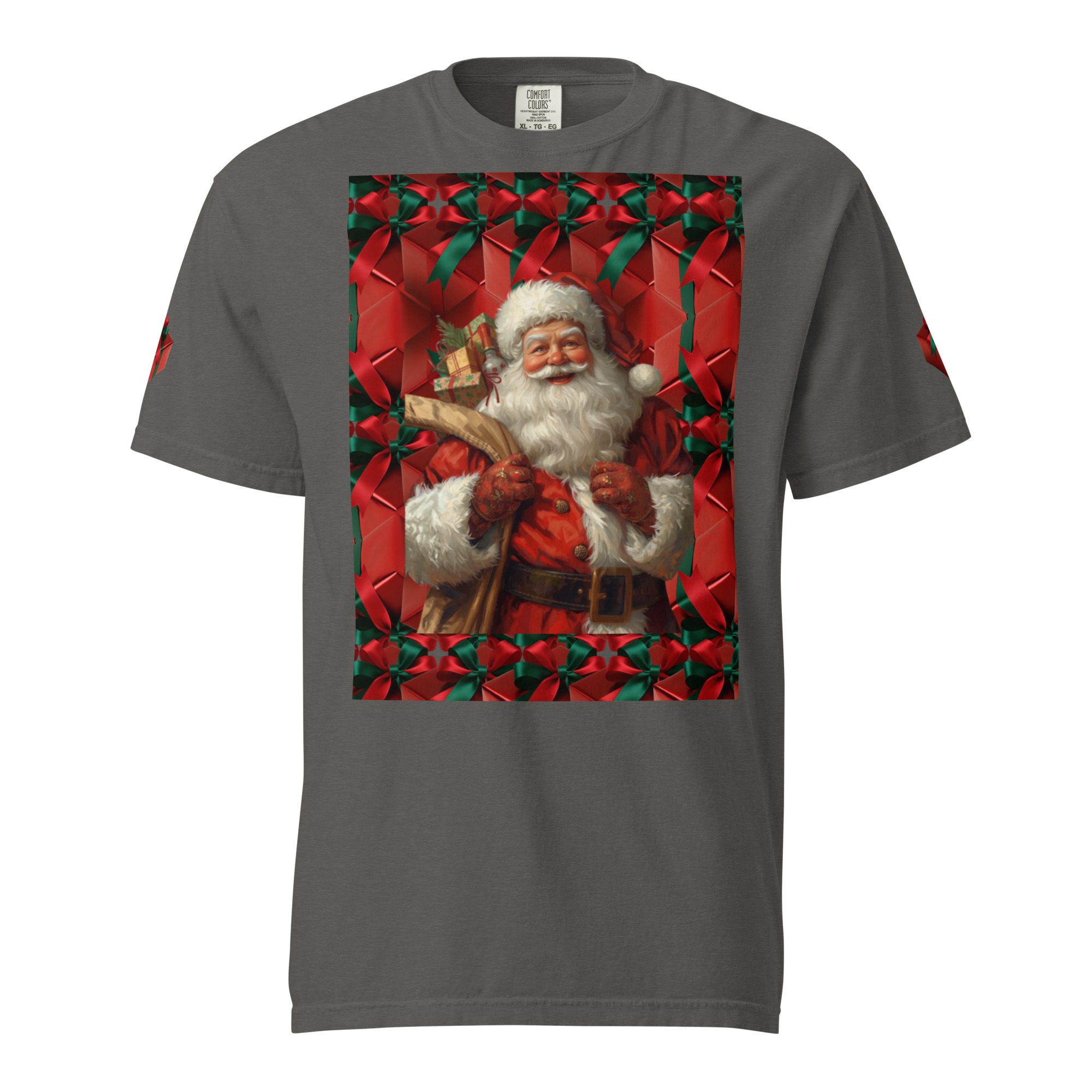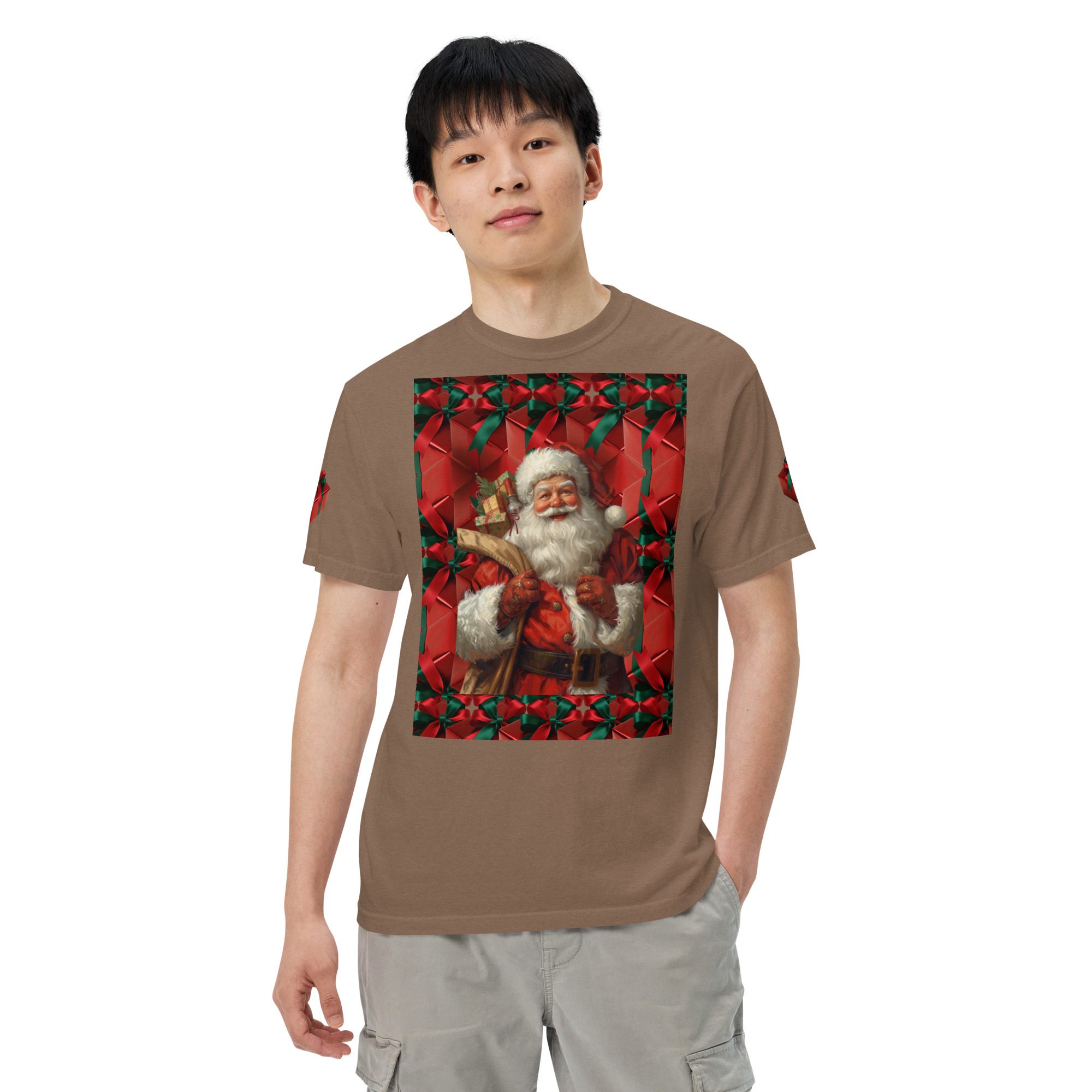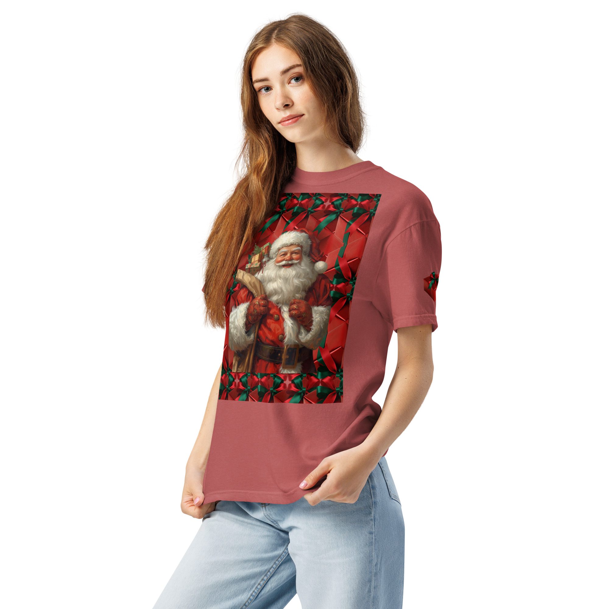 Crafted for comfort and durability, this heavyweight unisex t-shirt is ideal for Christmas parties, holiday photos, family gatherings, cozy winter outfits, and fun seasonal events. The vivid print delivers exceptional color vibrancy, ensuring Santa’s classic smile and the surrounding present motif stand out with crisp, eye-catching detail.