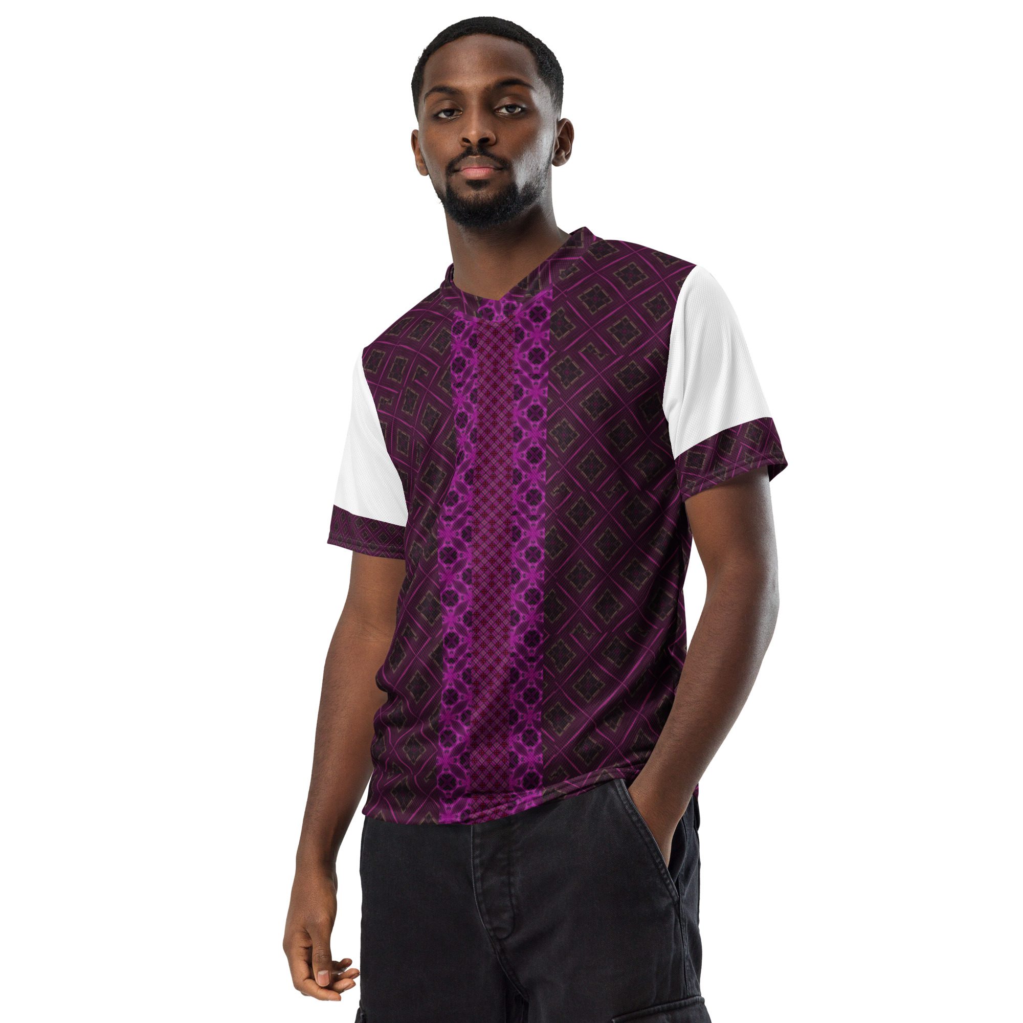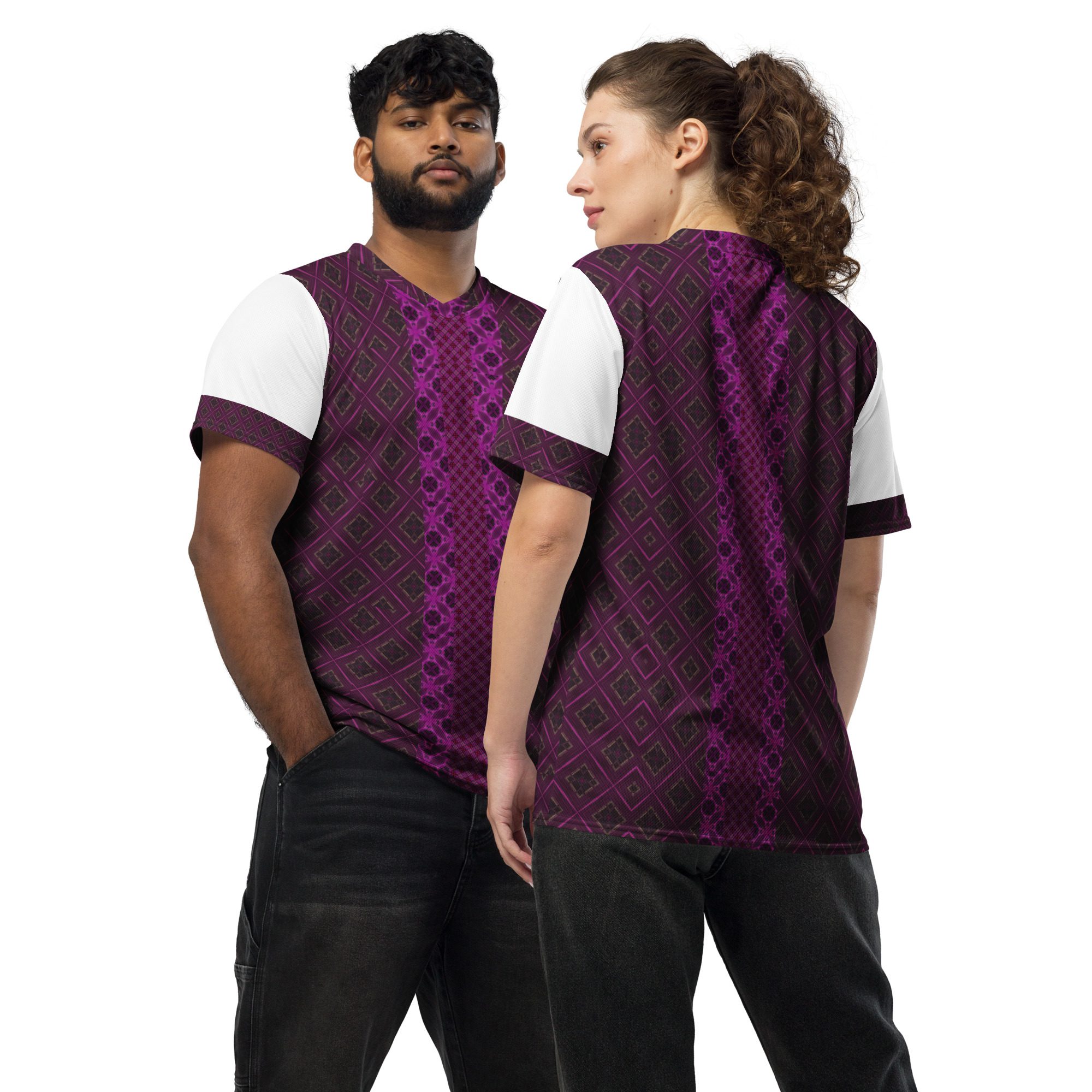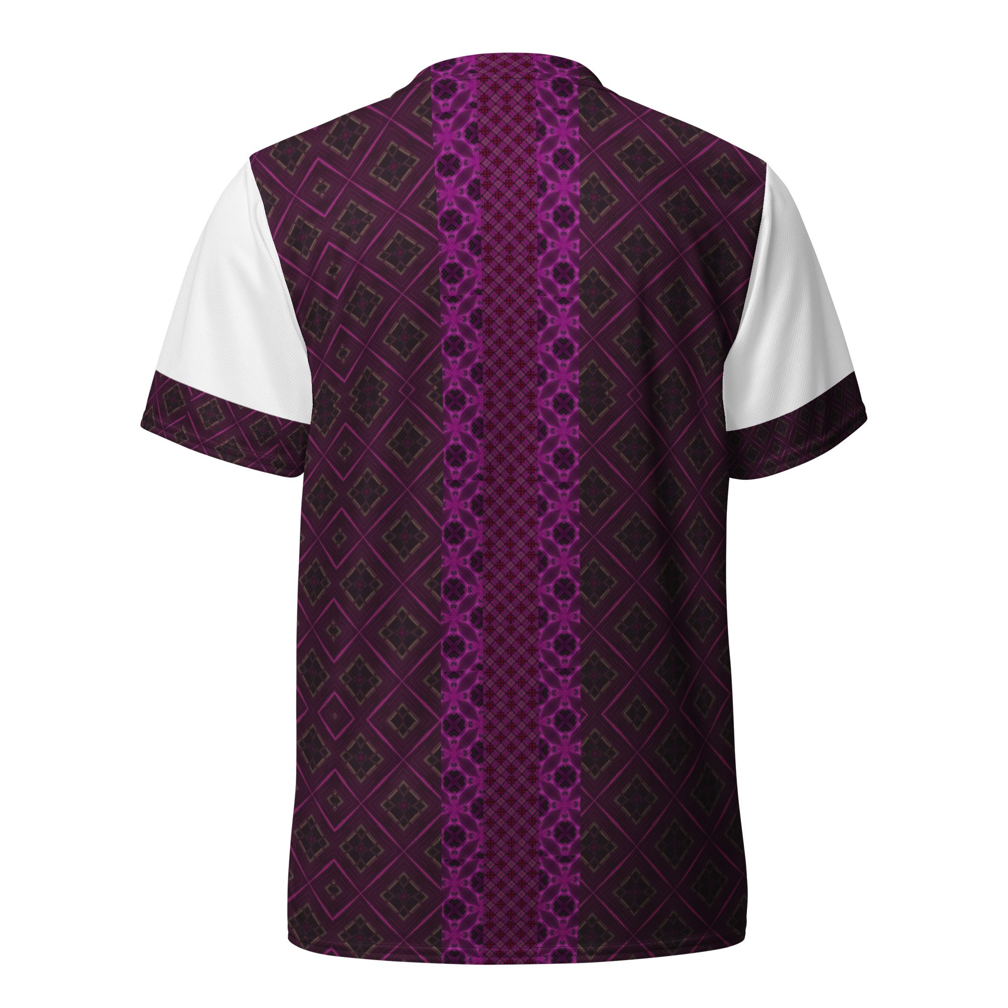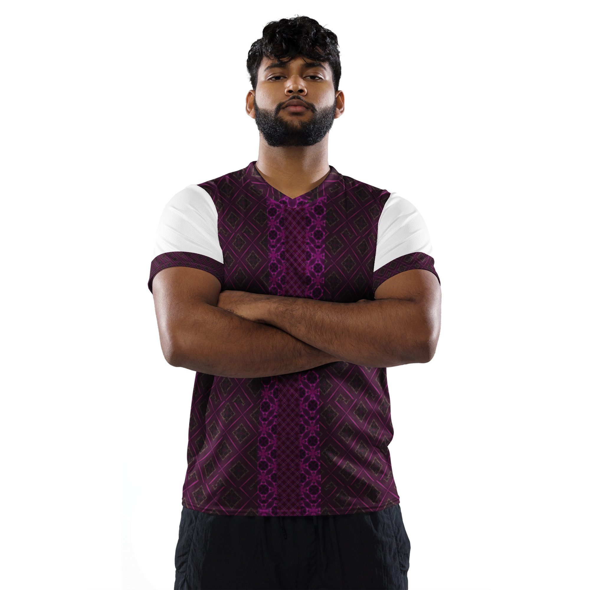 Introducing Violet Gridstream, created by Jaysen Mansfield — a high-energy geometric design brought to life on a sleek recycled unisex sports jersey.