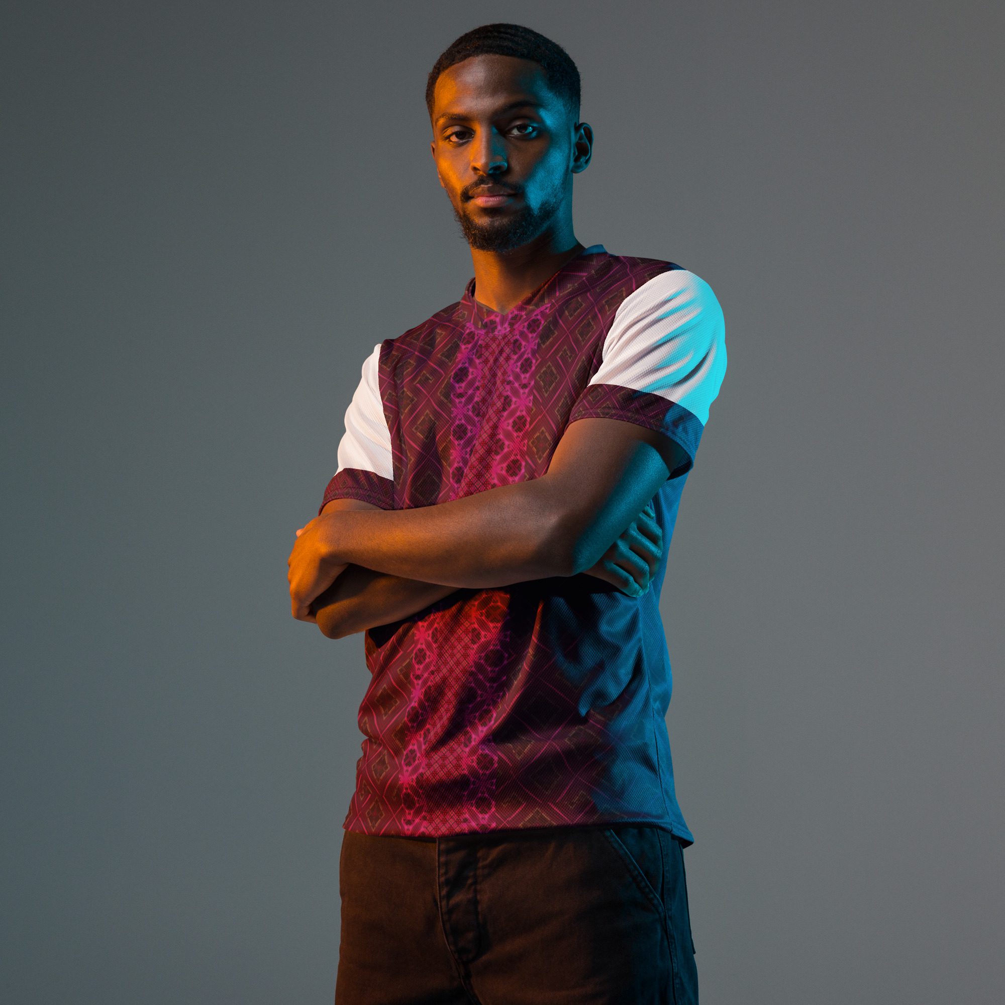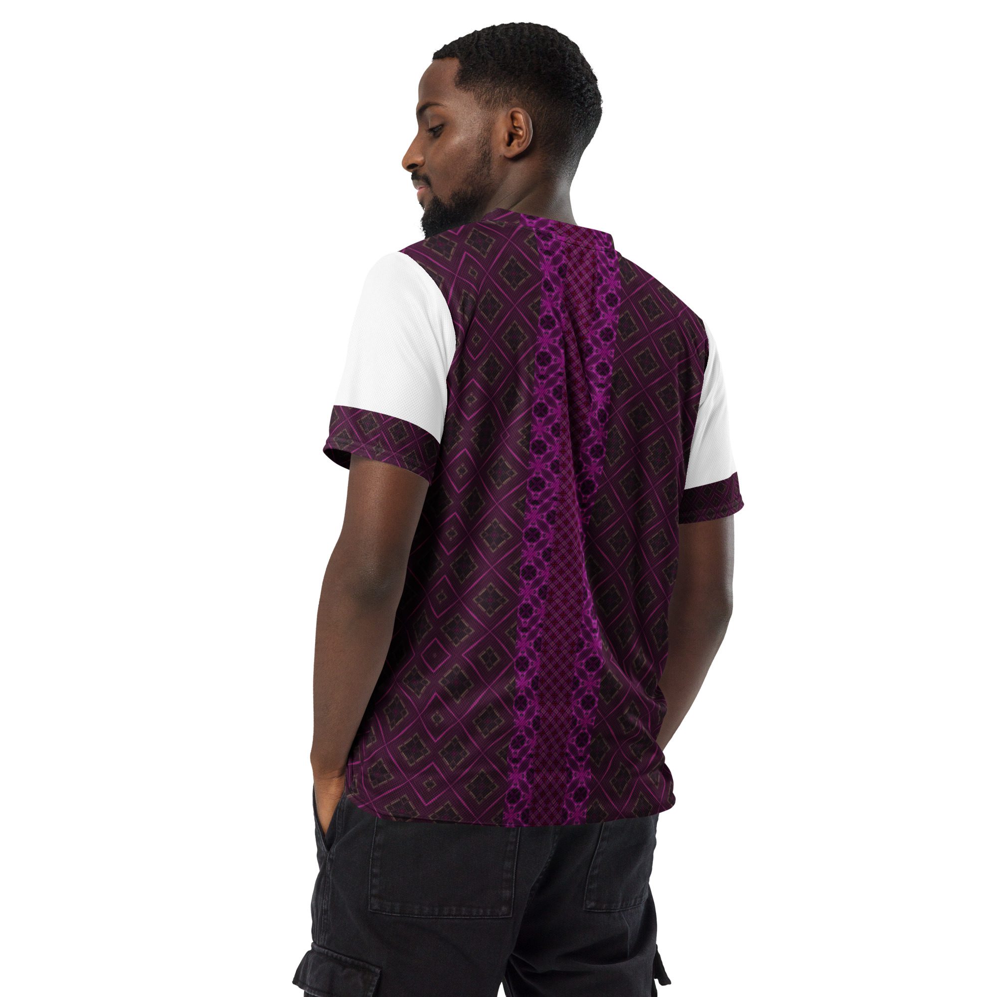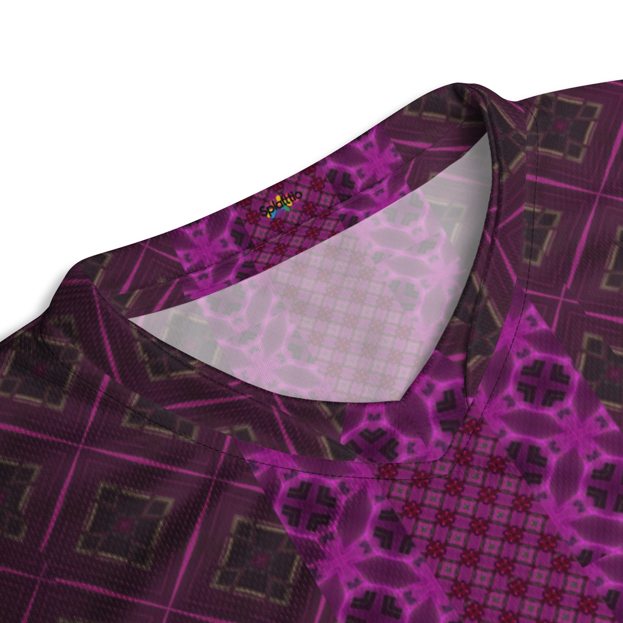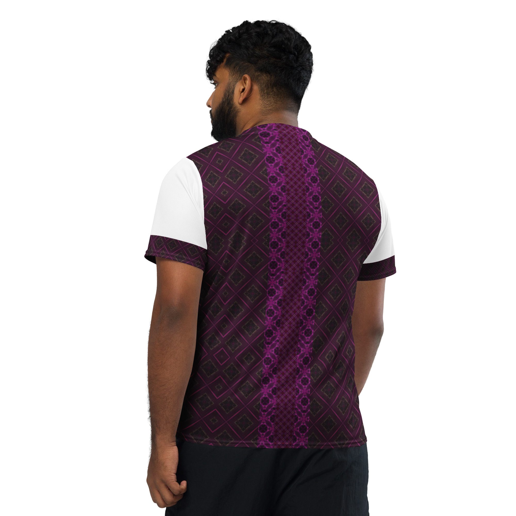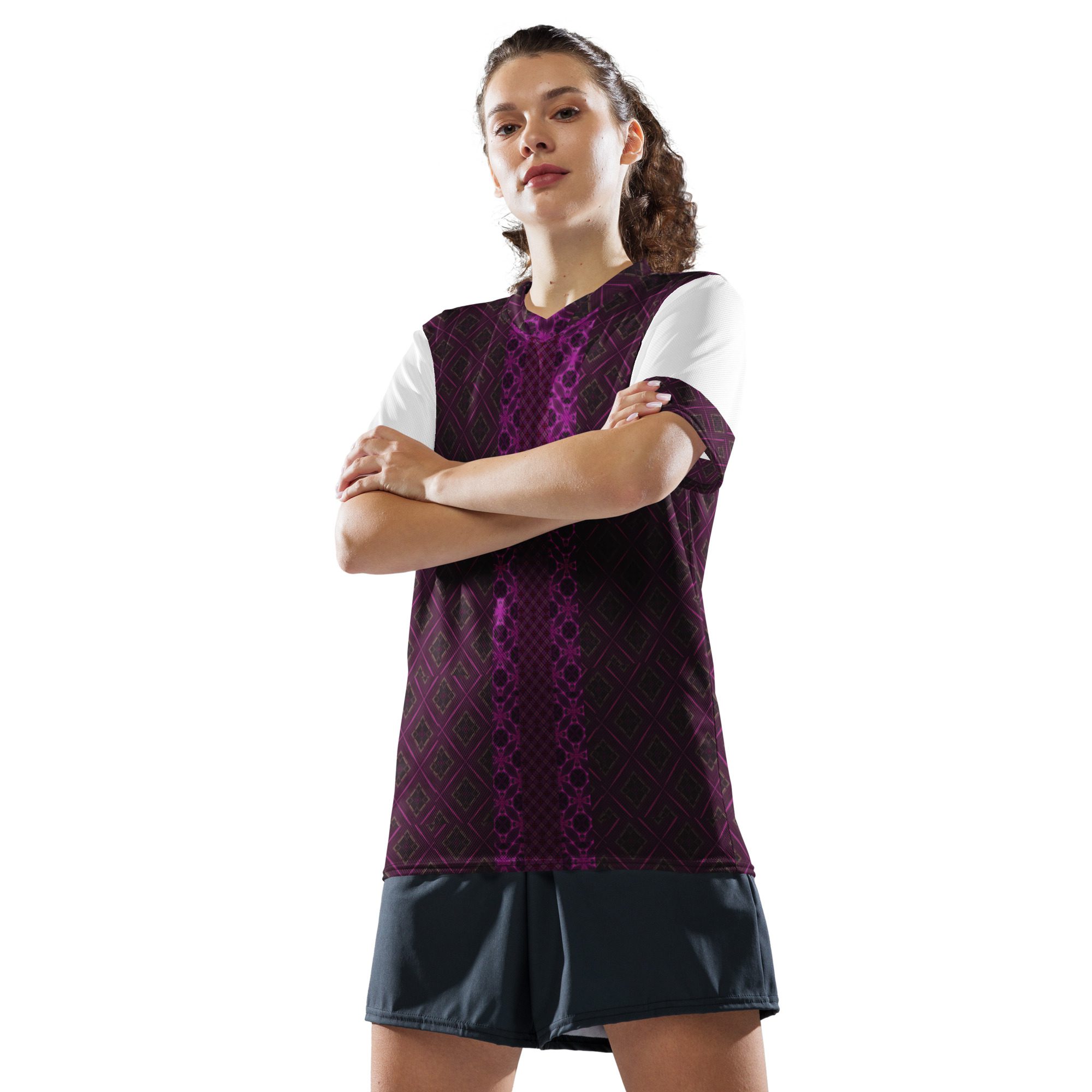 Introducing Violet Gridstream, created by Jaysen Mansfield — a high-energy geometric design brought to life on a sleek recycled unisex sports jersey.