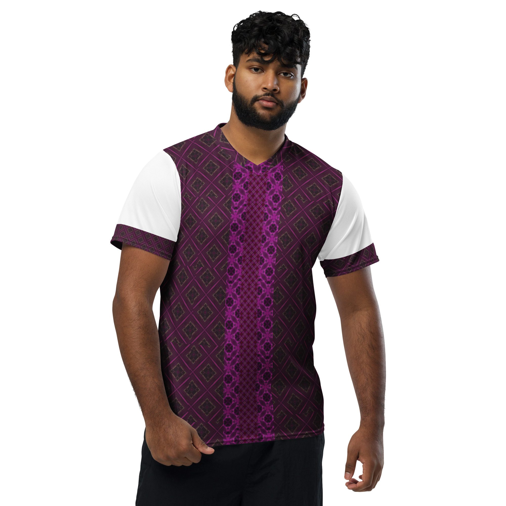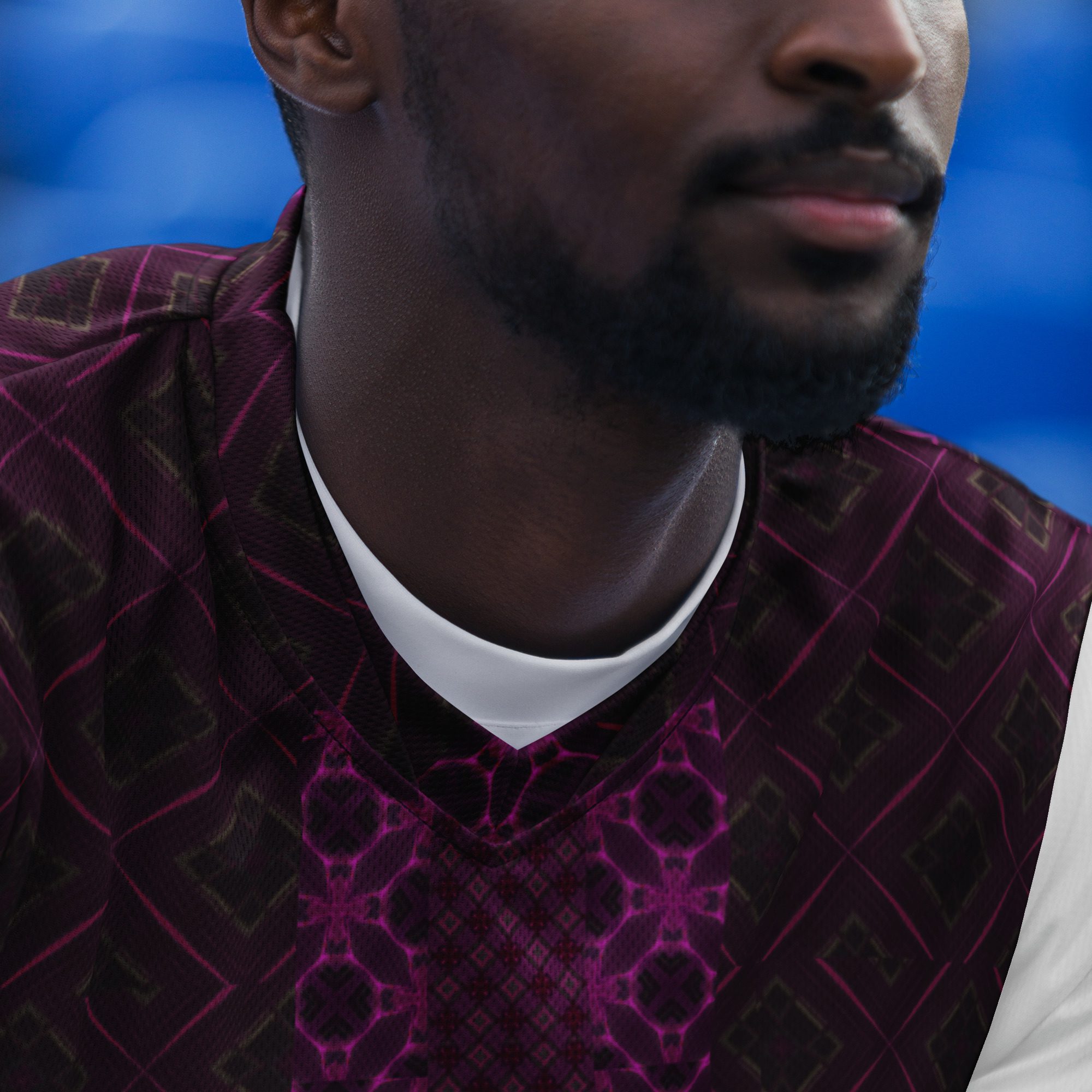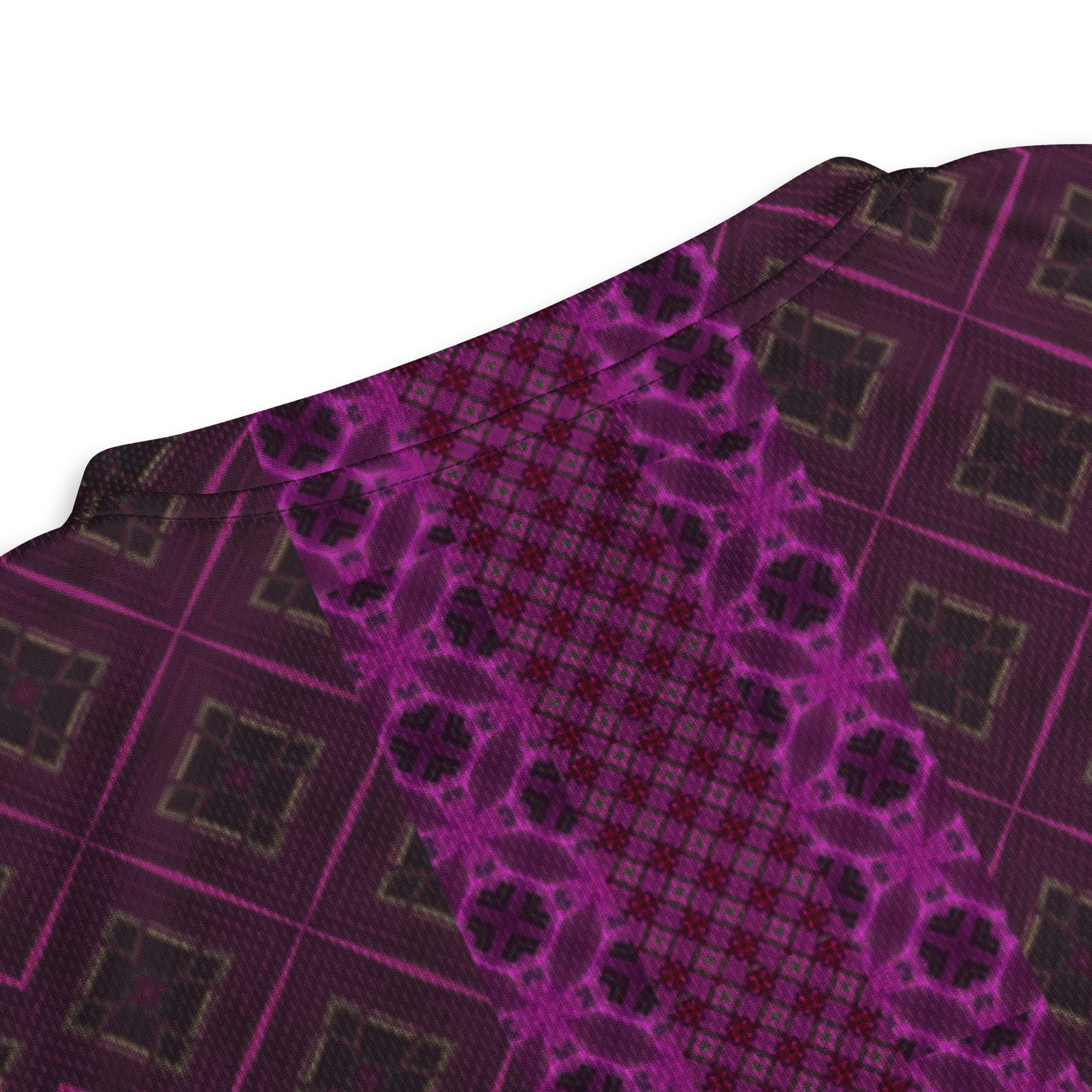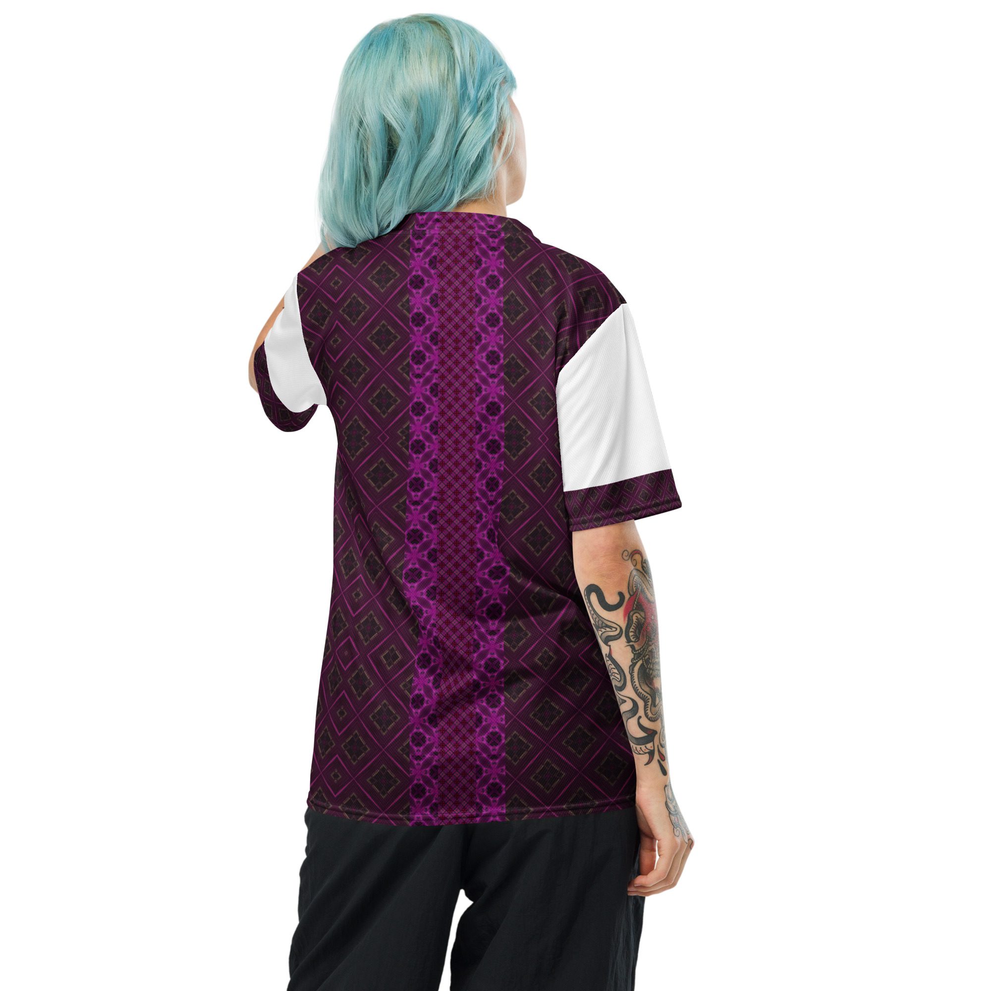 Introducing Violet Gridstream, created by Jaysen Mansfield — a high-energy geometric design brought to life on a sleek recycled unisex sports jersey.