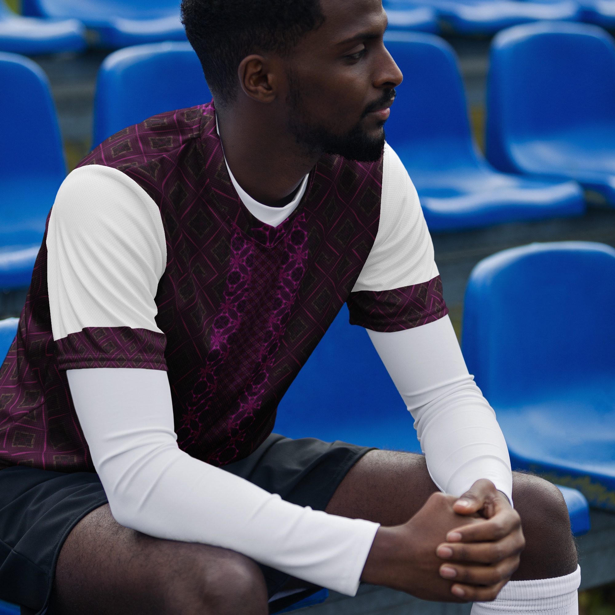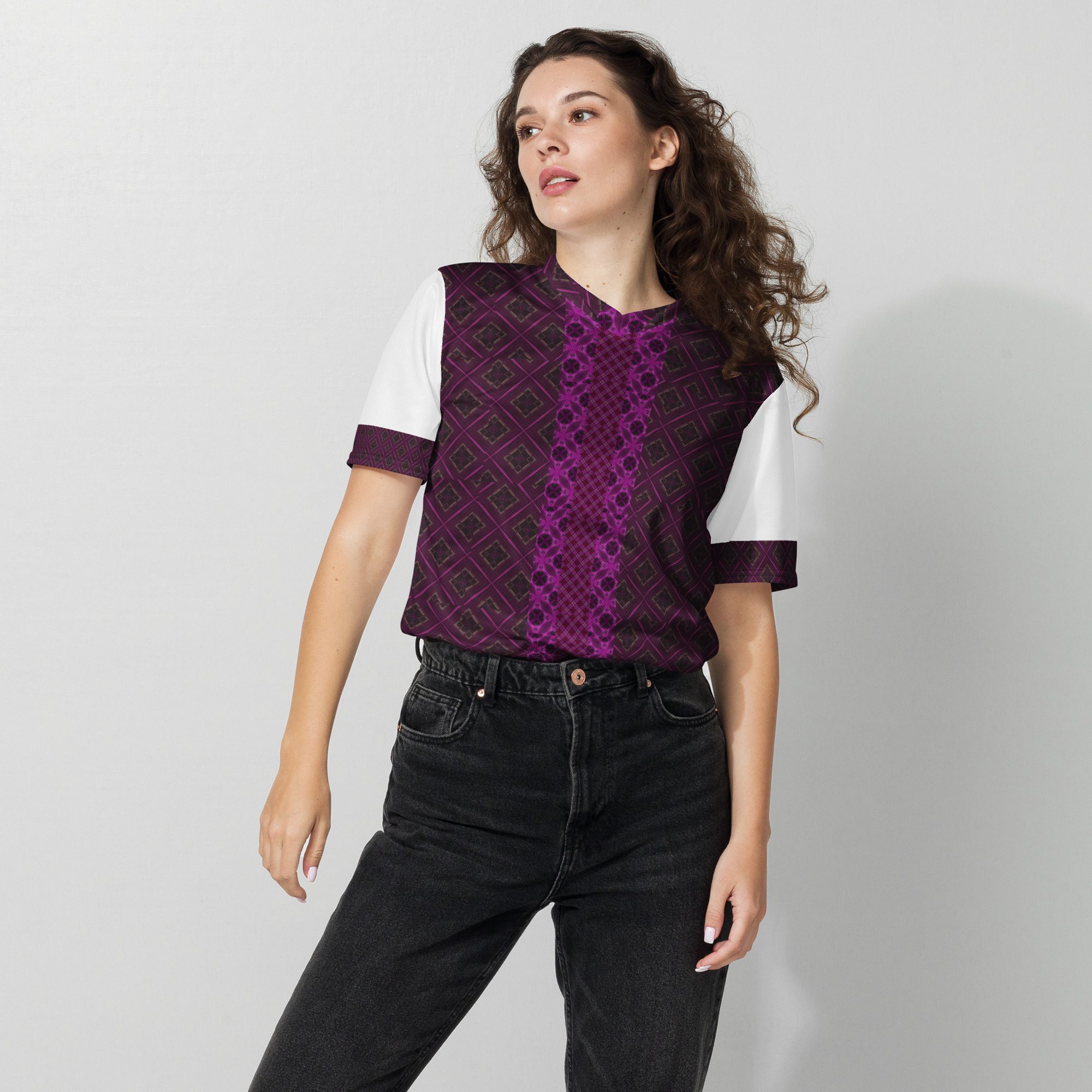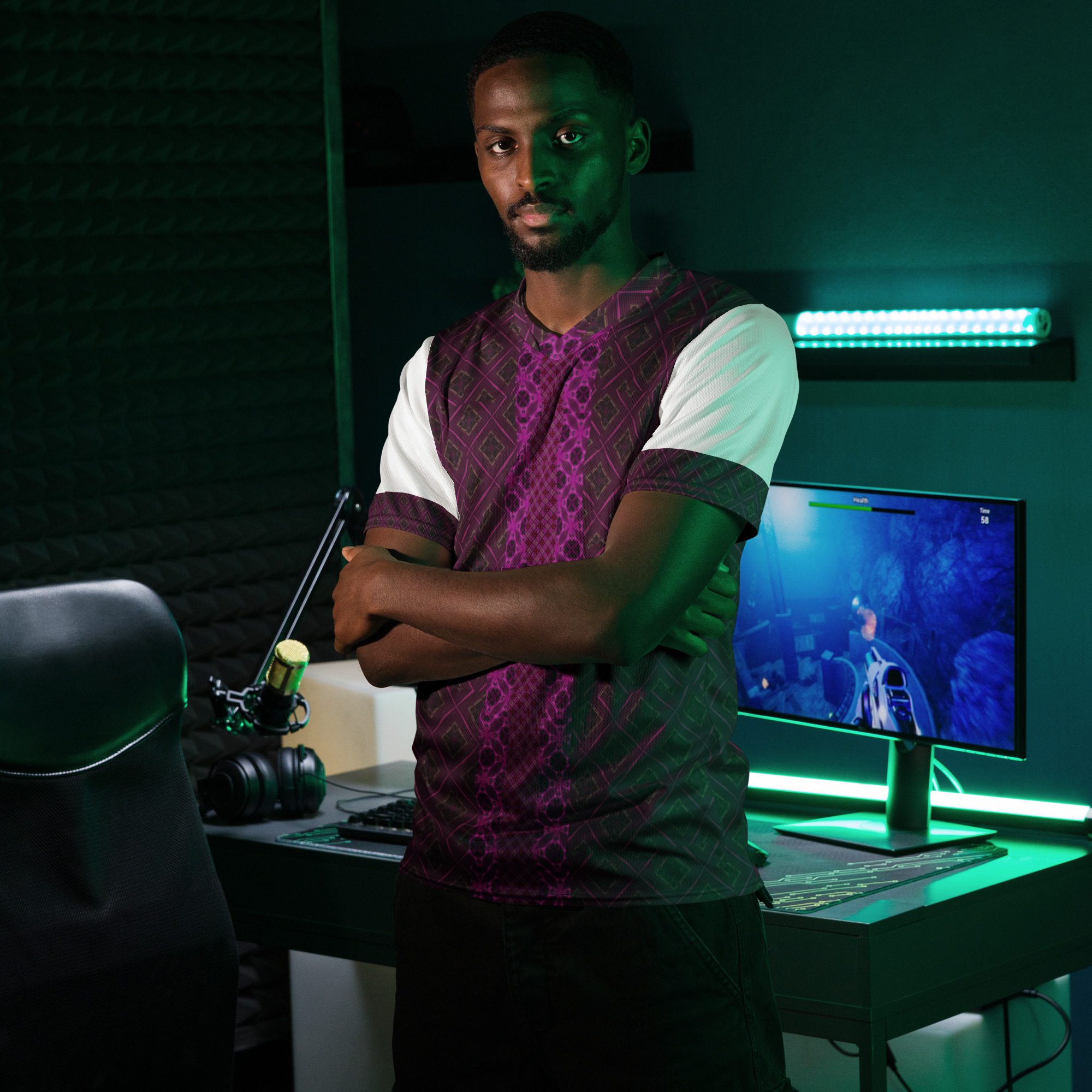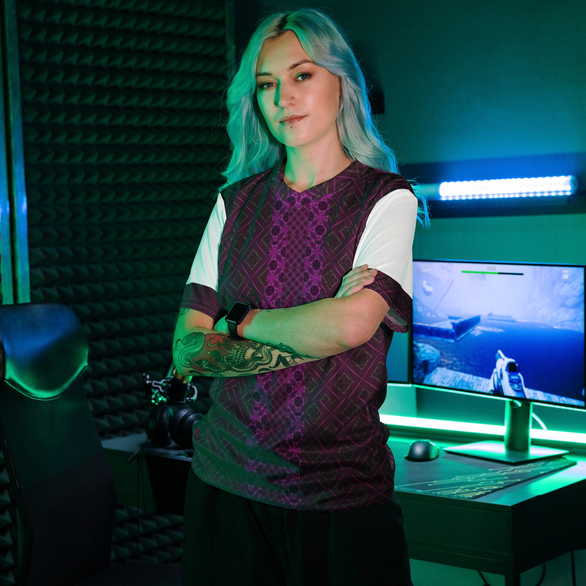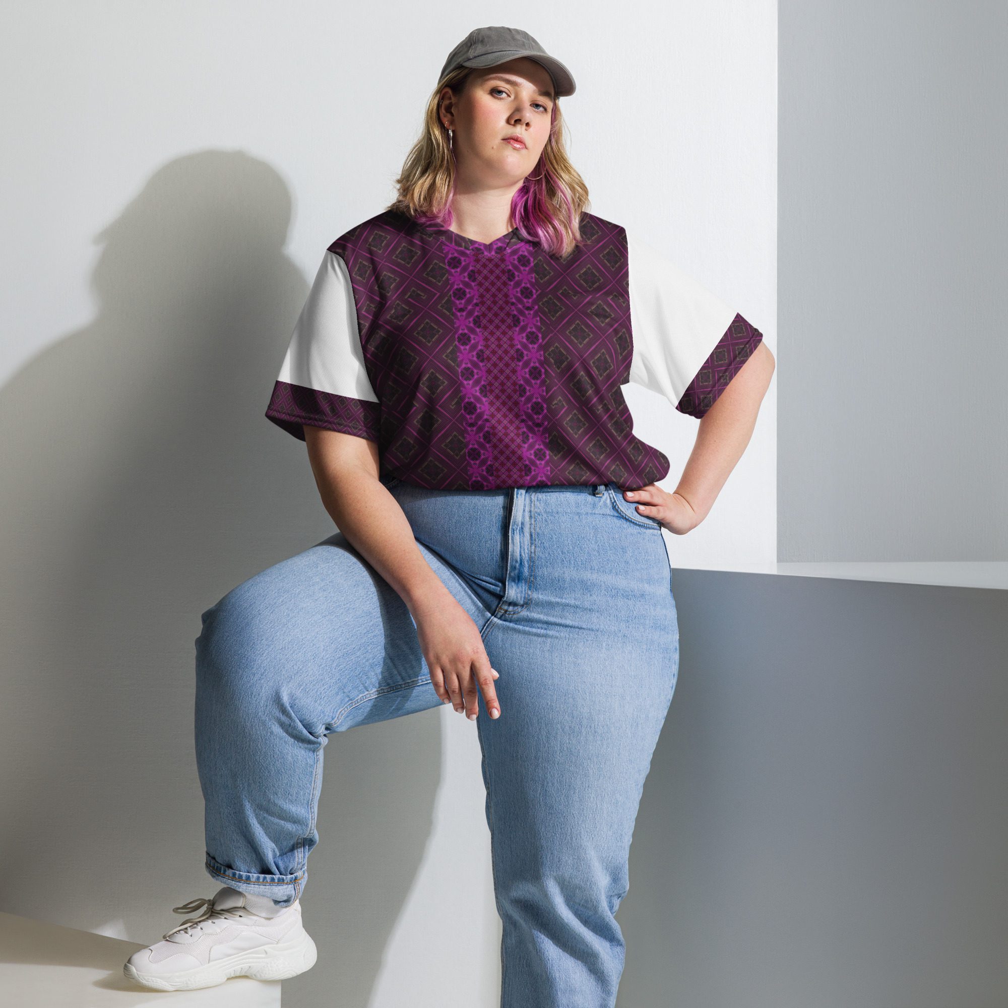 Introducing Violet Gridstream, created by Jaysen Mansfield — a high-energy geometric design brought to life on a sleek recycled unisex sports jersey.