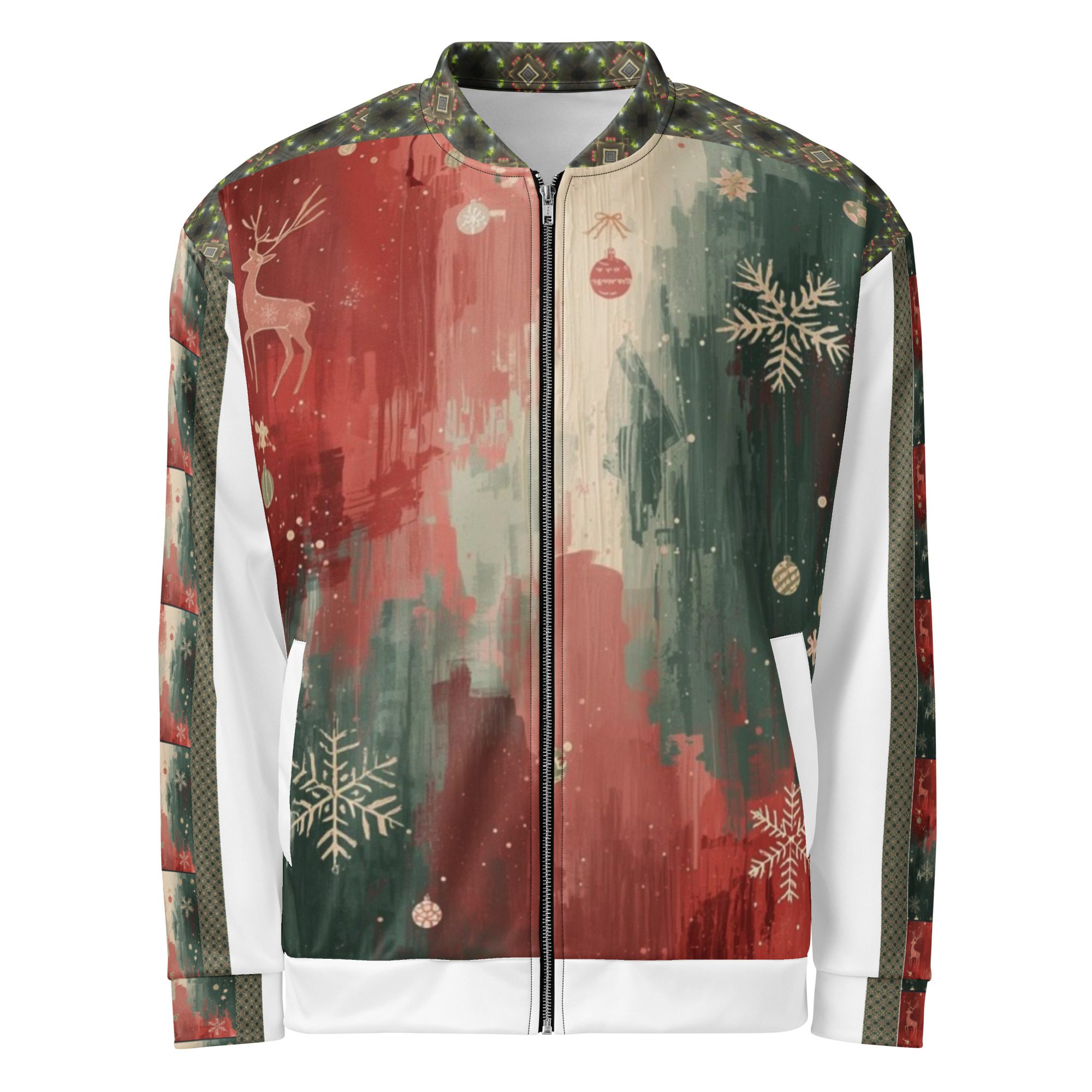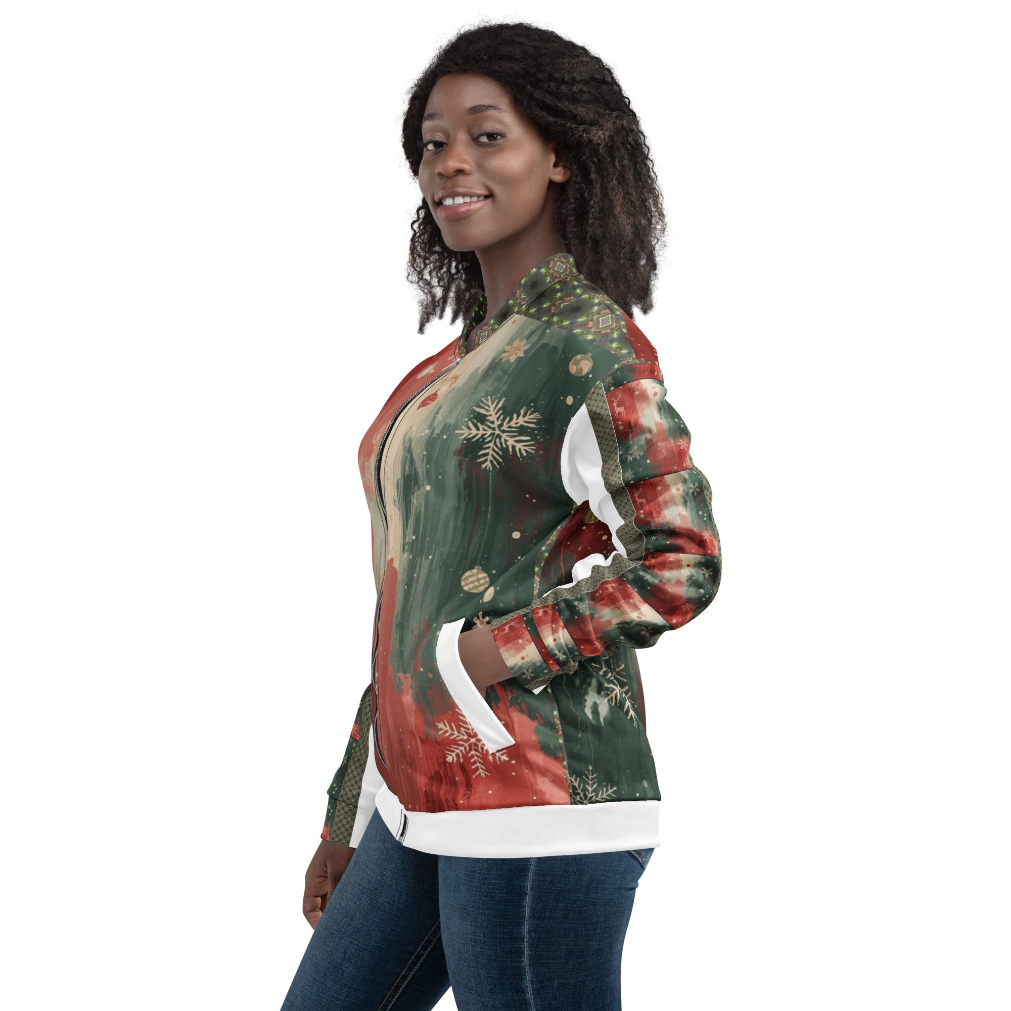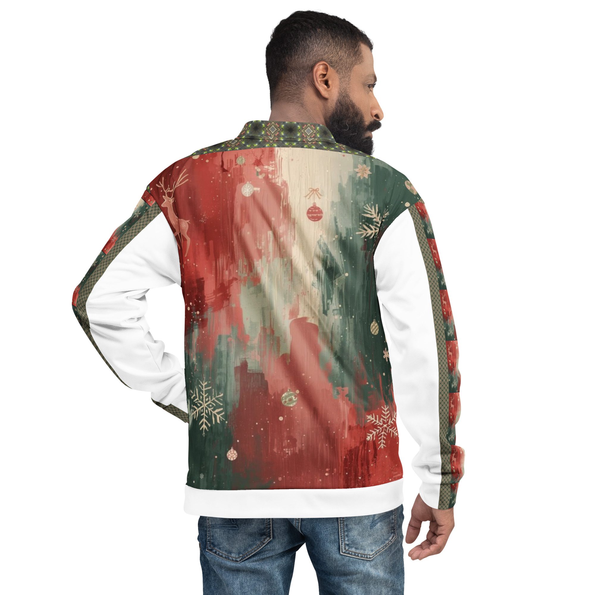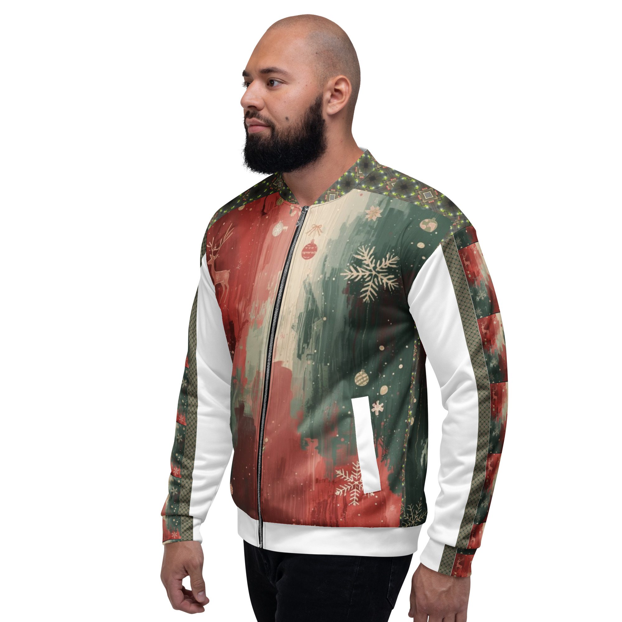 Created by artist Jaysen Mansfield, this jacket blends comfort with statement-making art. The all-over print elevates your winter wardrobe, while the classic bomber silhouette keeps it effortlessly wearable. Lightweight yet cozy, it’s perfect for layering during chilly days, festive nights, or anytime you want to stand out with modern seasonal flair.
