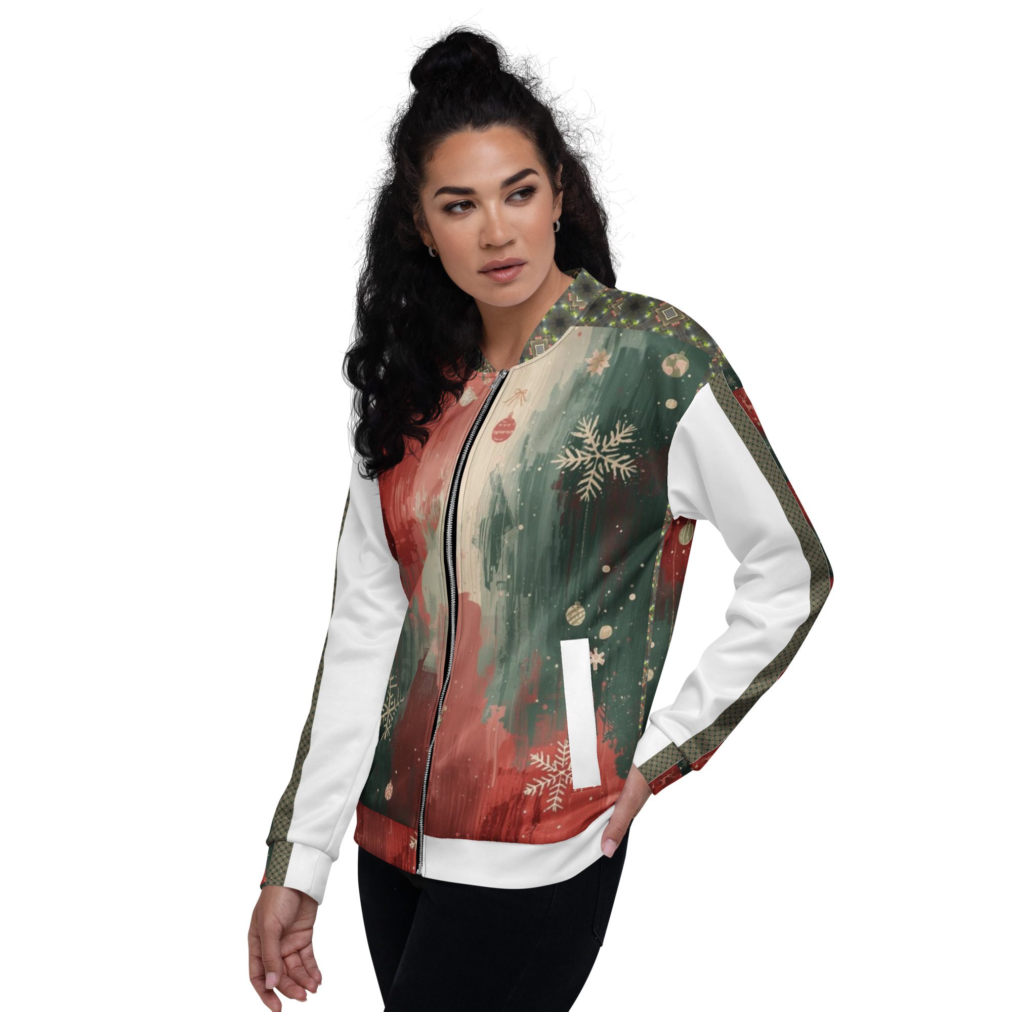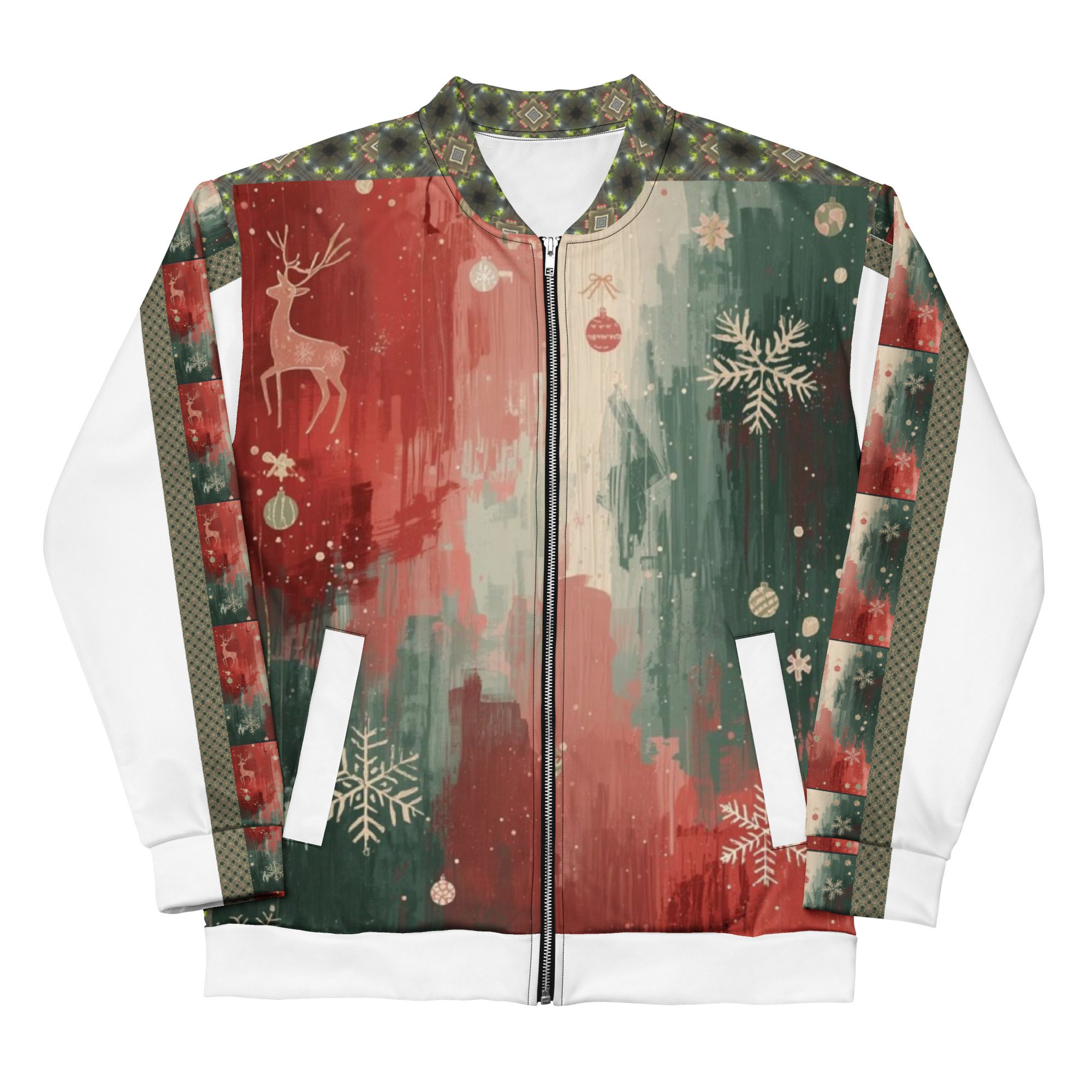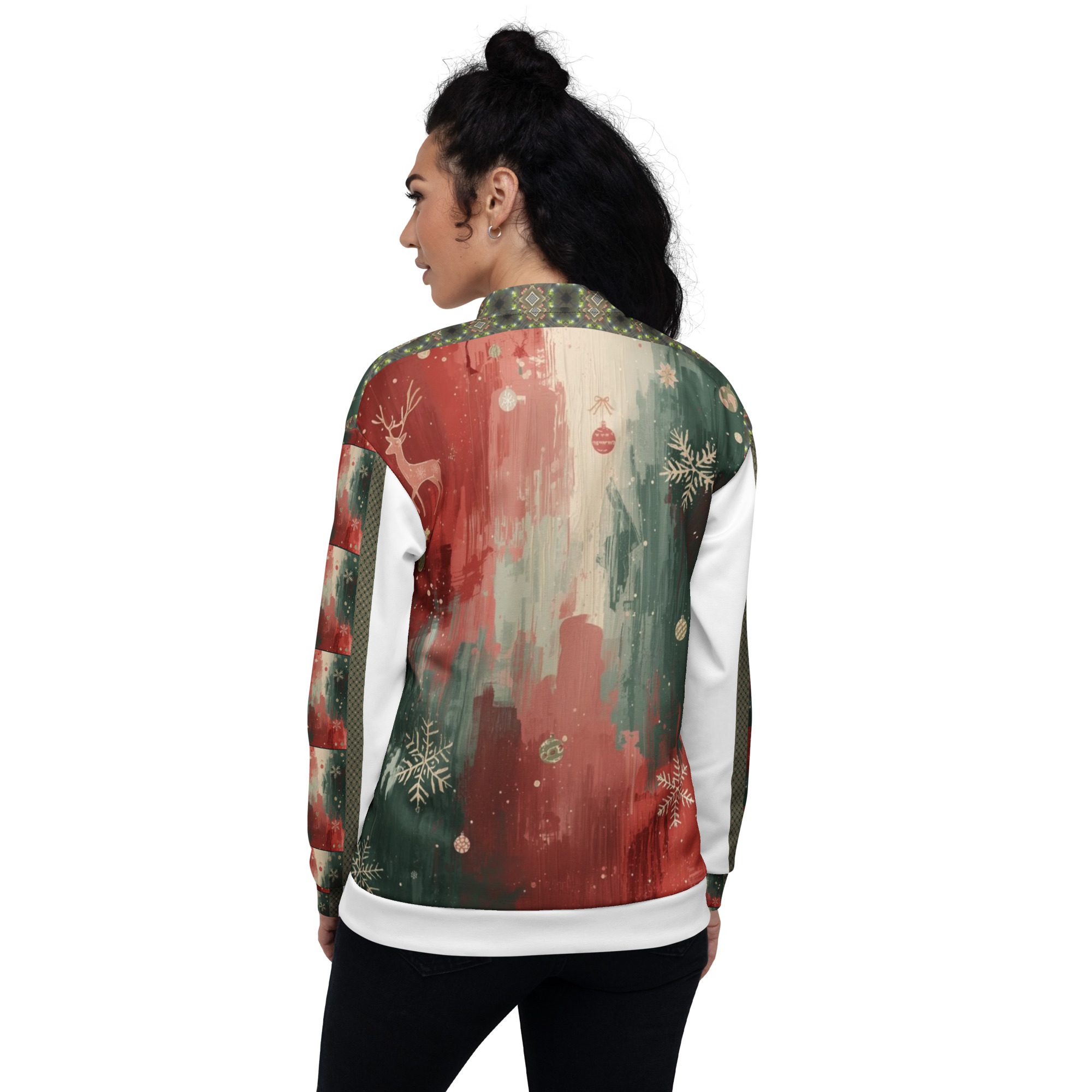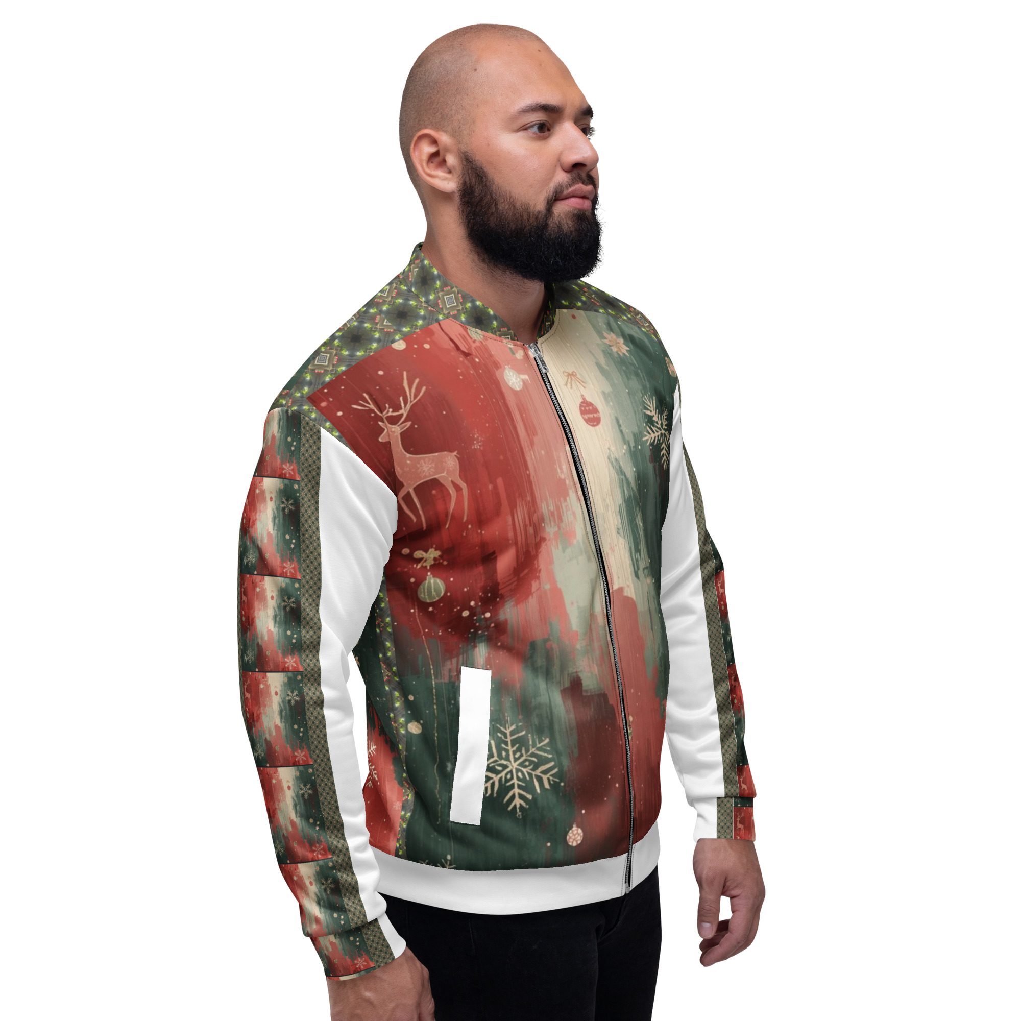 Created by artist Jaysen Mansfield, this jacket blends comfort with statement-making art. The all-over print elevates your winter wardrobe, while the classic bomber silhouette keeps it effortlessly wearable. Lightweight yet cozy, it’s perfect for layering during chilly days, festive nights, or anytime you want to stand out with modern seasonal flair.