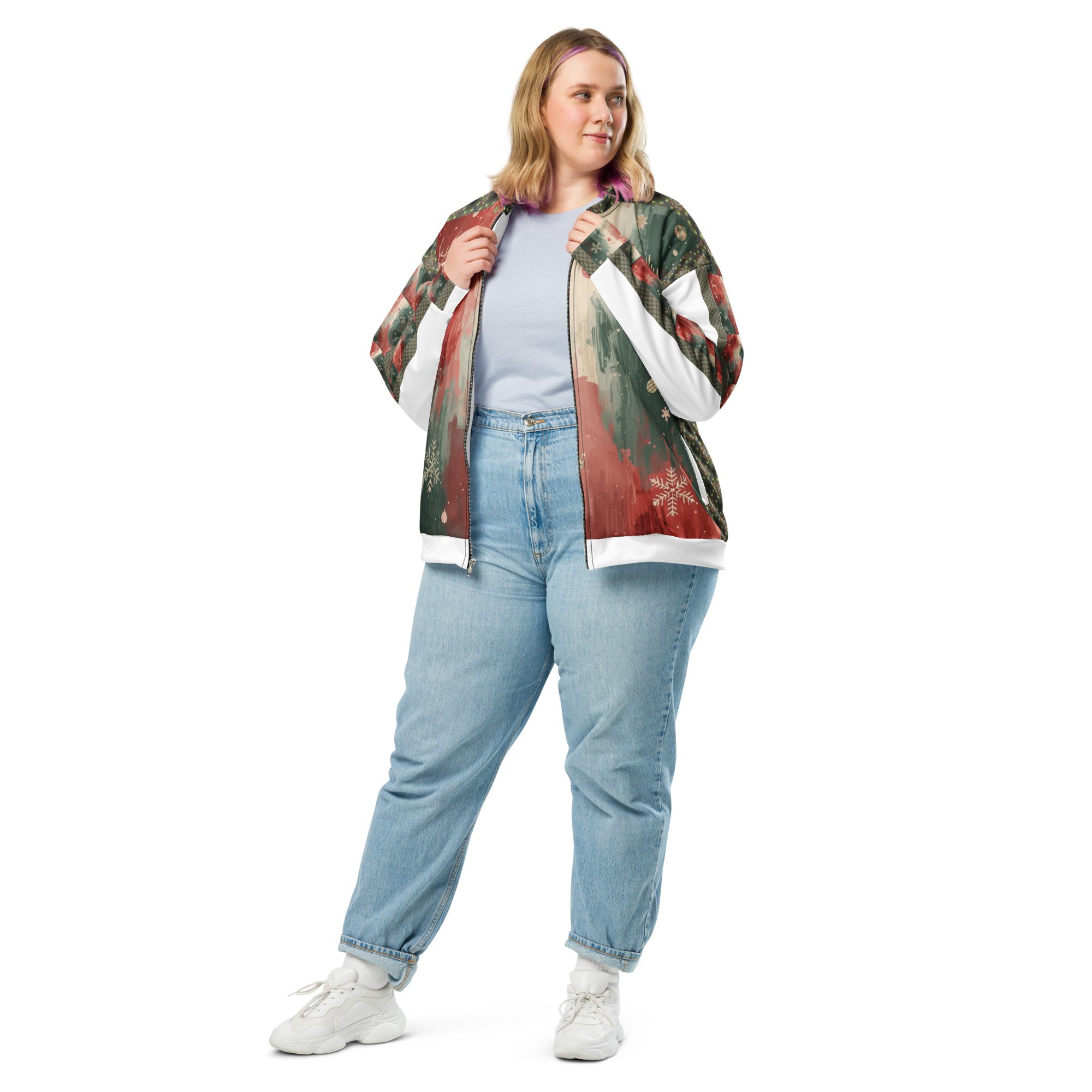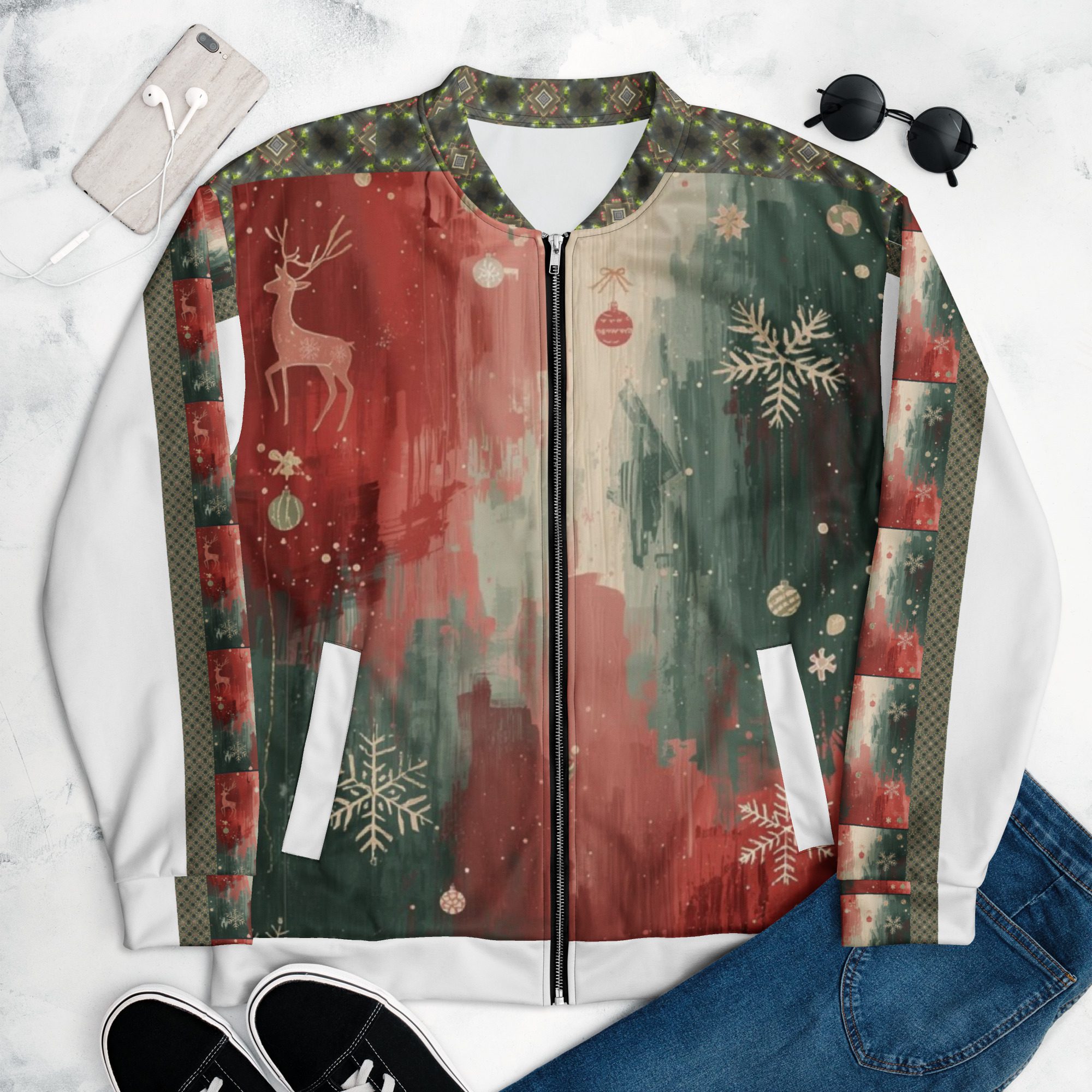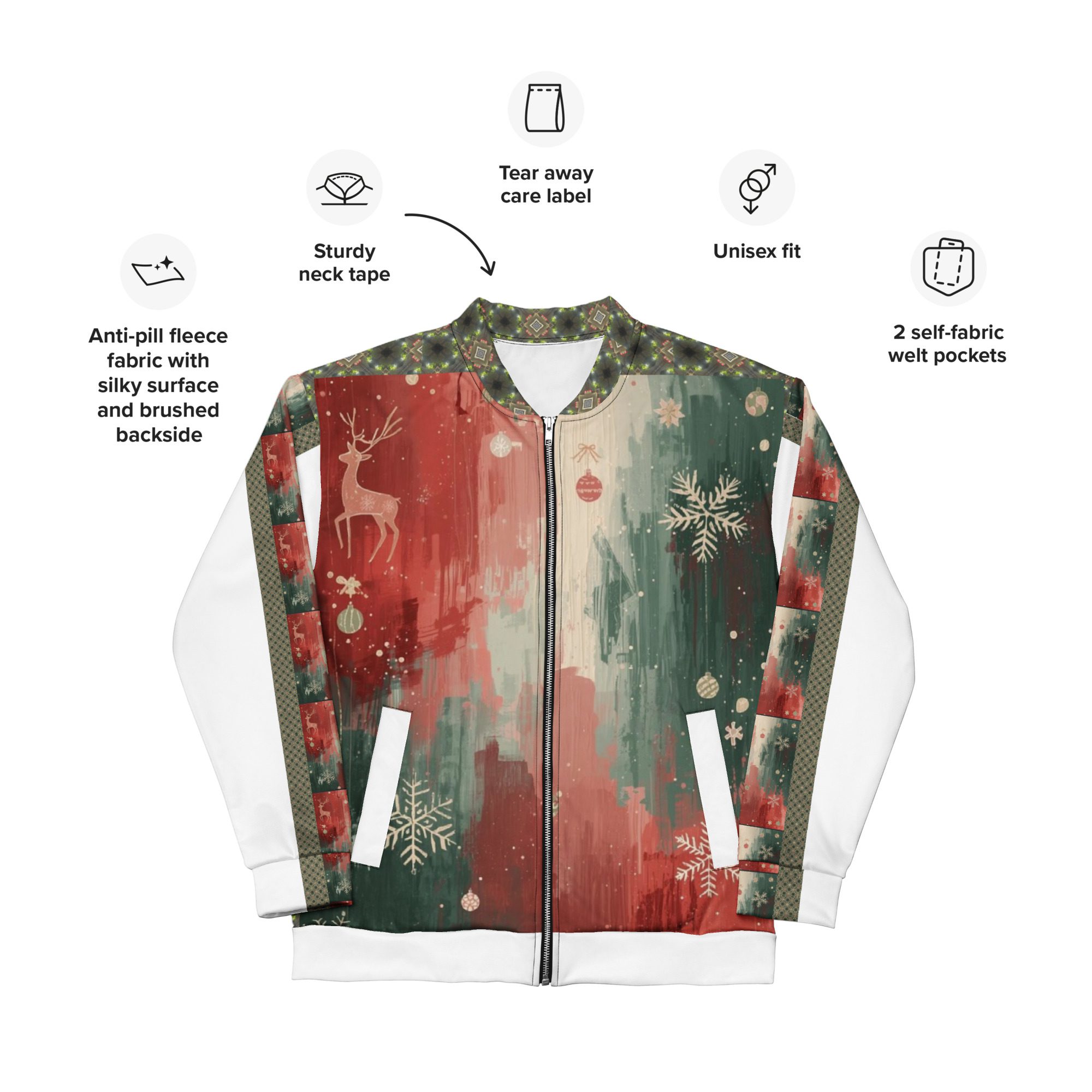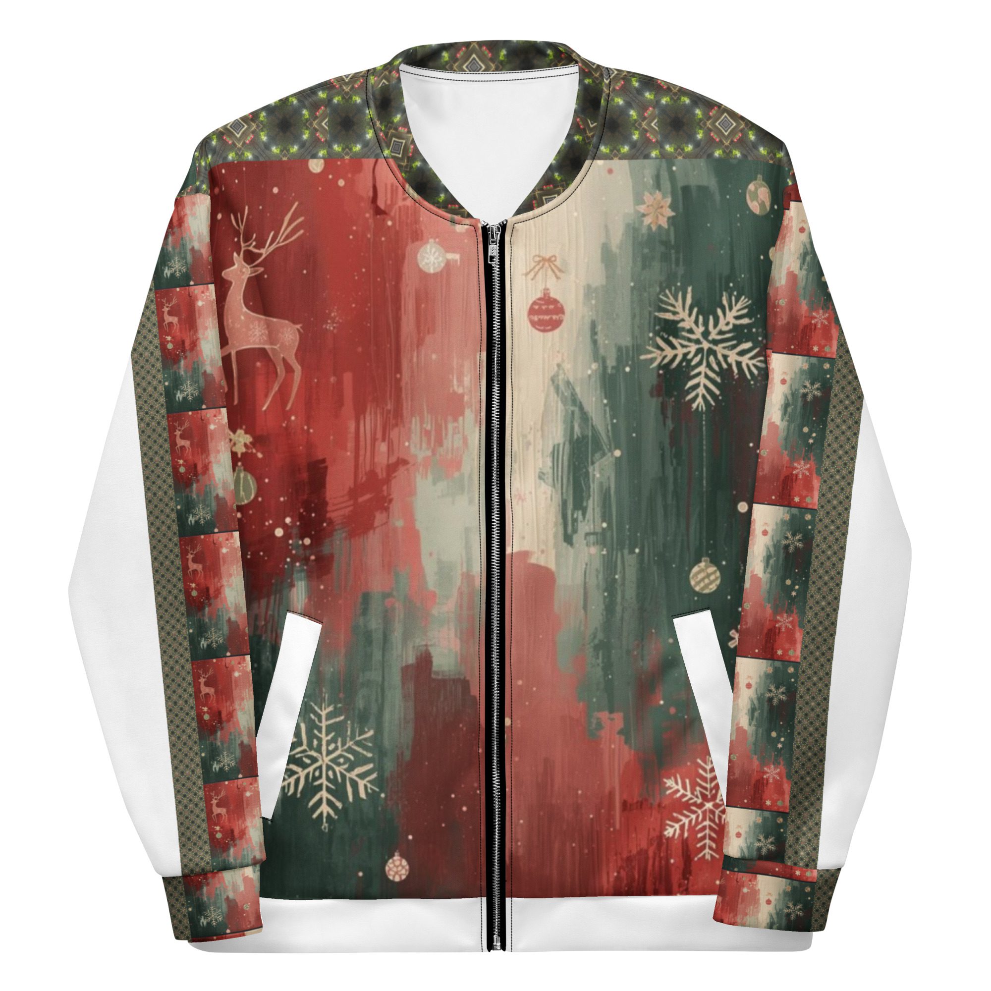 Created by artist Jaysen Mansfield, this jacket blends comfort with statement-making art. The all-over print elevates your winter wardrobe, while the classic bomber silhouette keeps it effortlessly wearable. Lightweight yet cozy, it’s perfect for layering during chilly days, festive nights, or anytime you want to stand out with modern seasonal flair.