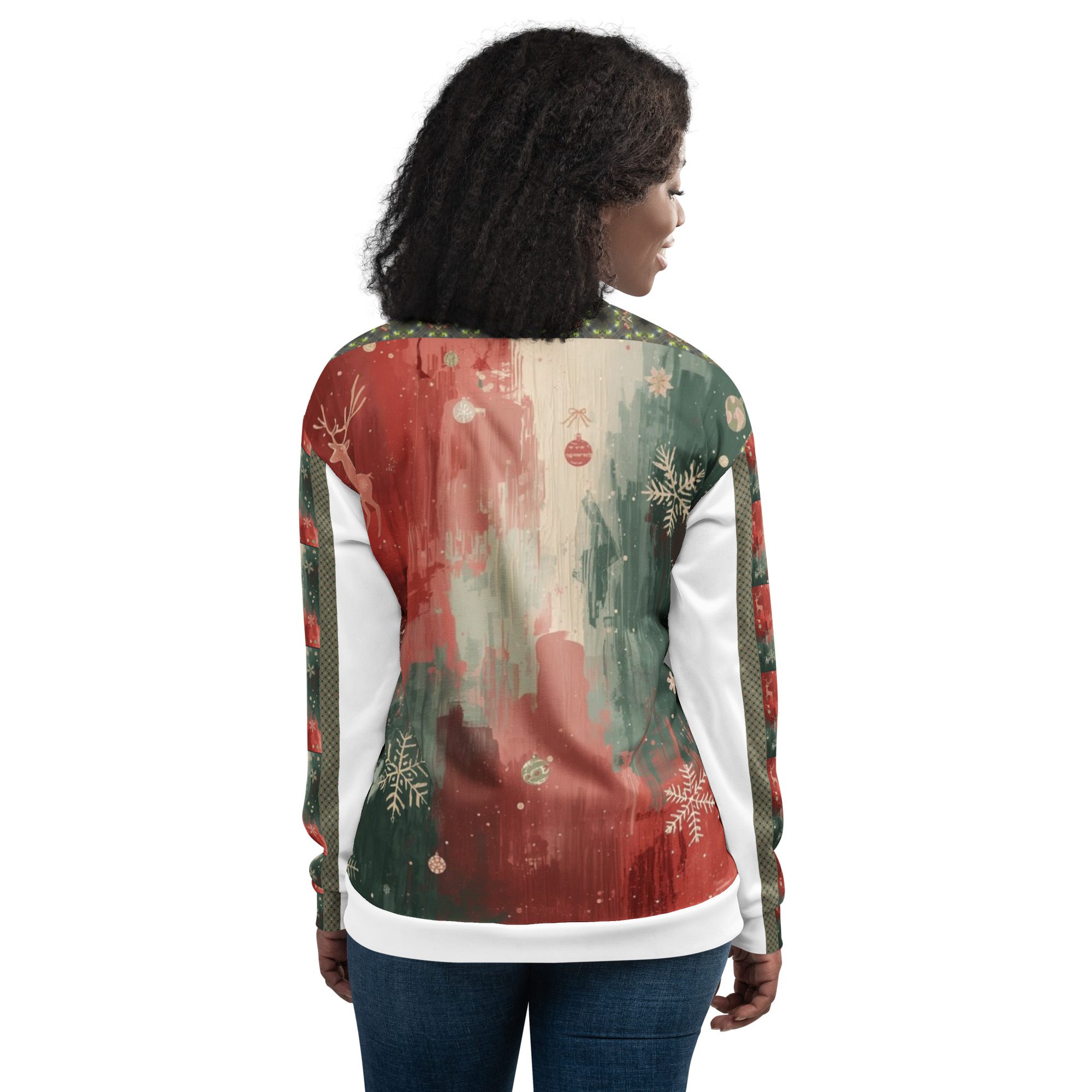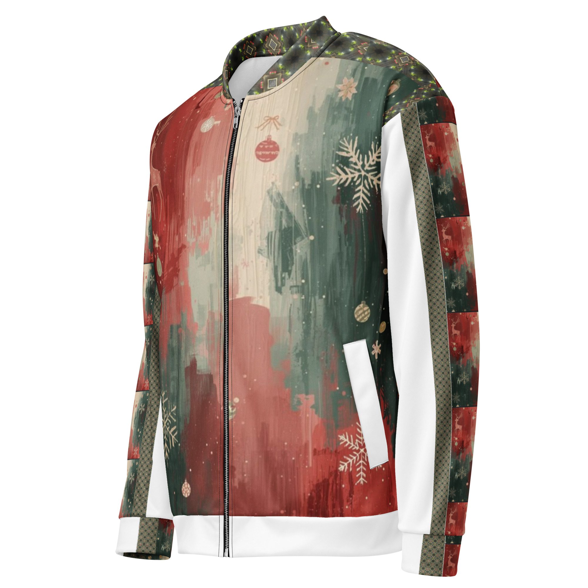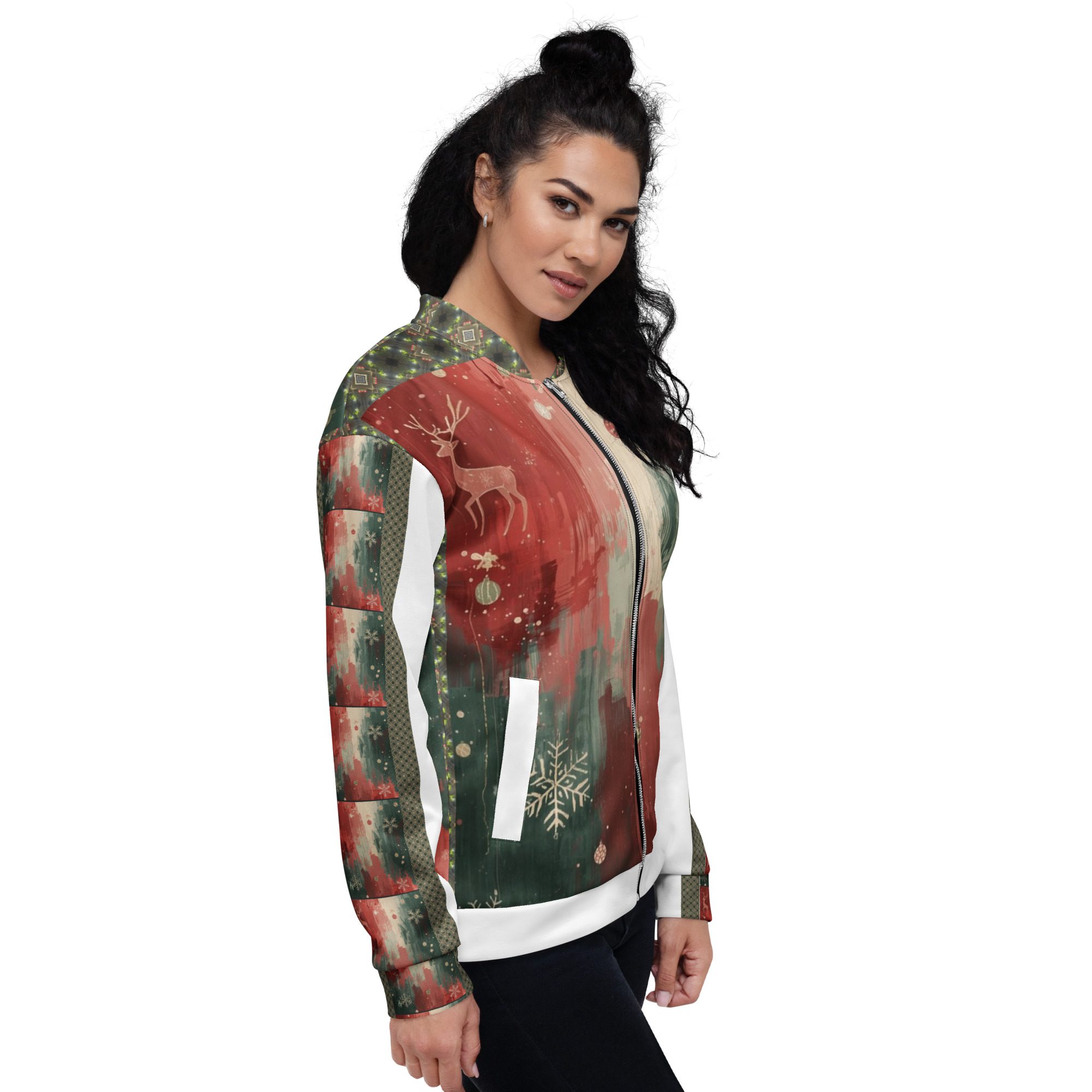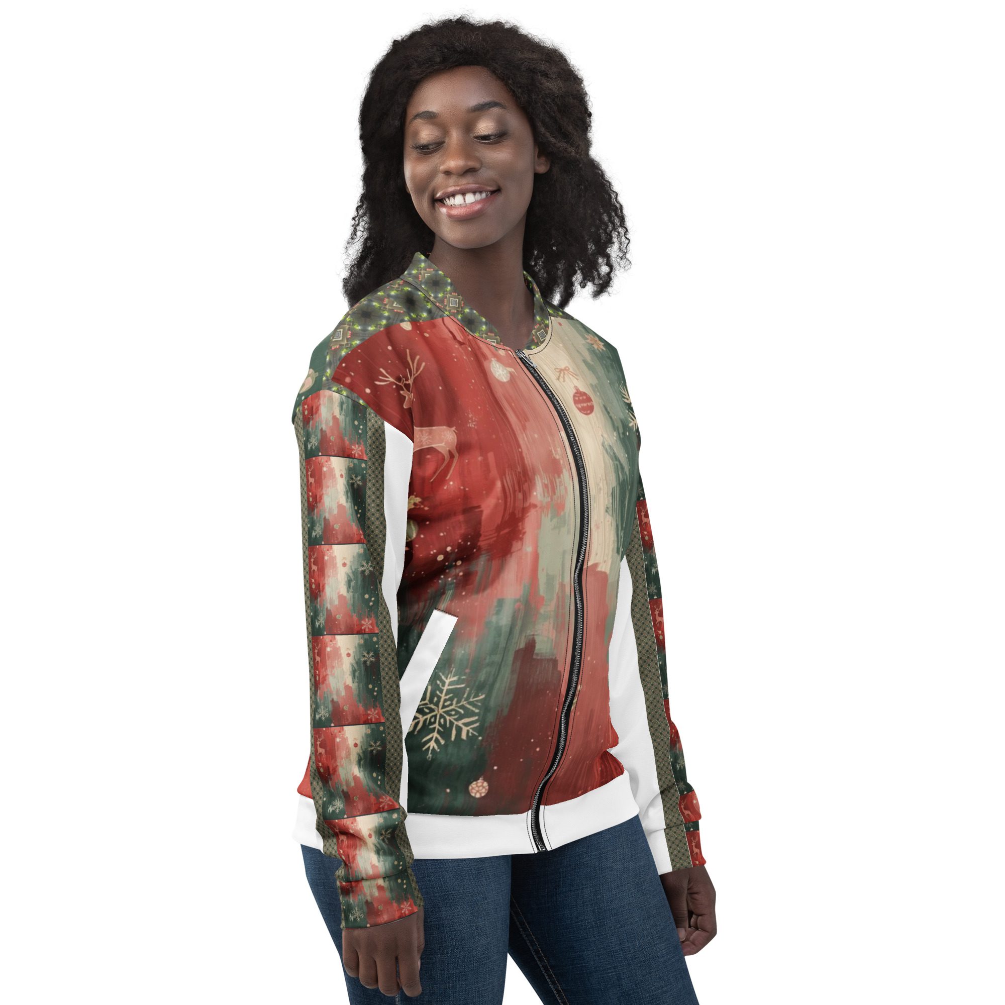 Created by artist Jaysen Mansfield, this jacket blends comfort with statement-making art. The all-over print elevates your winter wardrobe, while the classic bomber silhouette keeps it effortlessly wearable. Lightweight yet cozy, it’s perfect for layering during chilly days, festive nights, or anytime you want to stand out with modern seasonal flair.
