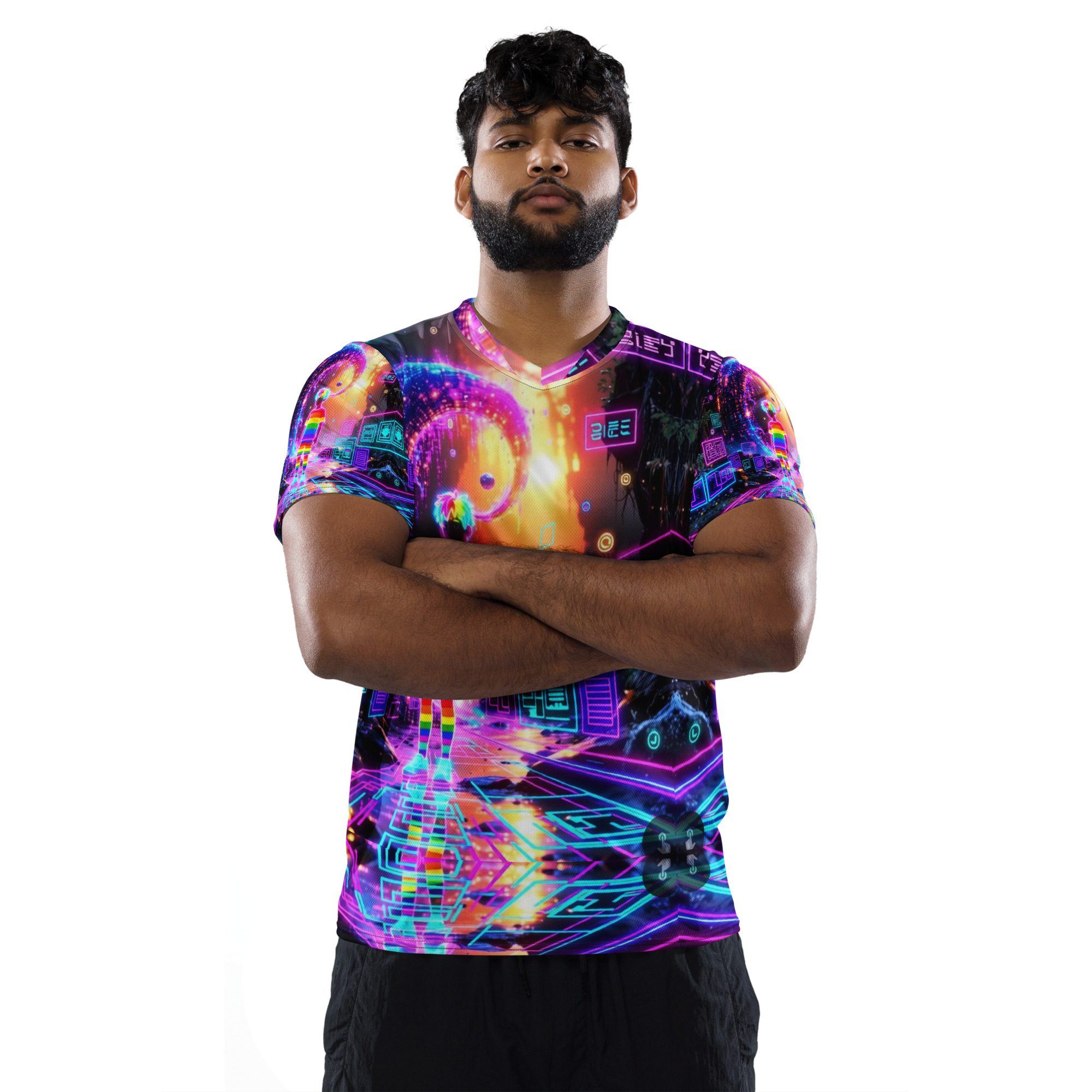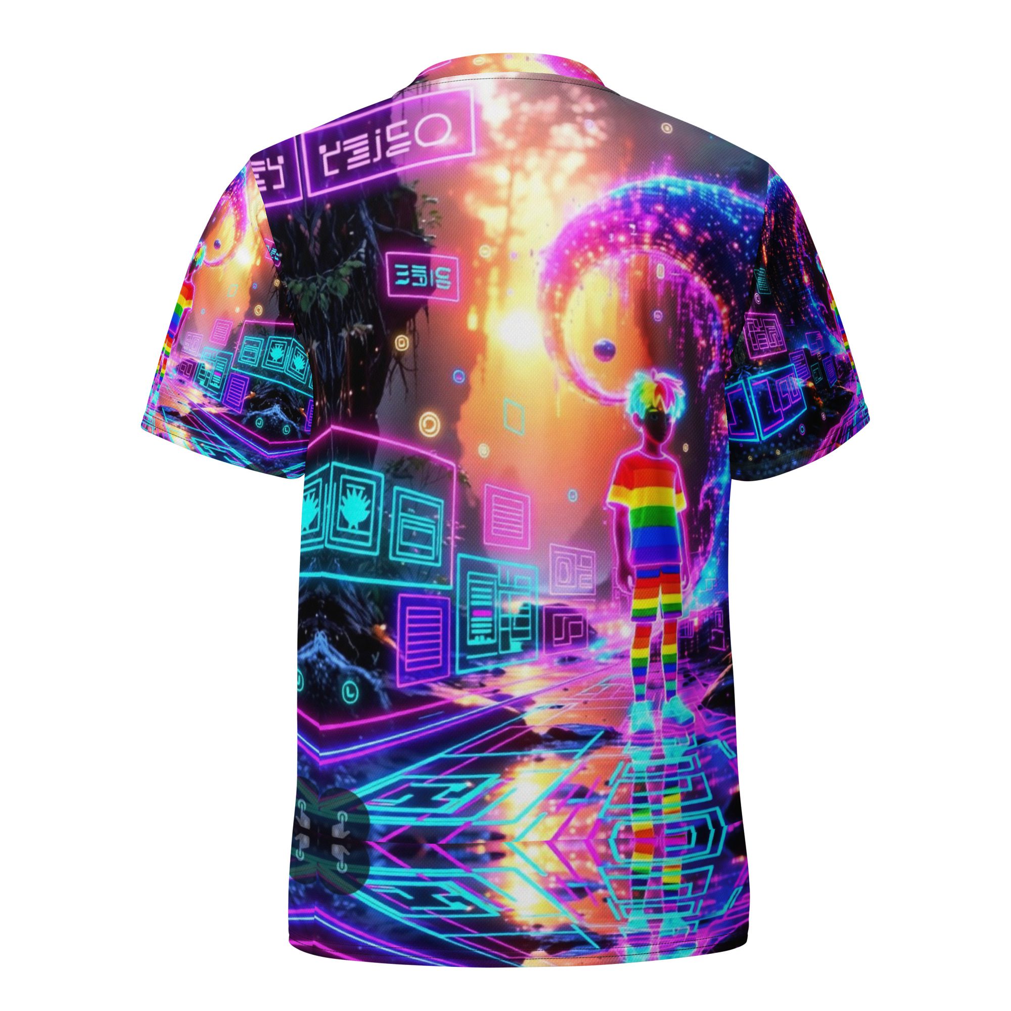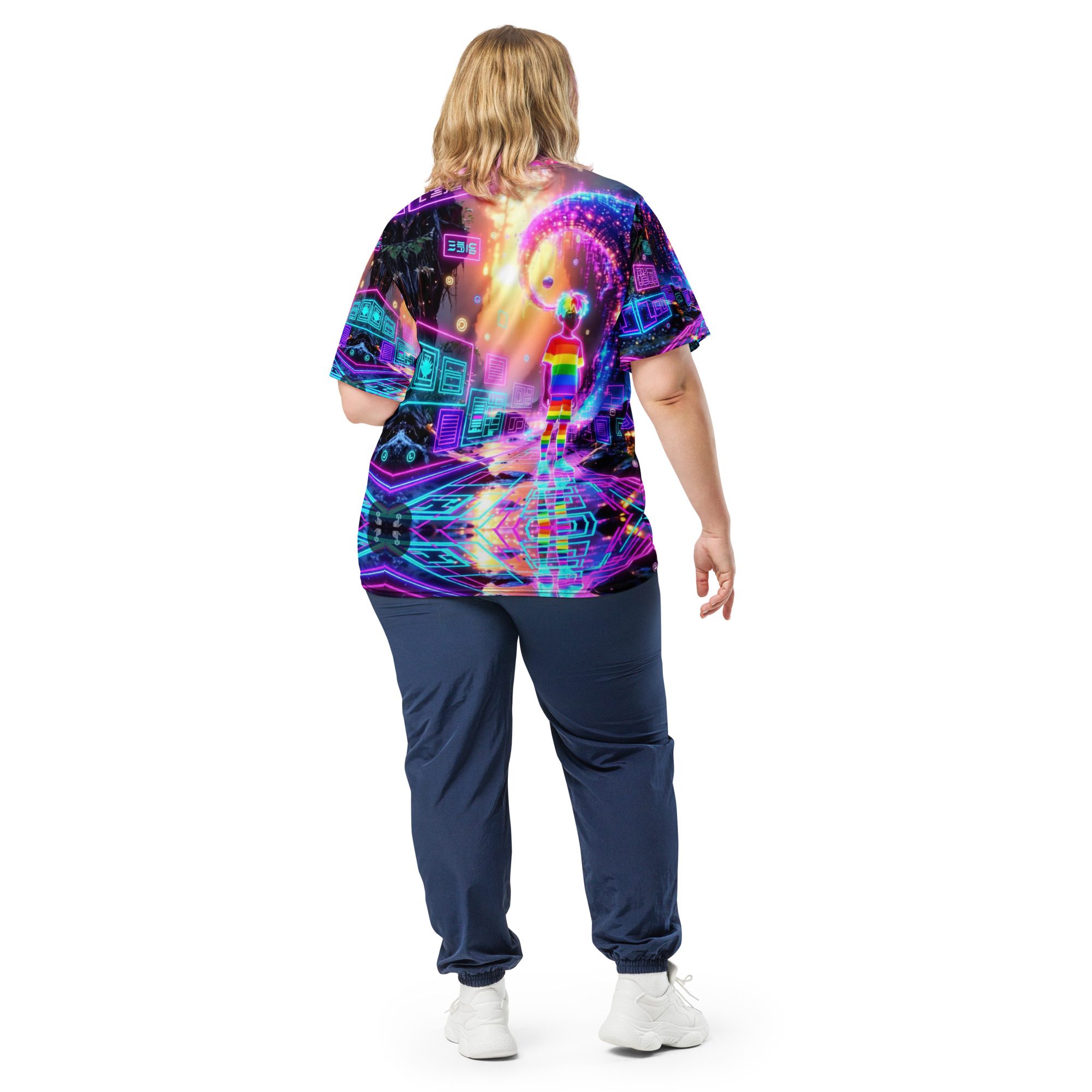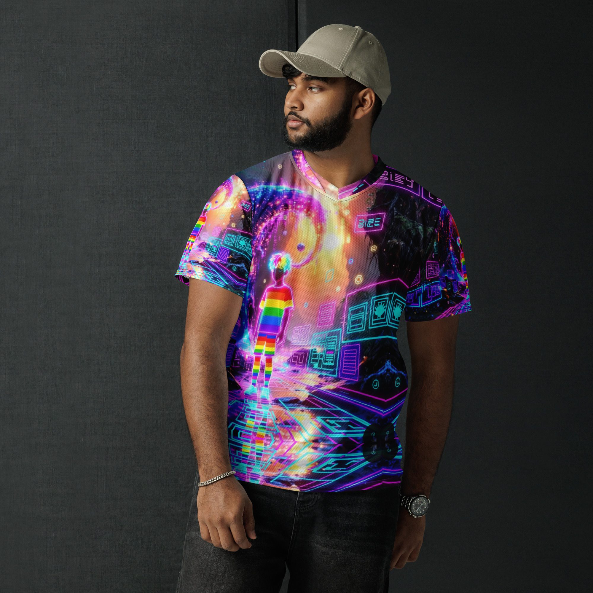This recycled unisex sports jersey delivers lightweight comfort with powerful visual impact. Designed for breathability and movement, it works effortlessly as a standout piece or layered into a full Y2K-inspired streetwear look.