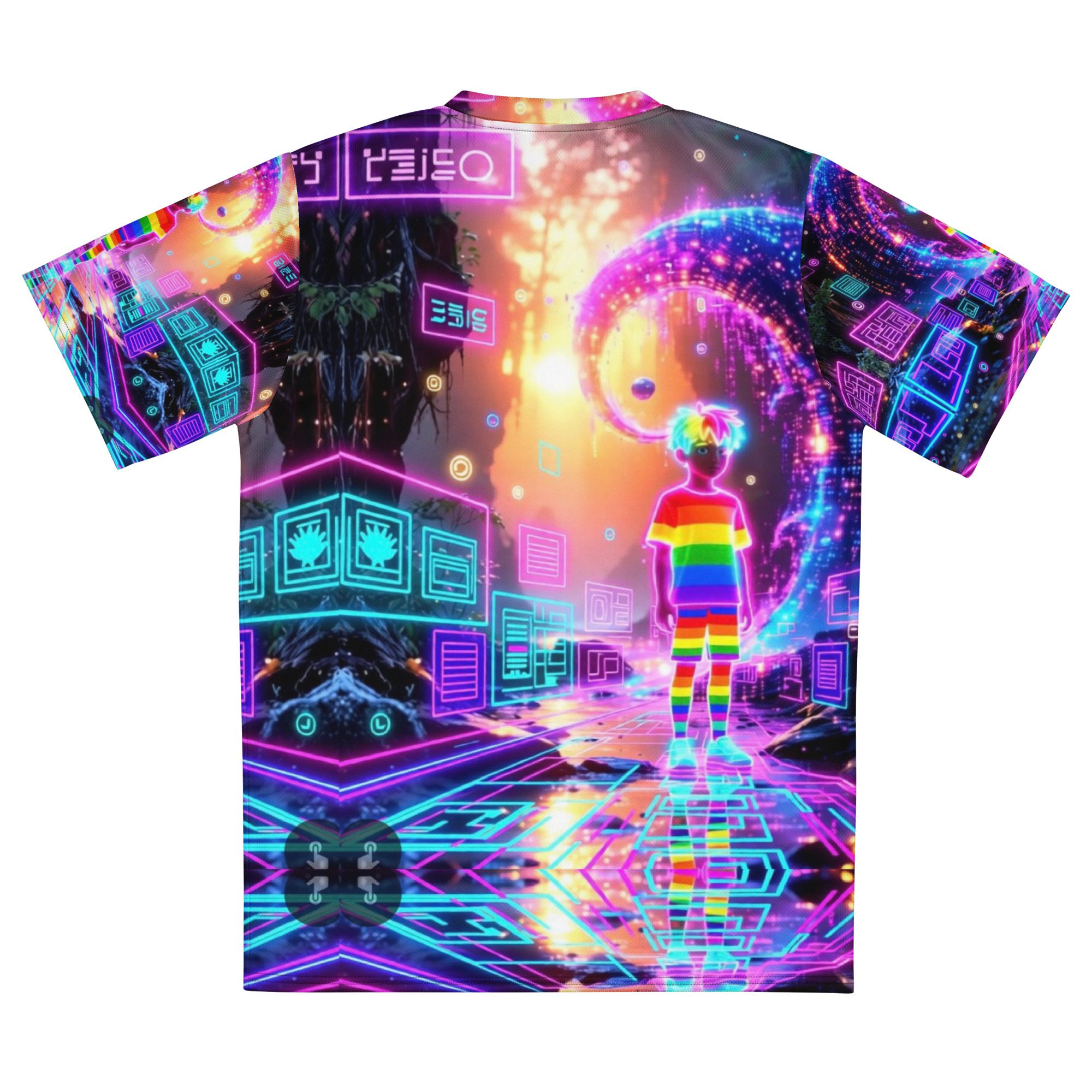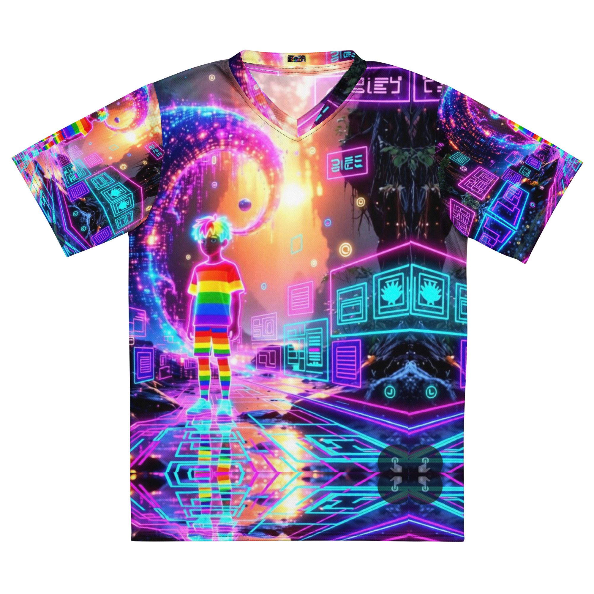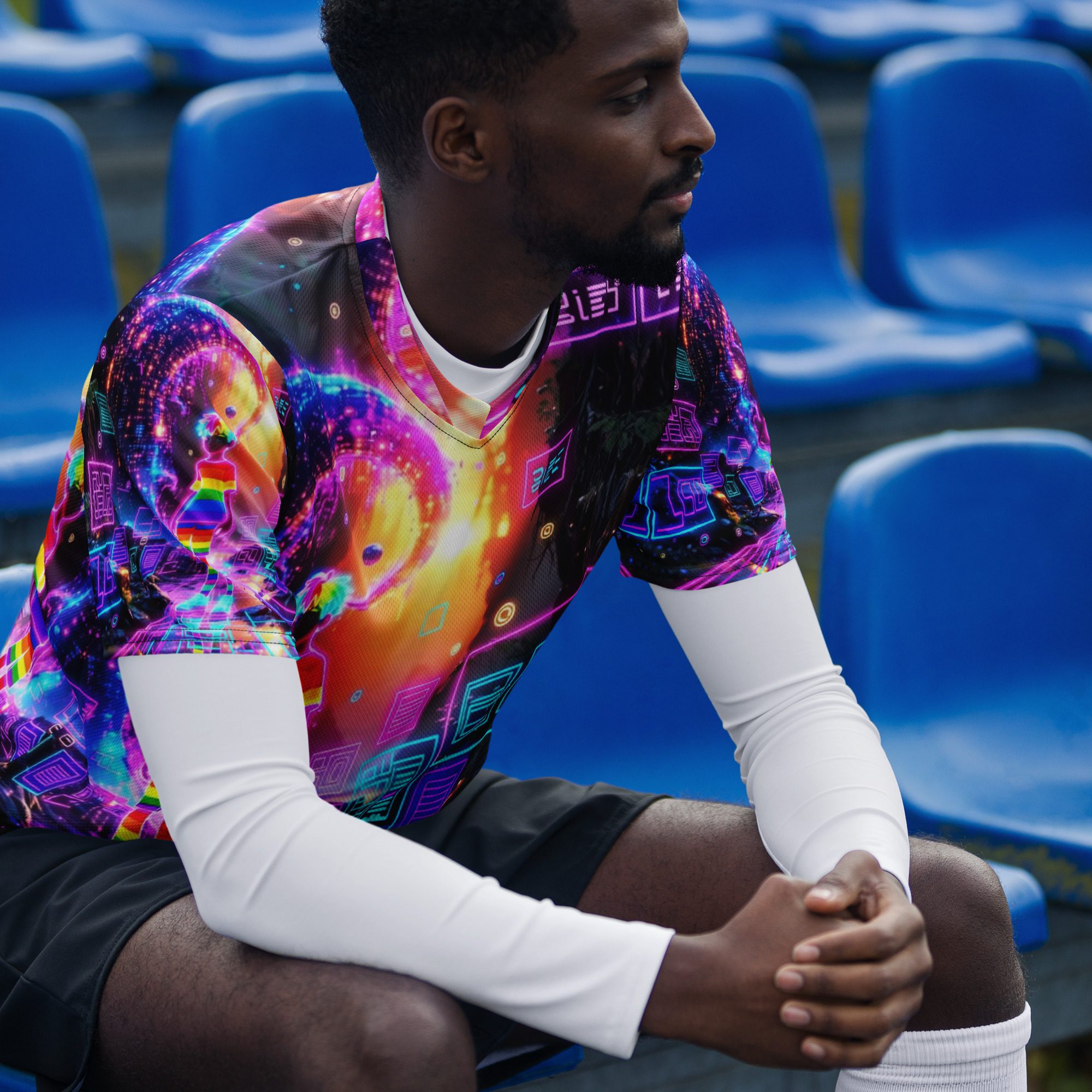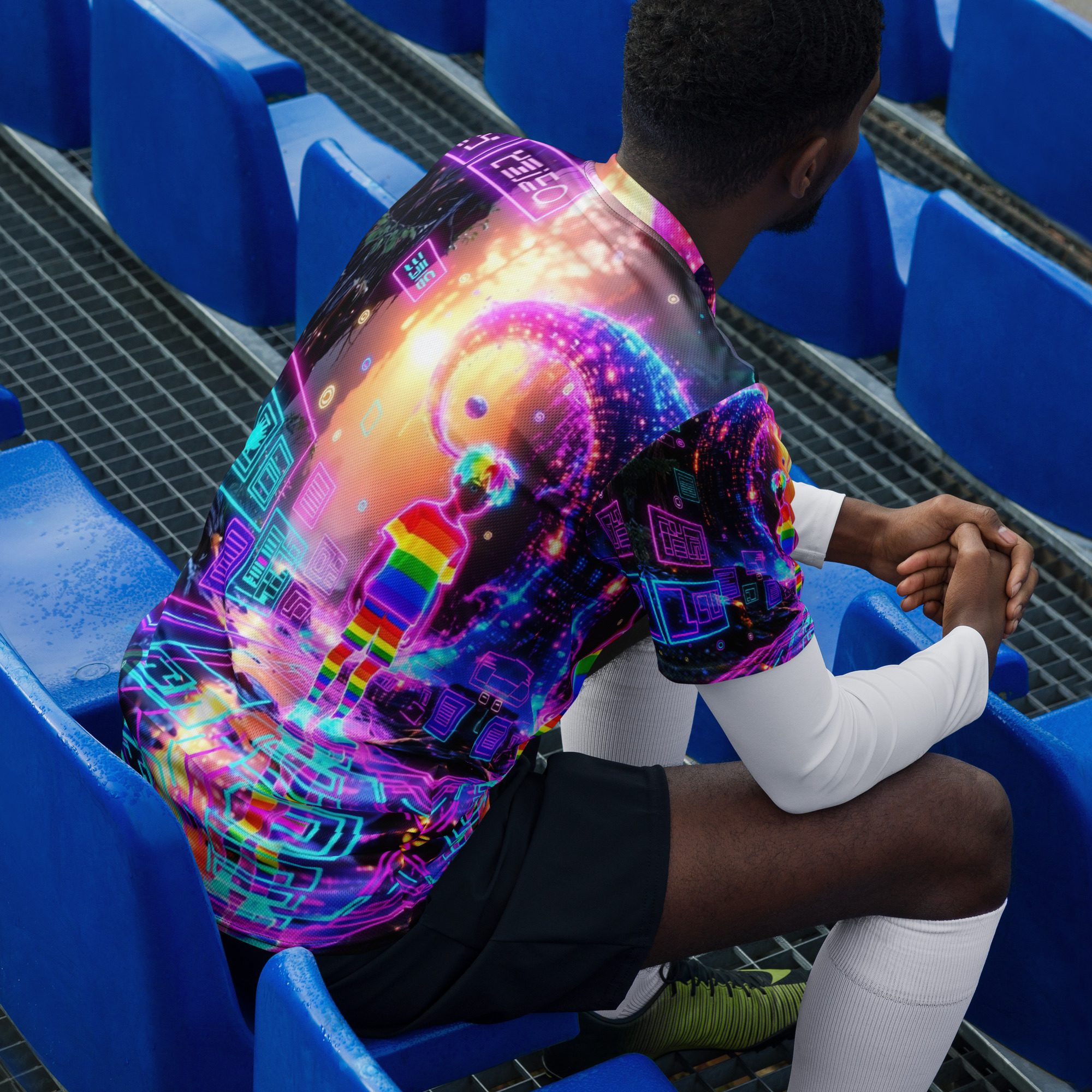 This recycled unisex sports jersey delivers lightweight comfort with powerful visual impact. Designed for breathability and movement, it works effortlessly as a standout piece or layered into a full Y2K-inspired streetwear look.